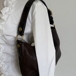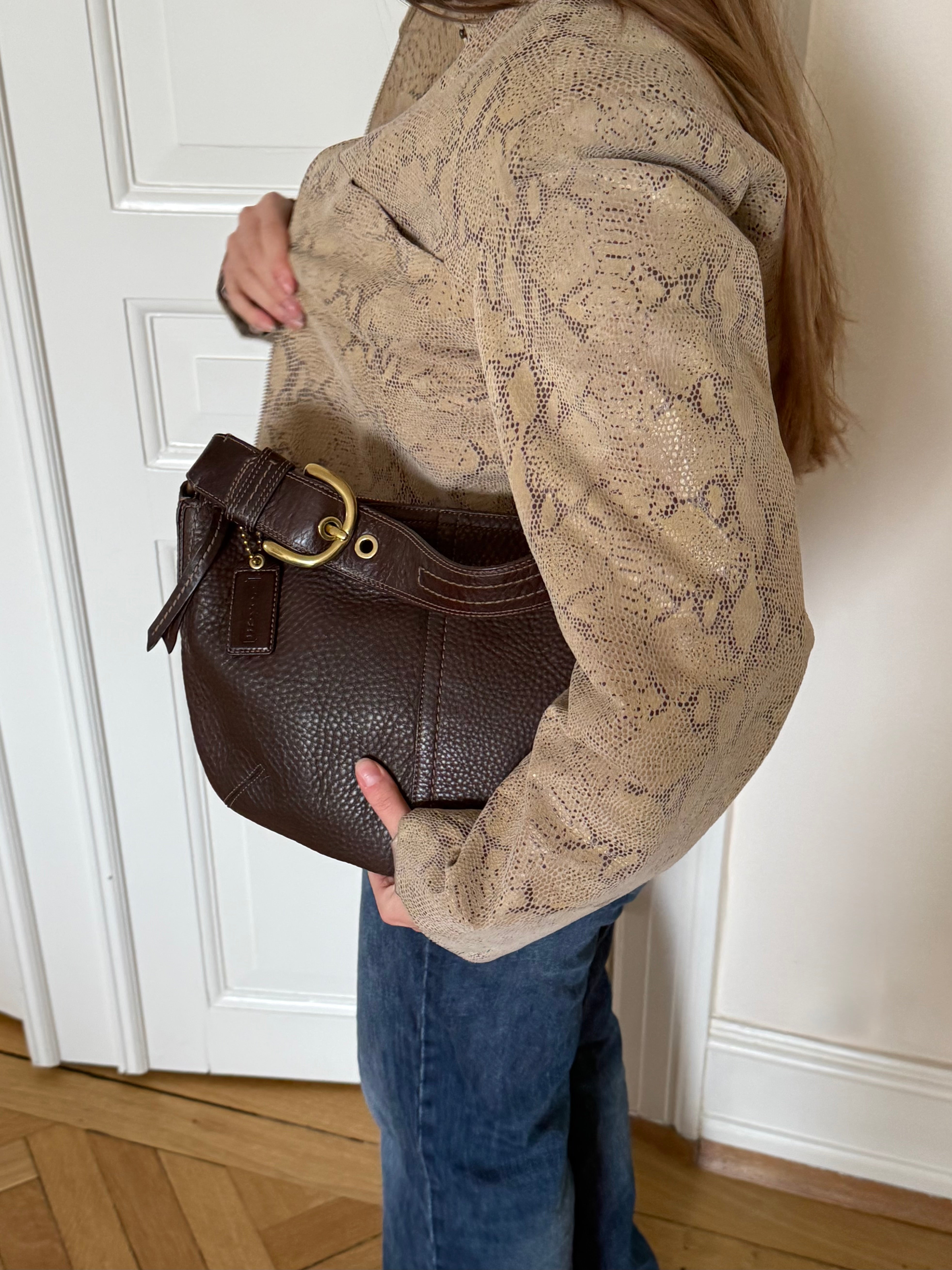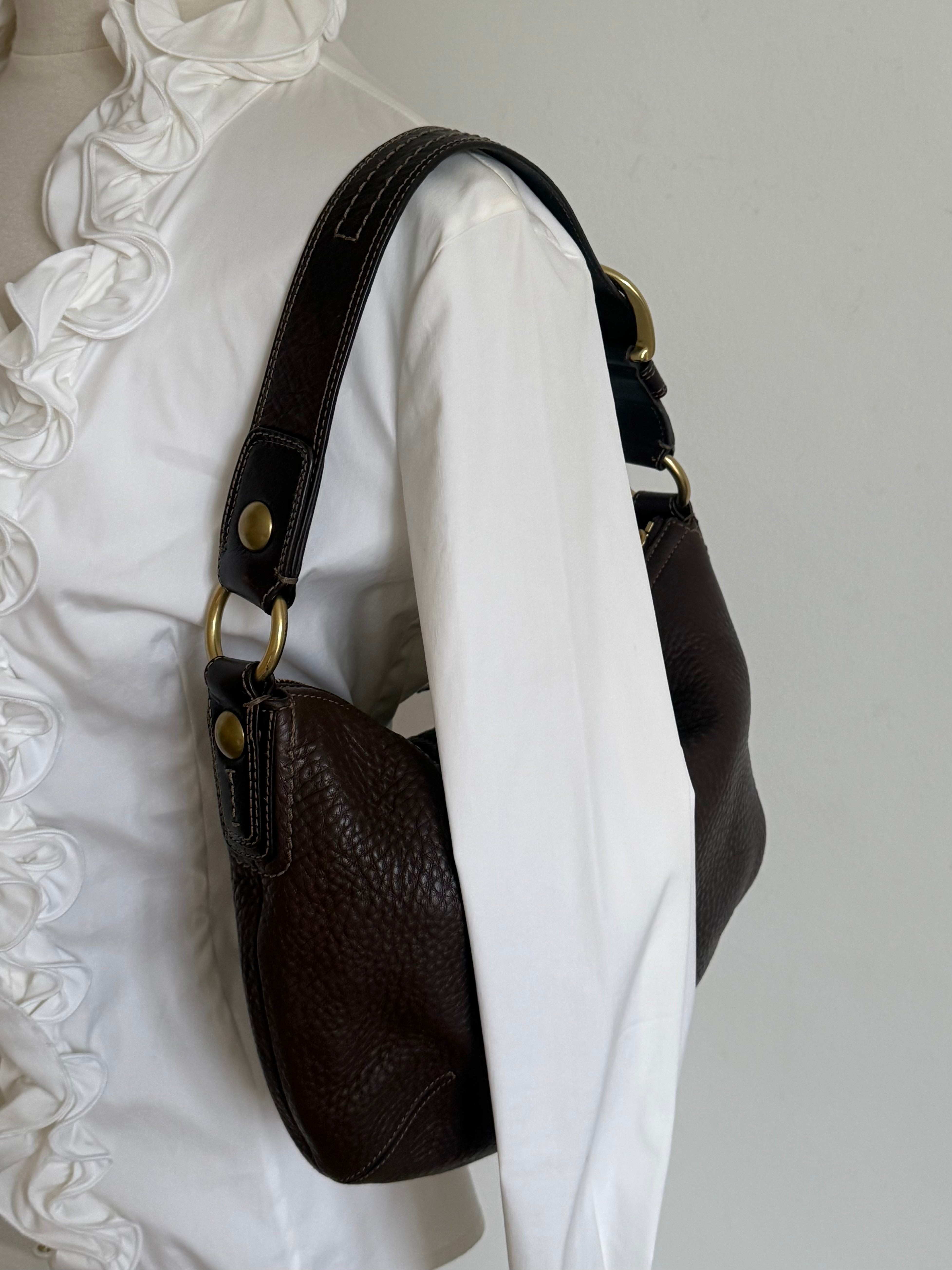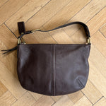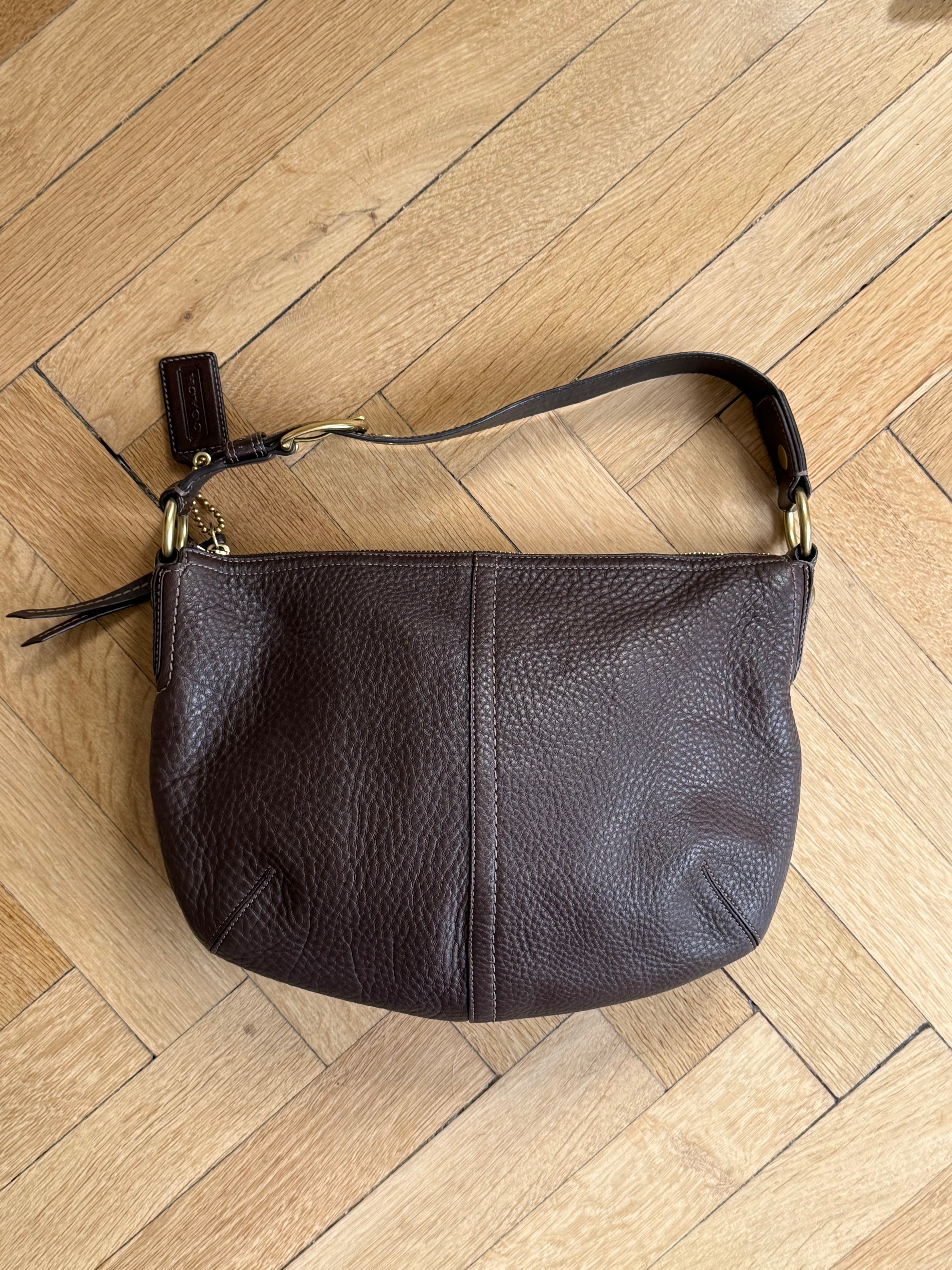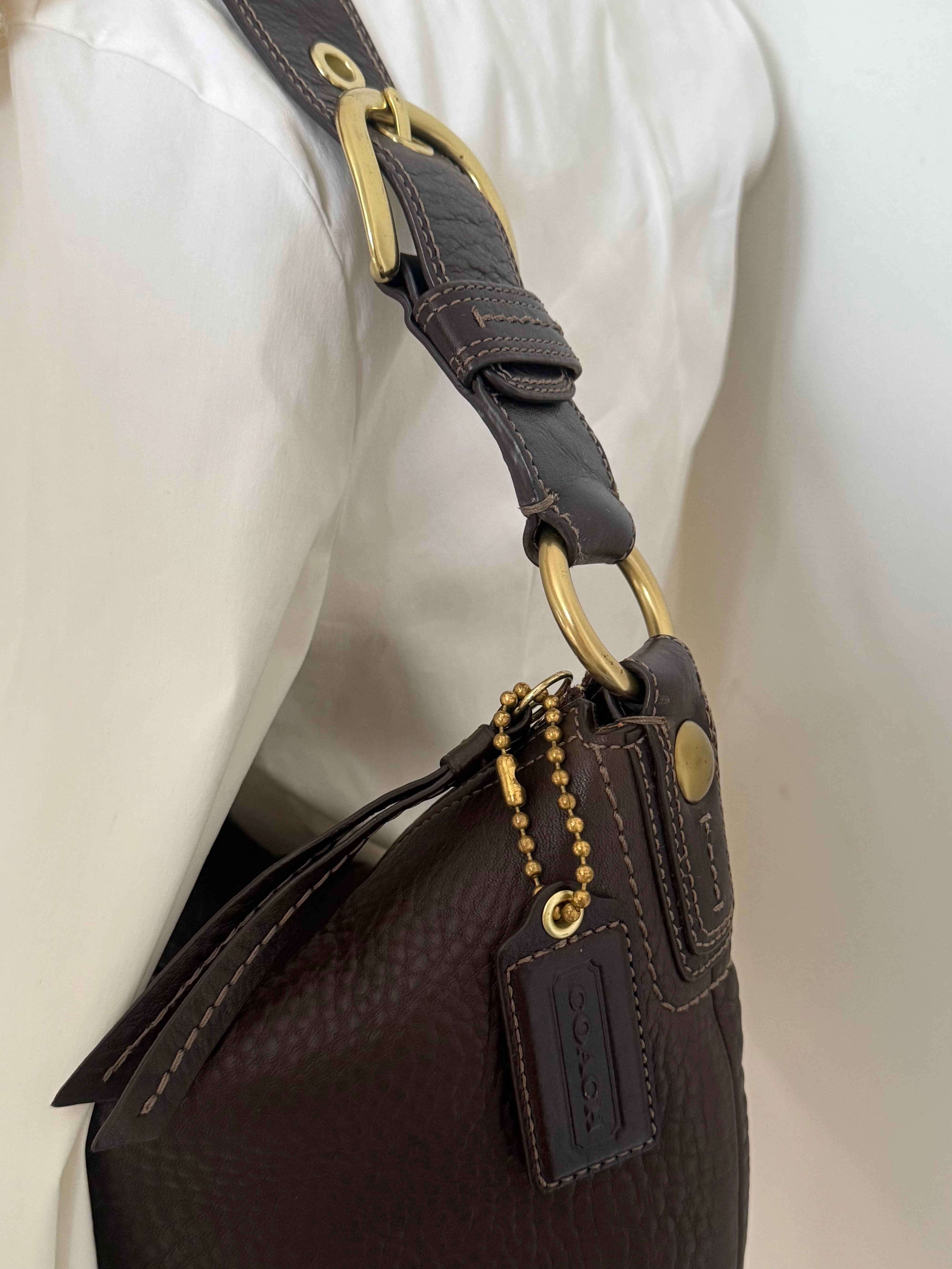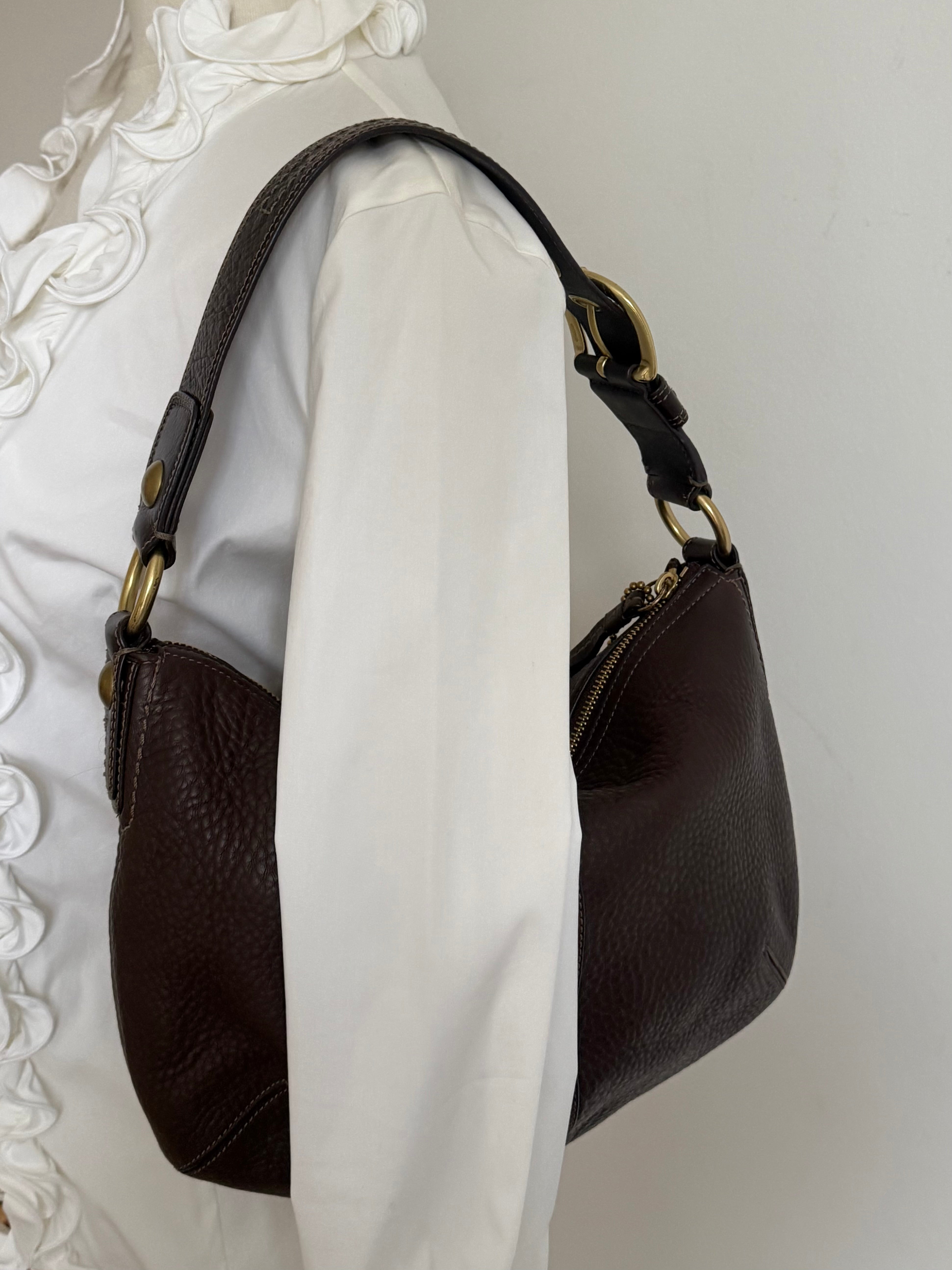 Vintage Coach bag in a beautiful brown color crafted in pebbled leather with gold-tone hardware.