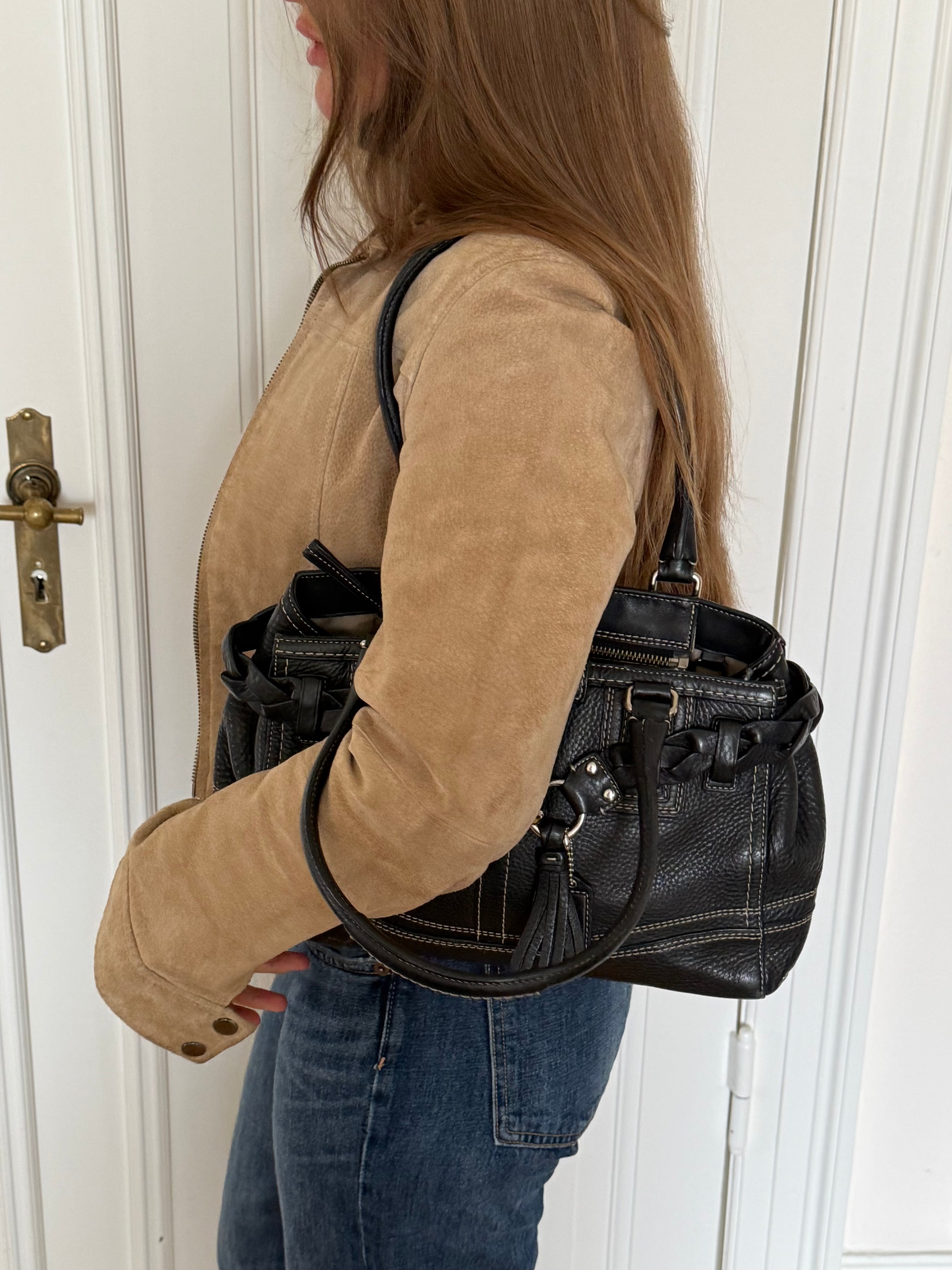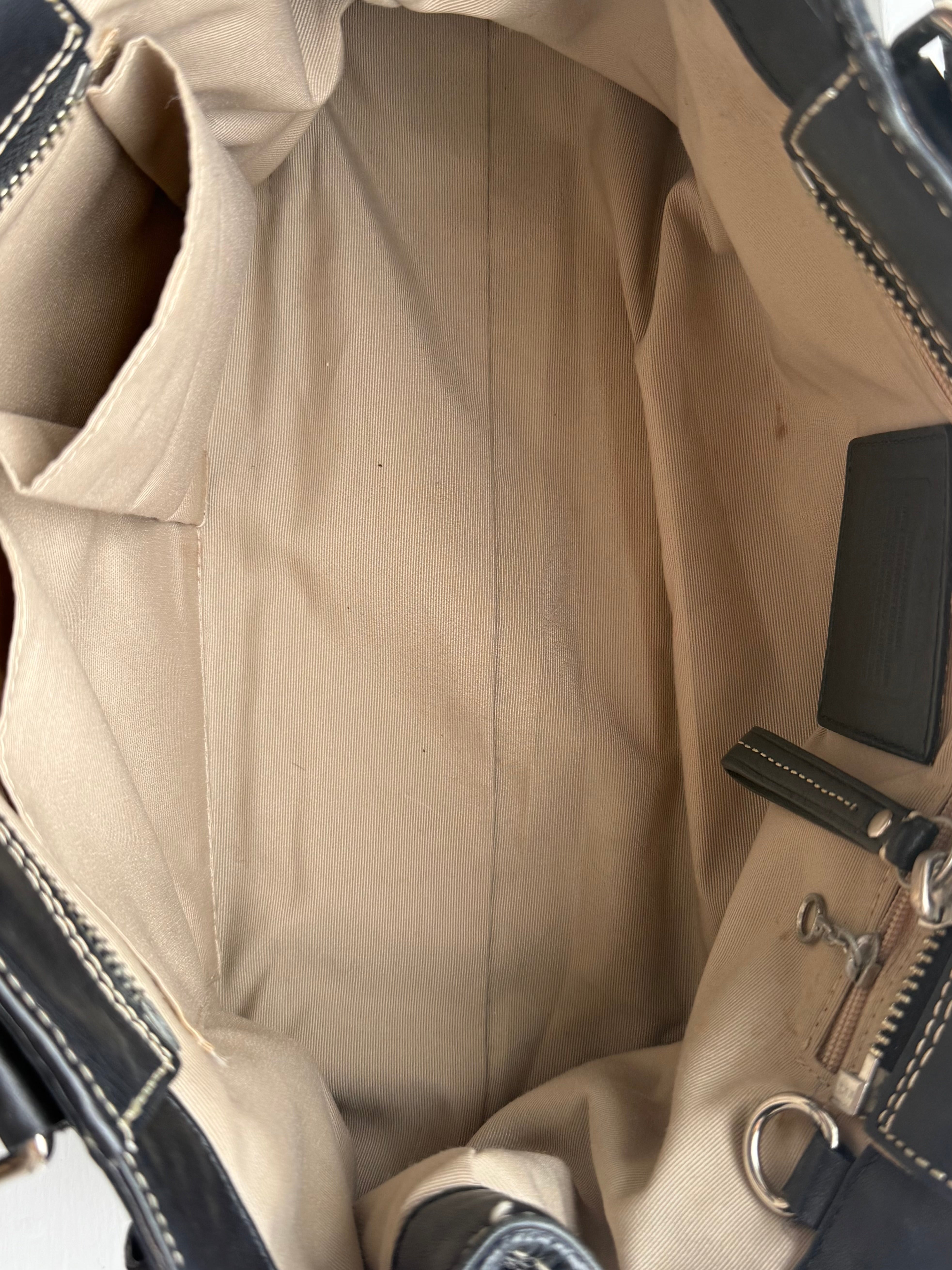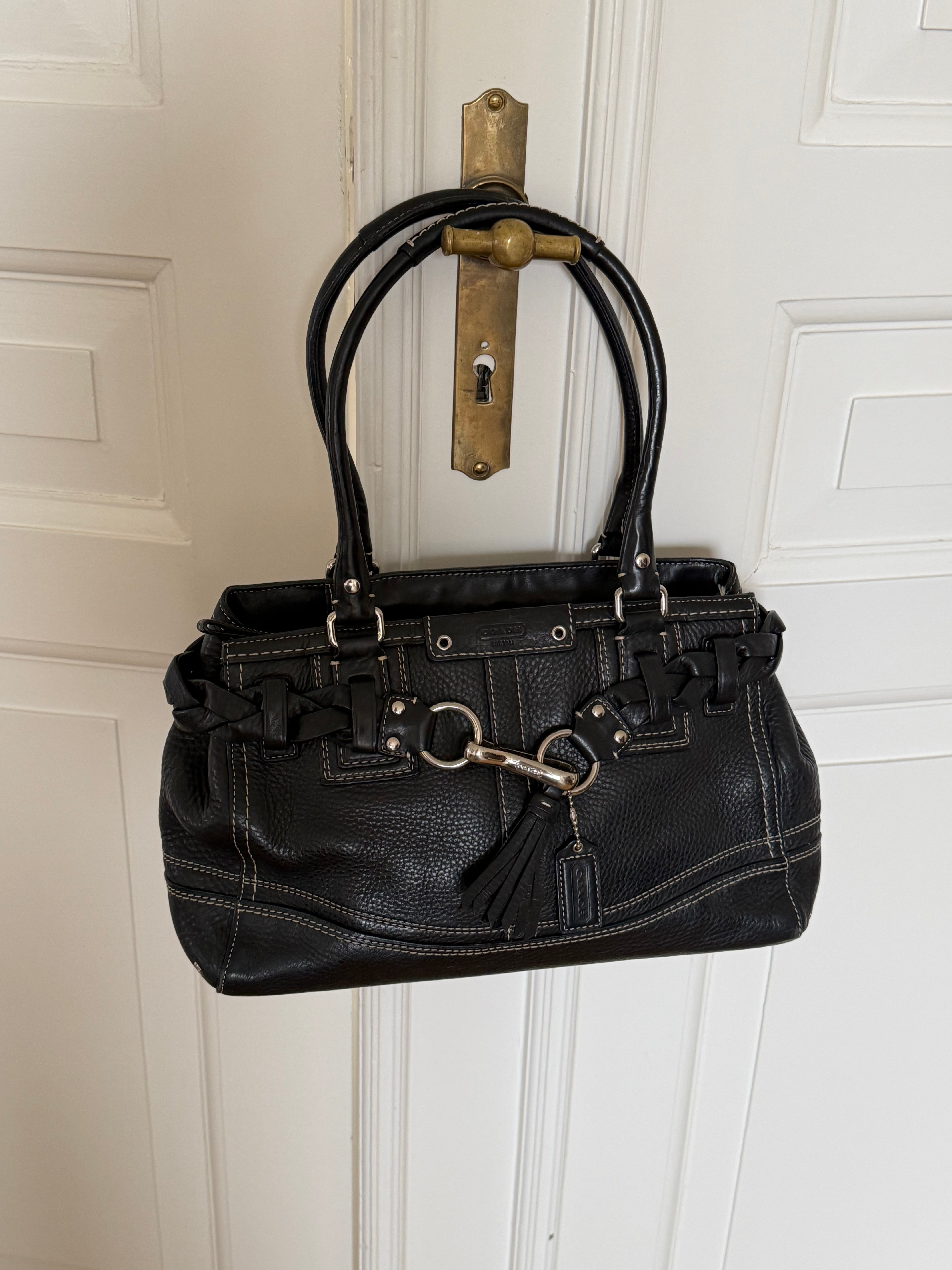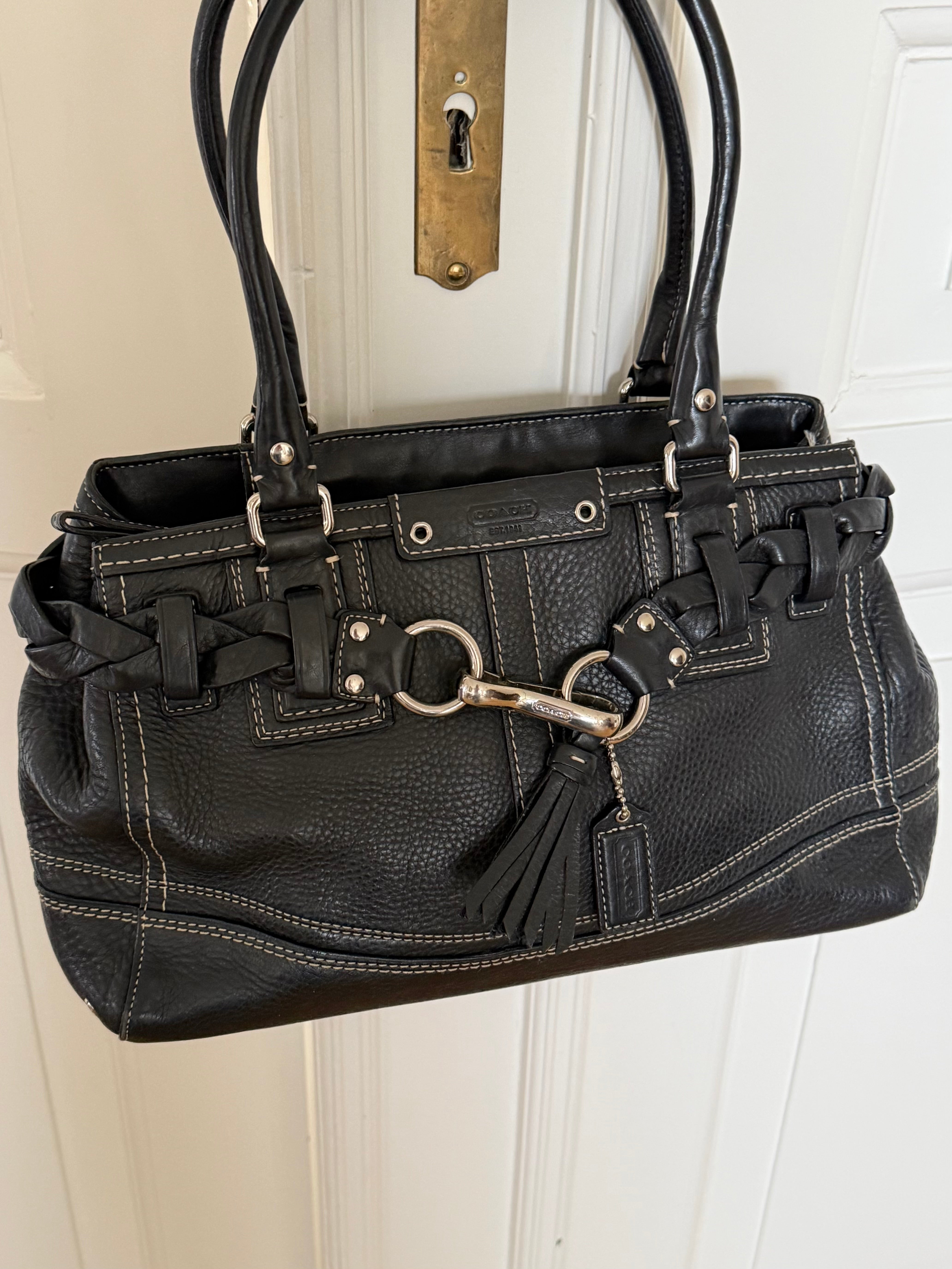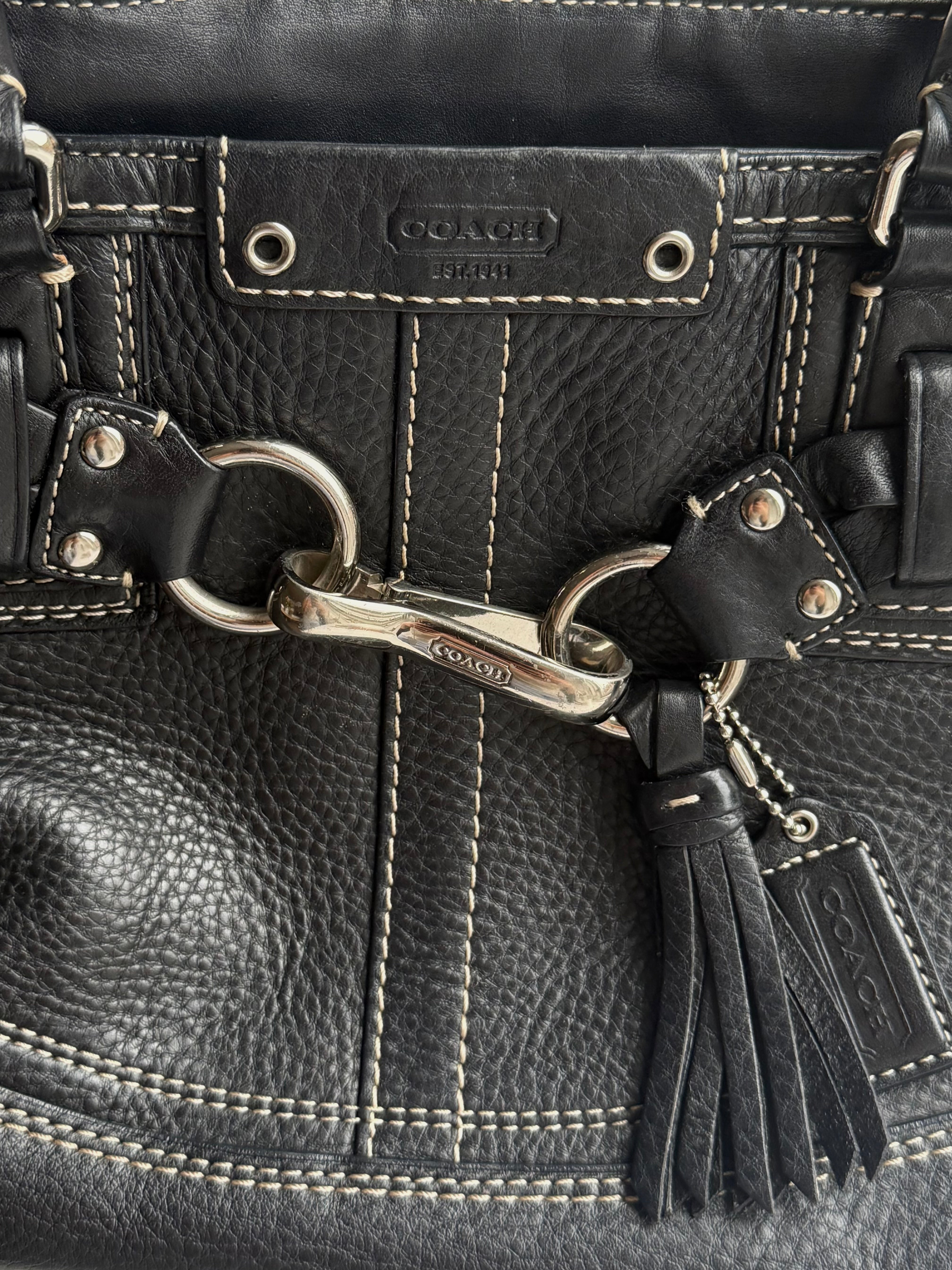 Vintage Coach Hamilton hobo bag crafted from pebbled leather with gold-tone hardware. The bag has a spacious interior and double handles.