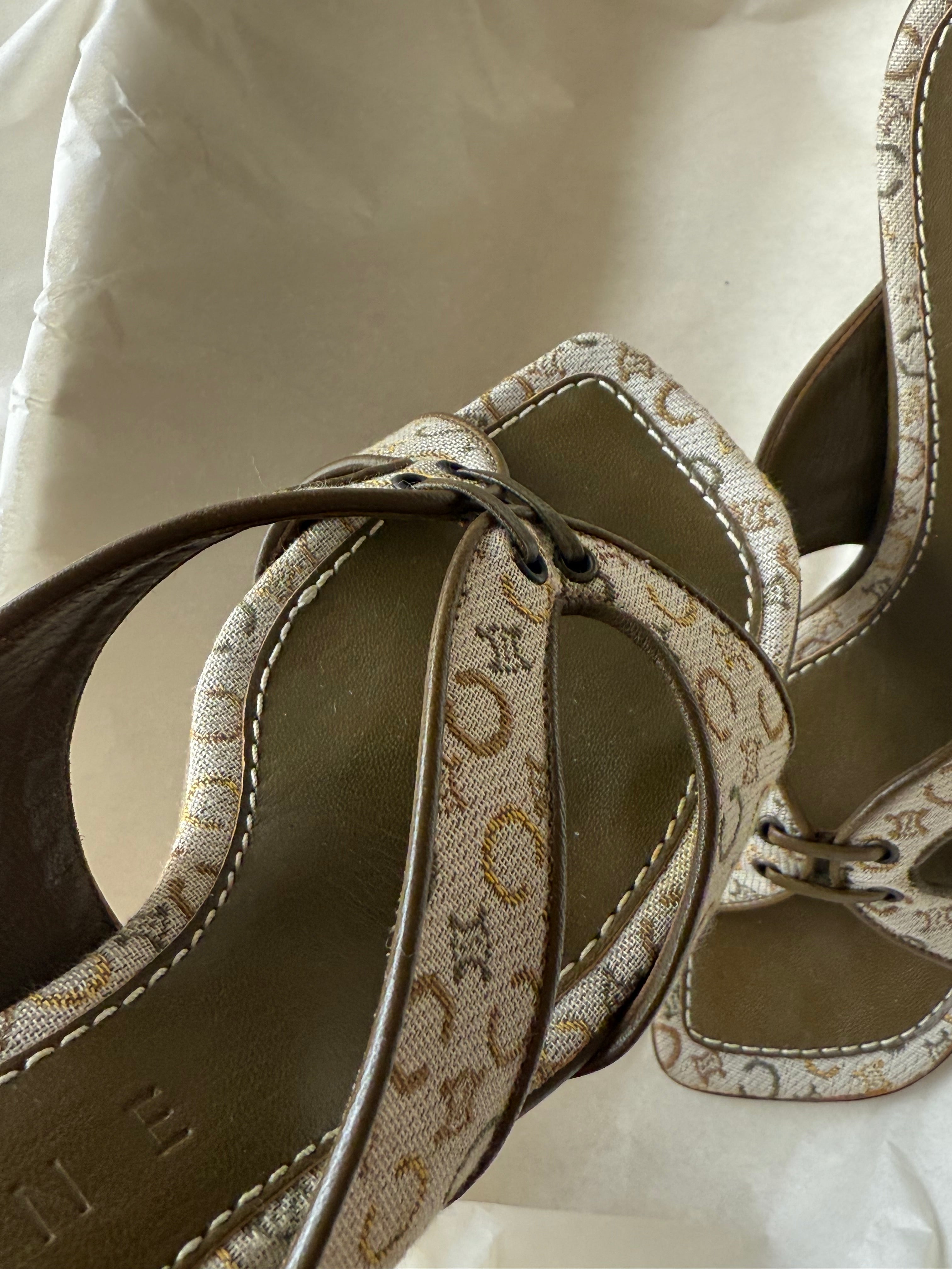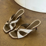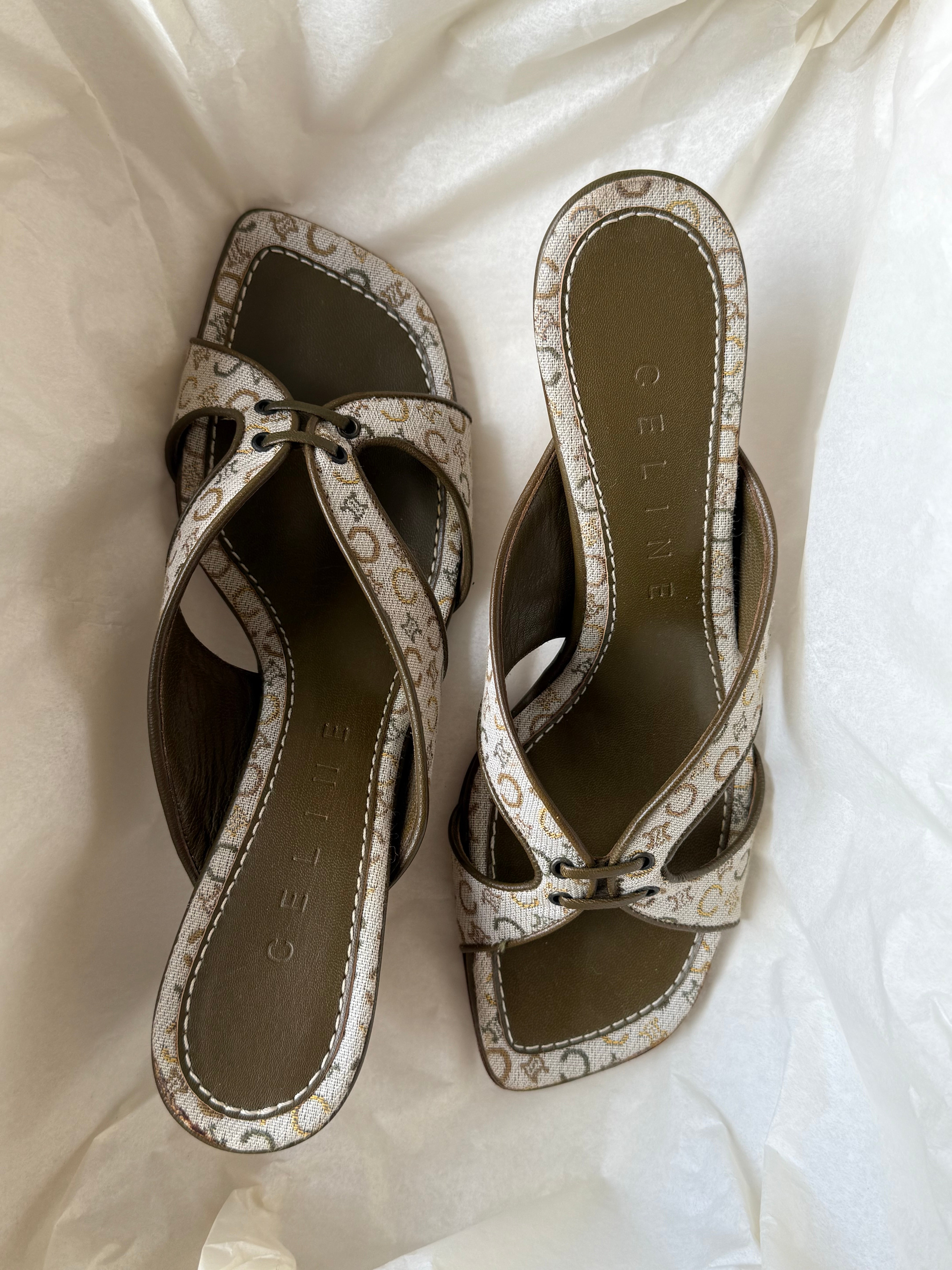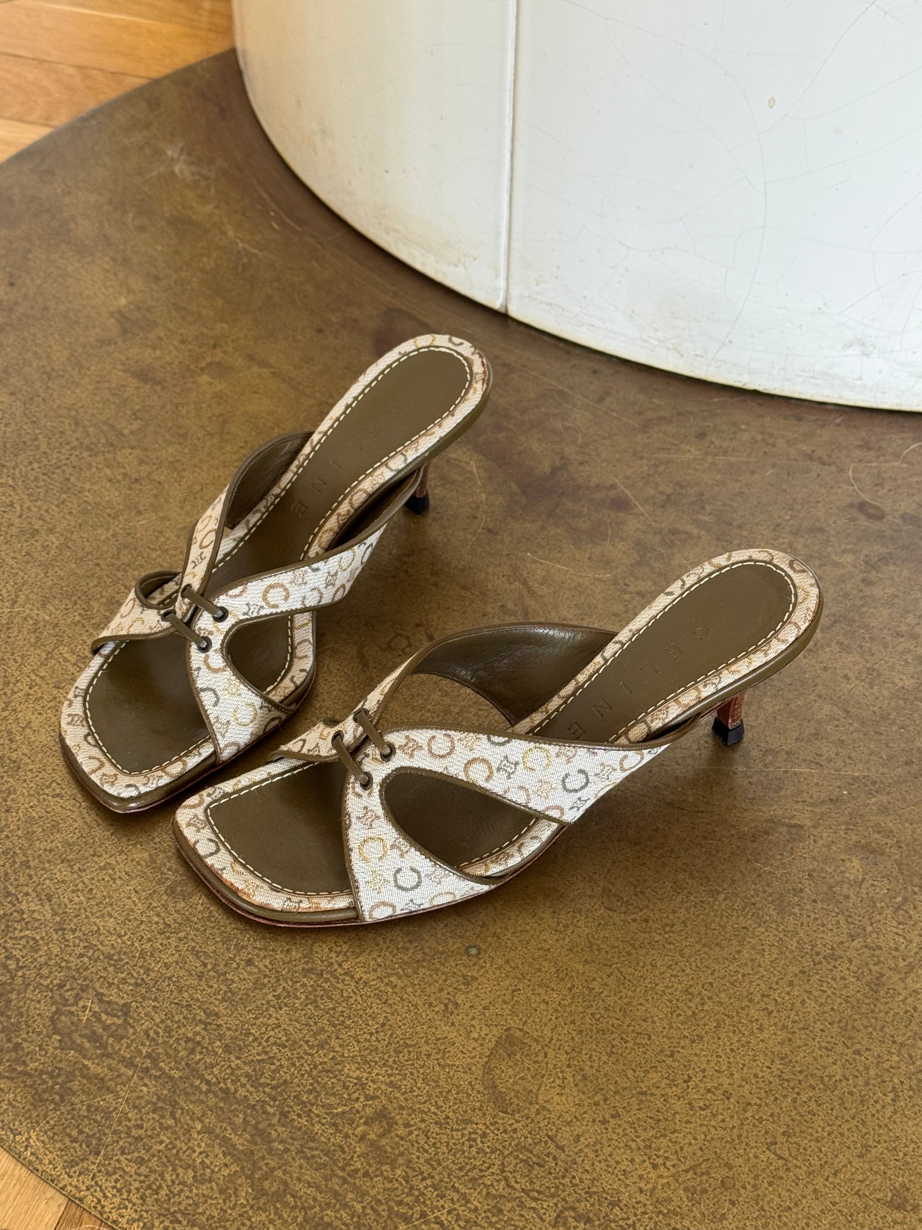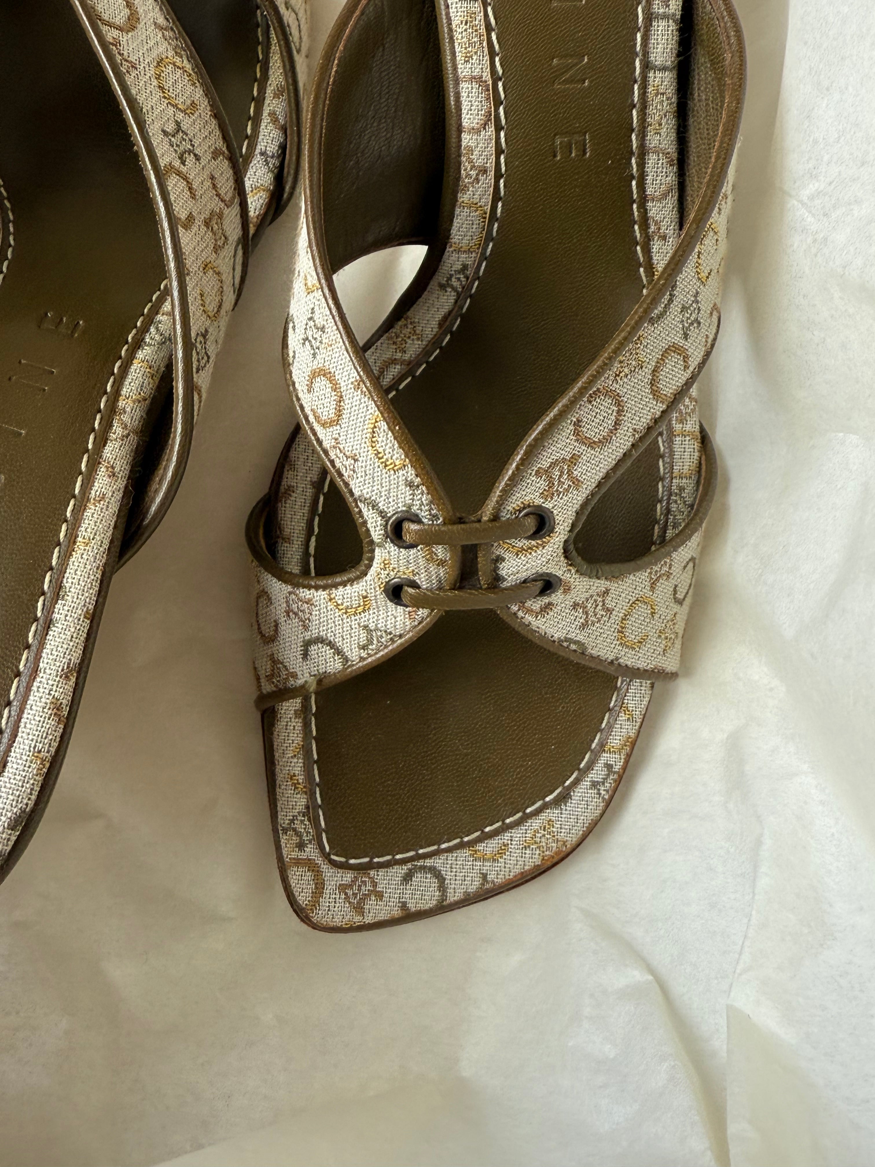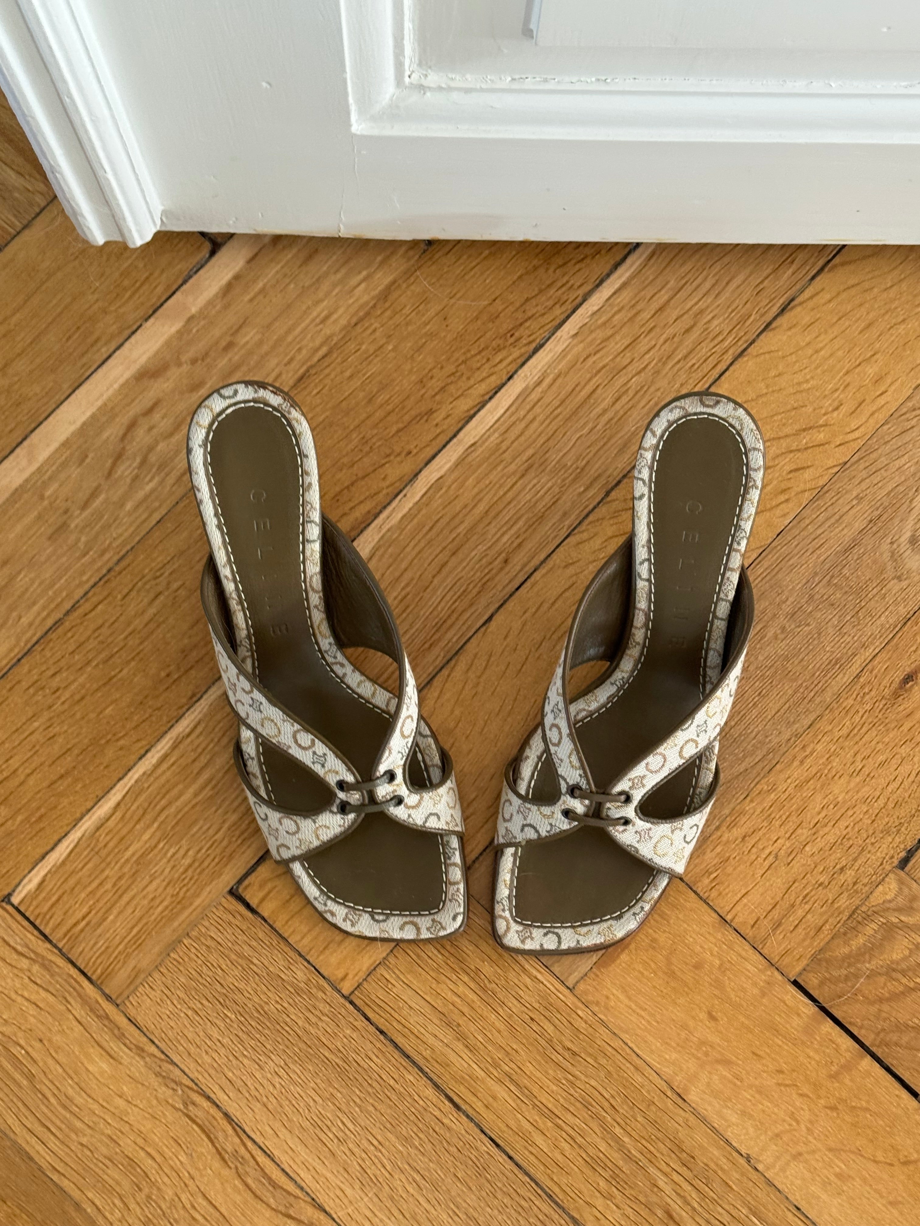 Beautiful vintage Celine mules in leather and the iconic Macadam print.