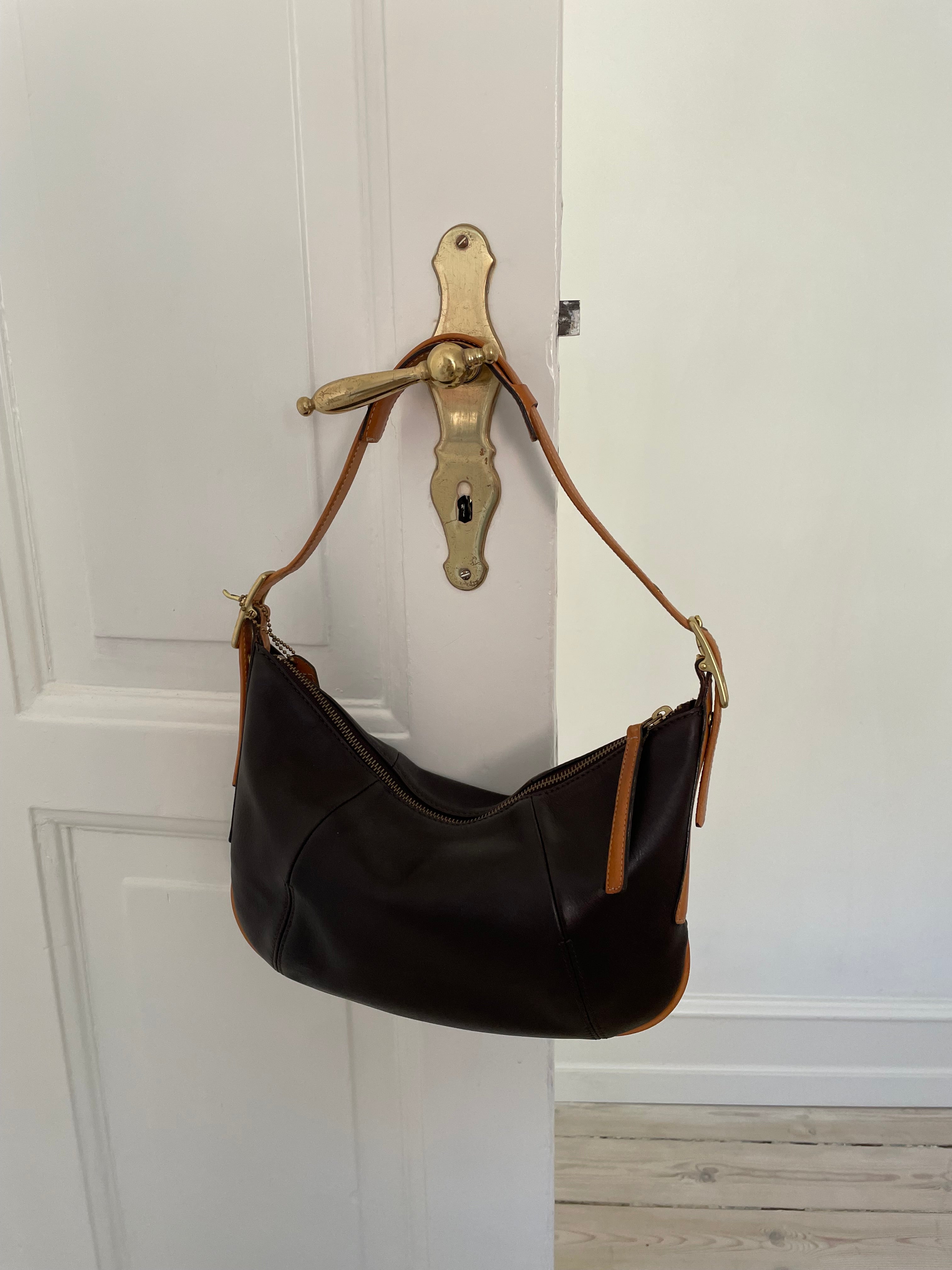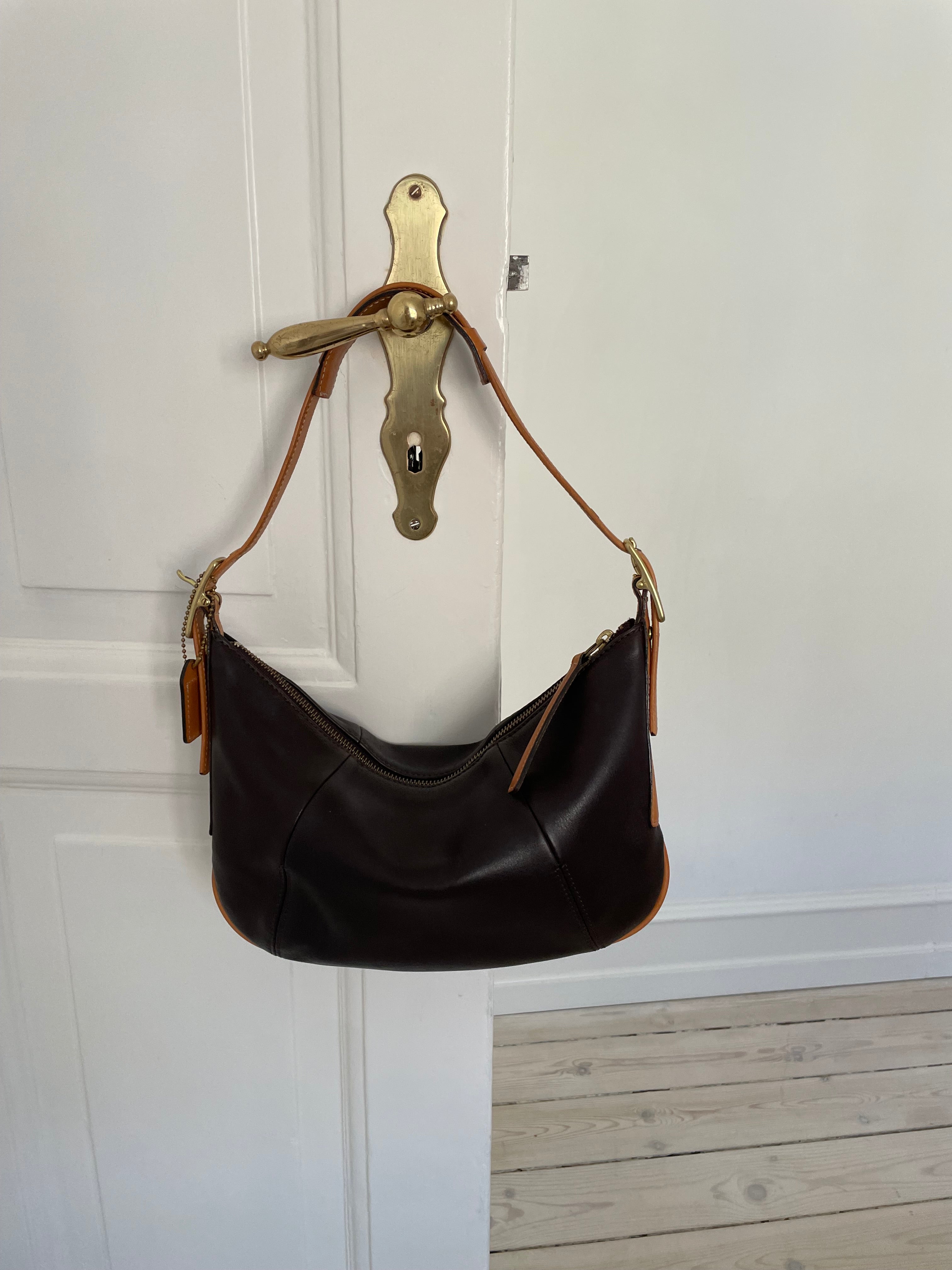 Beautiful vintage Coach bag in black and brown leather in a good vintage condition.