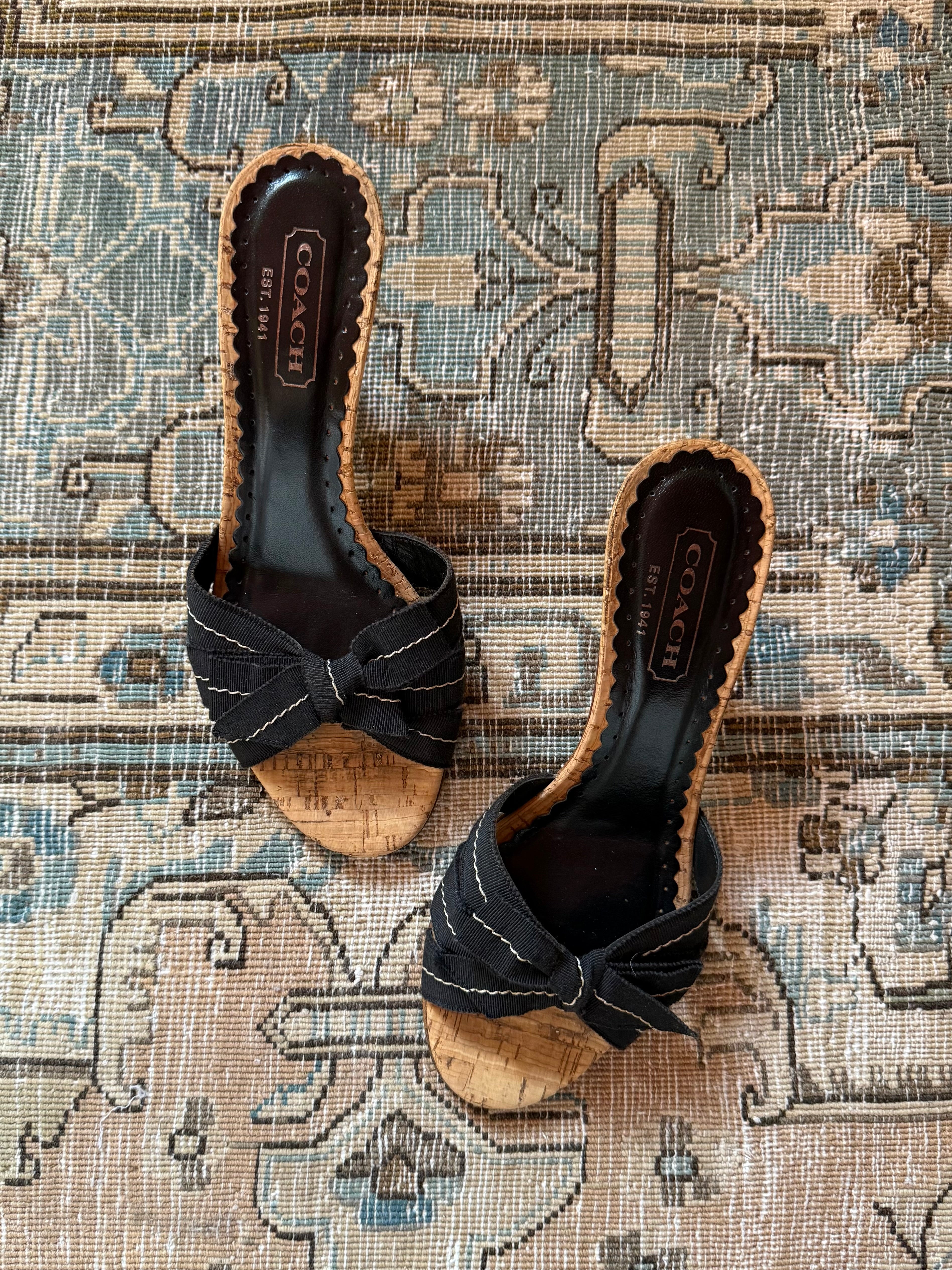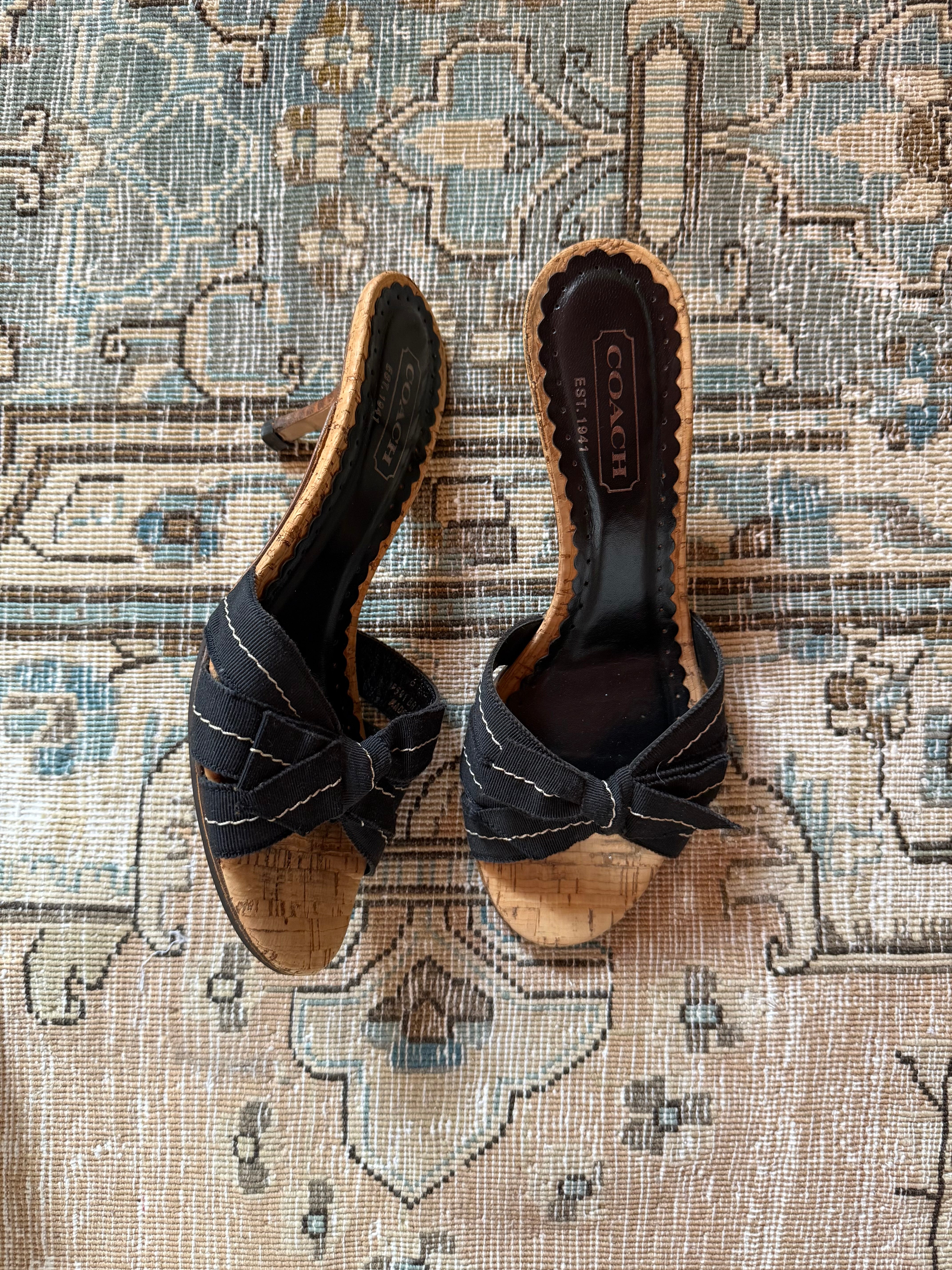 Cute vintage Coach cork kitten heels with a bow. In great condition and comes with the original packaging.