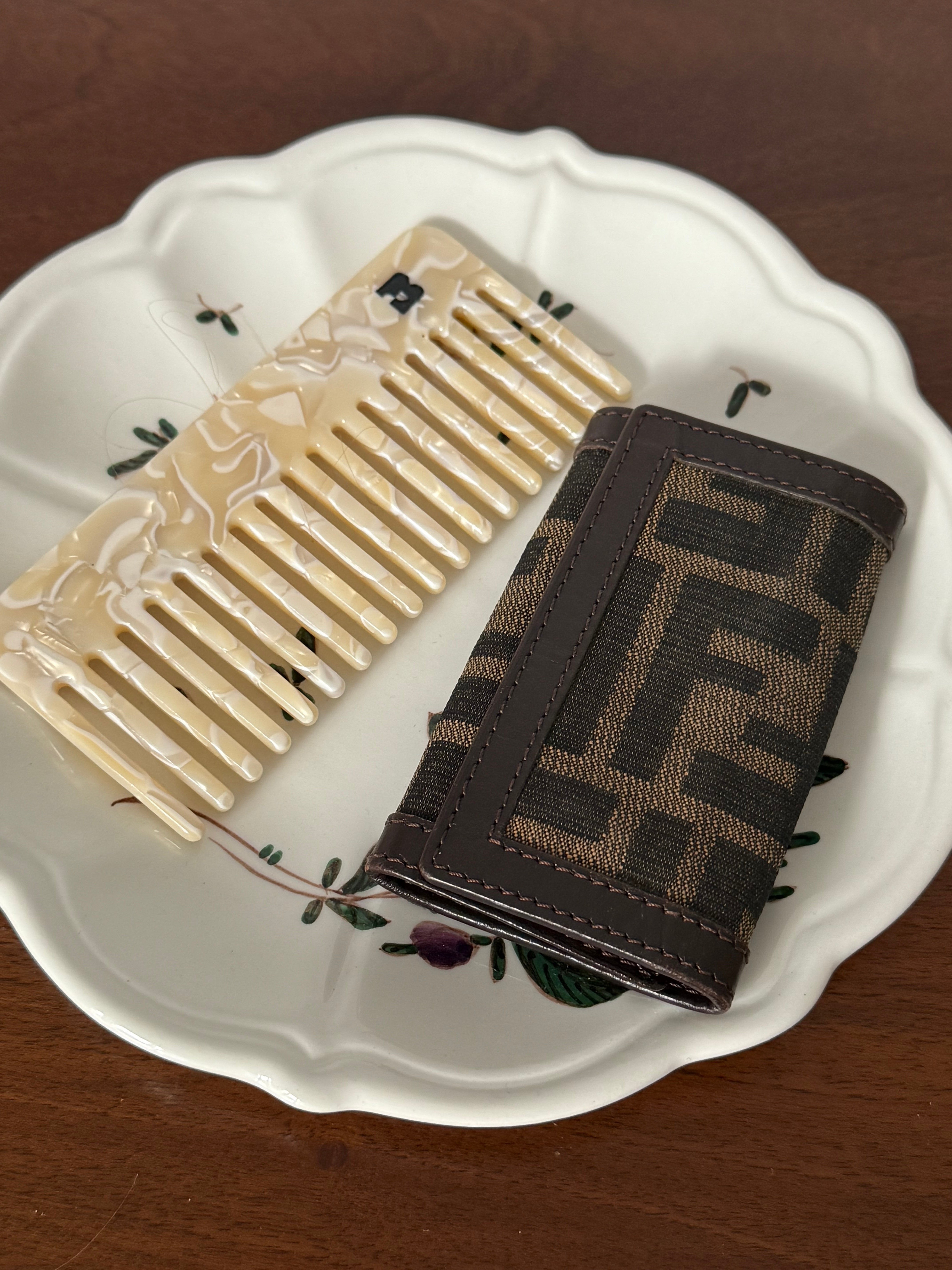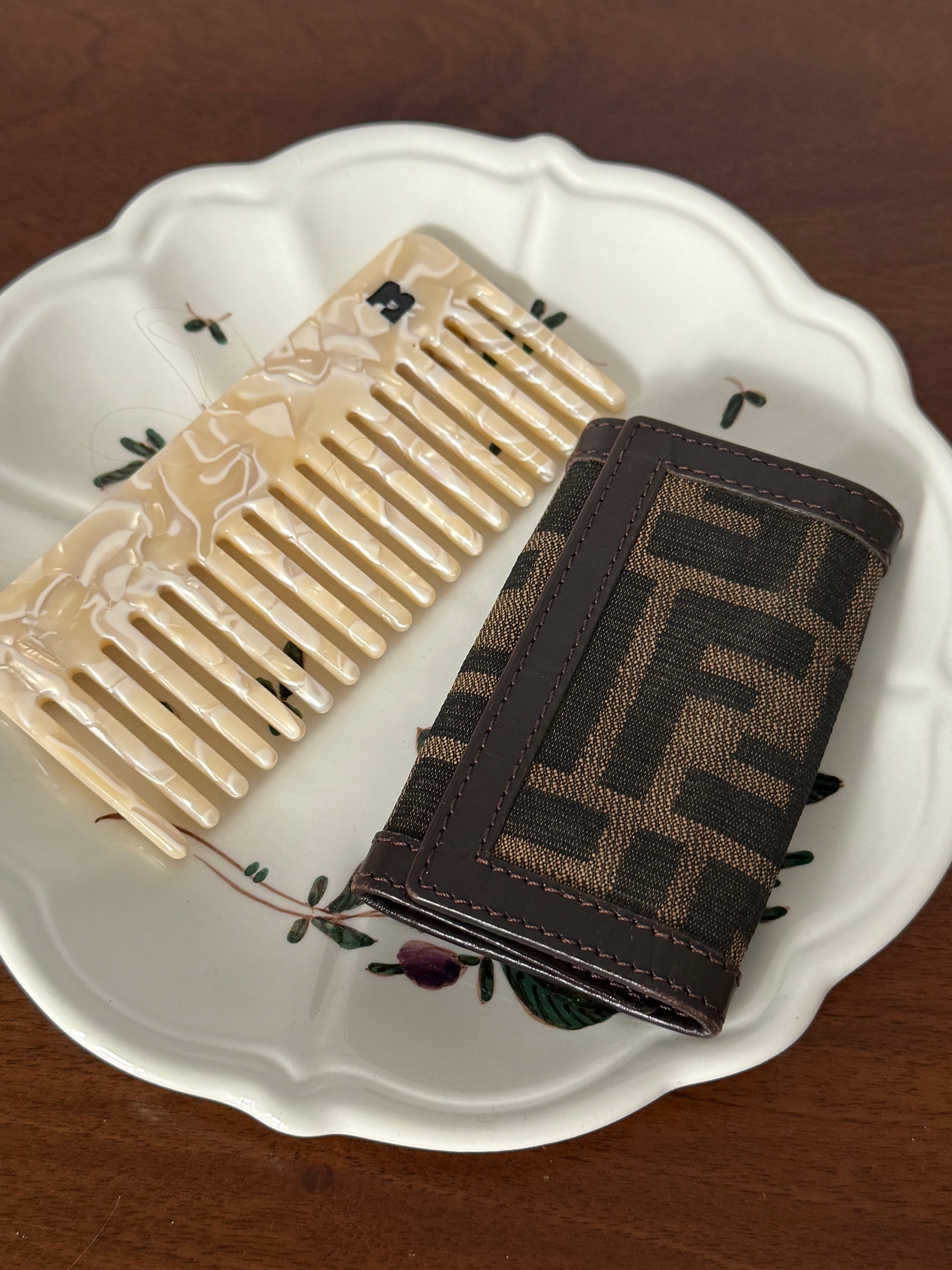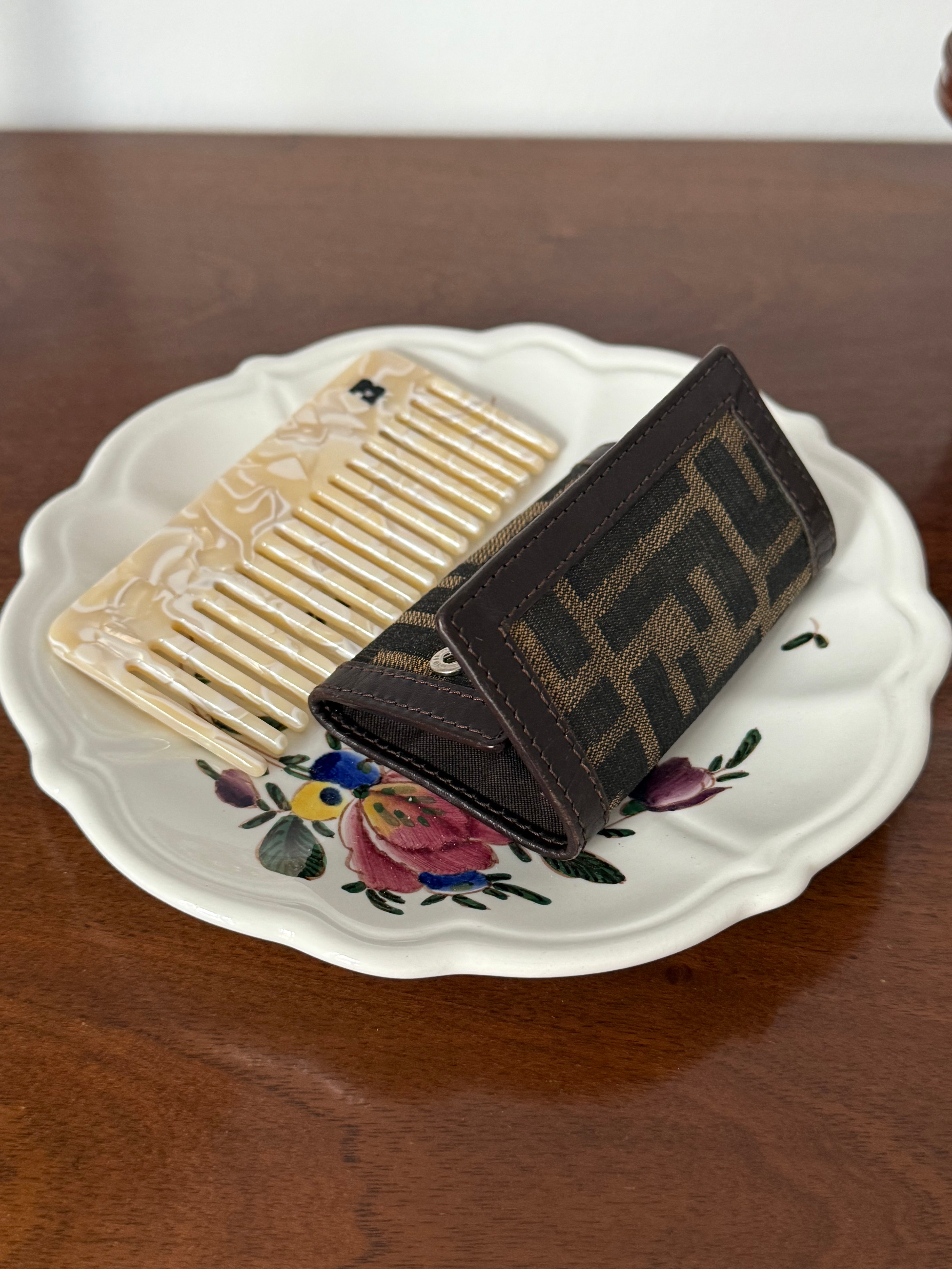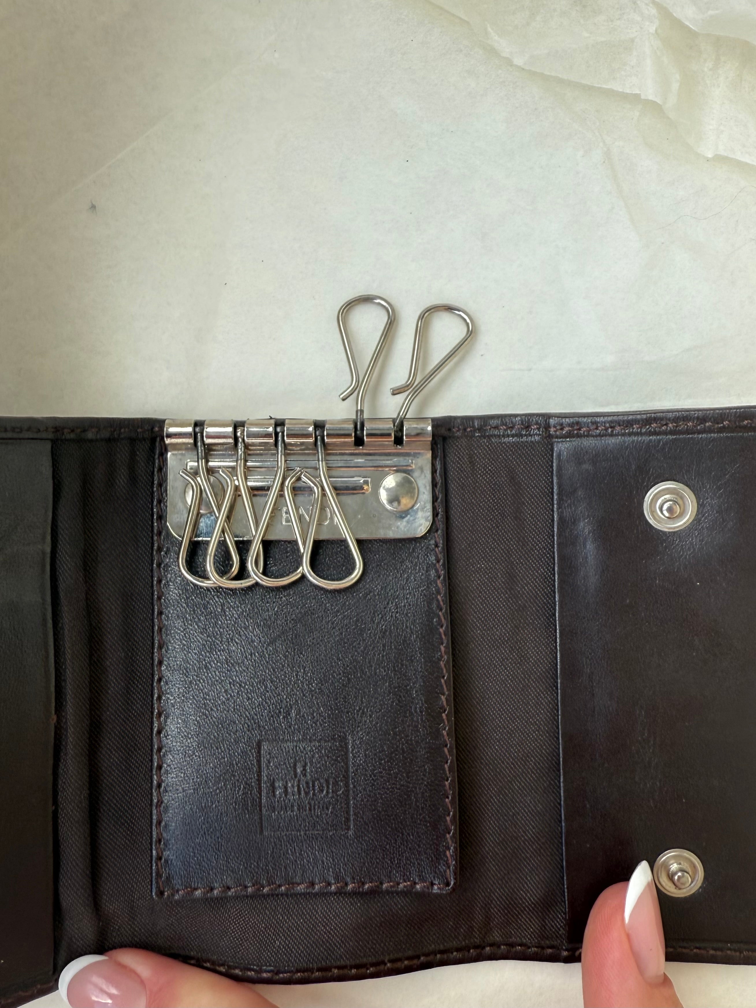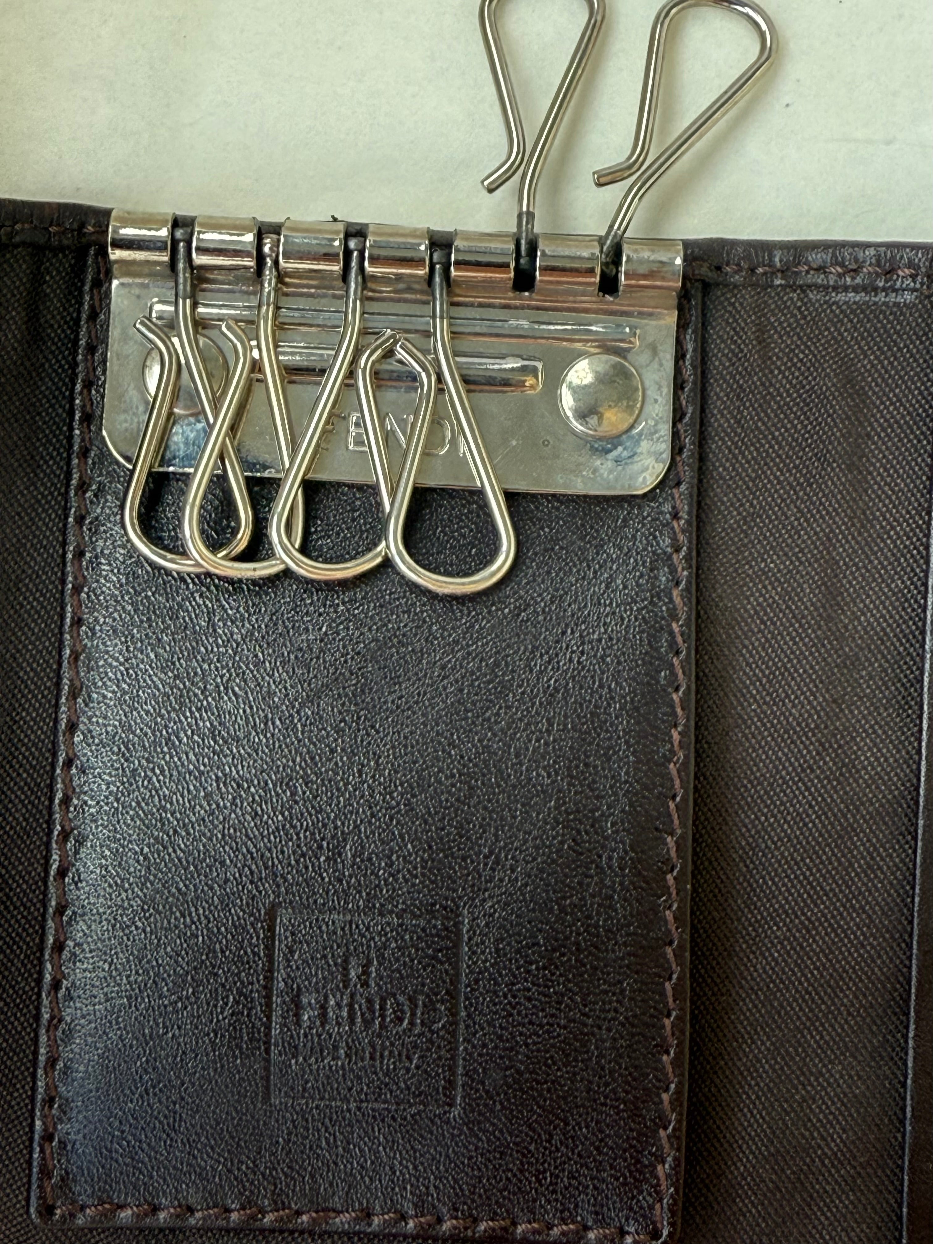 Vintage Fendi key wallet in iconic canvas and brown leather