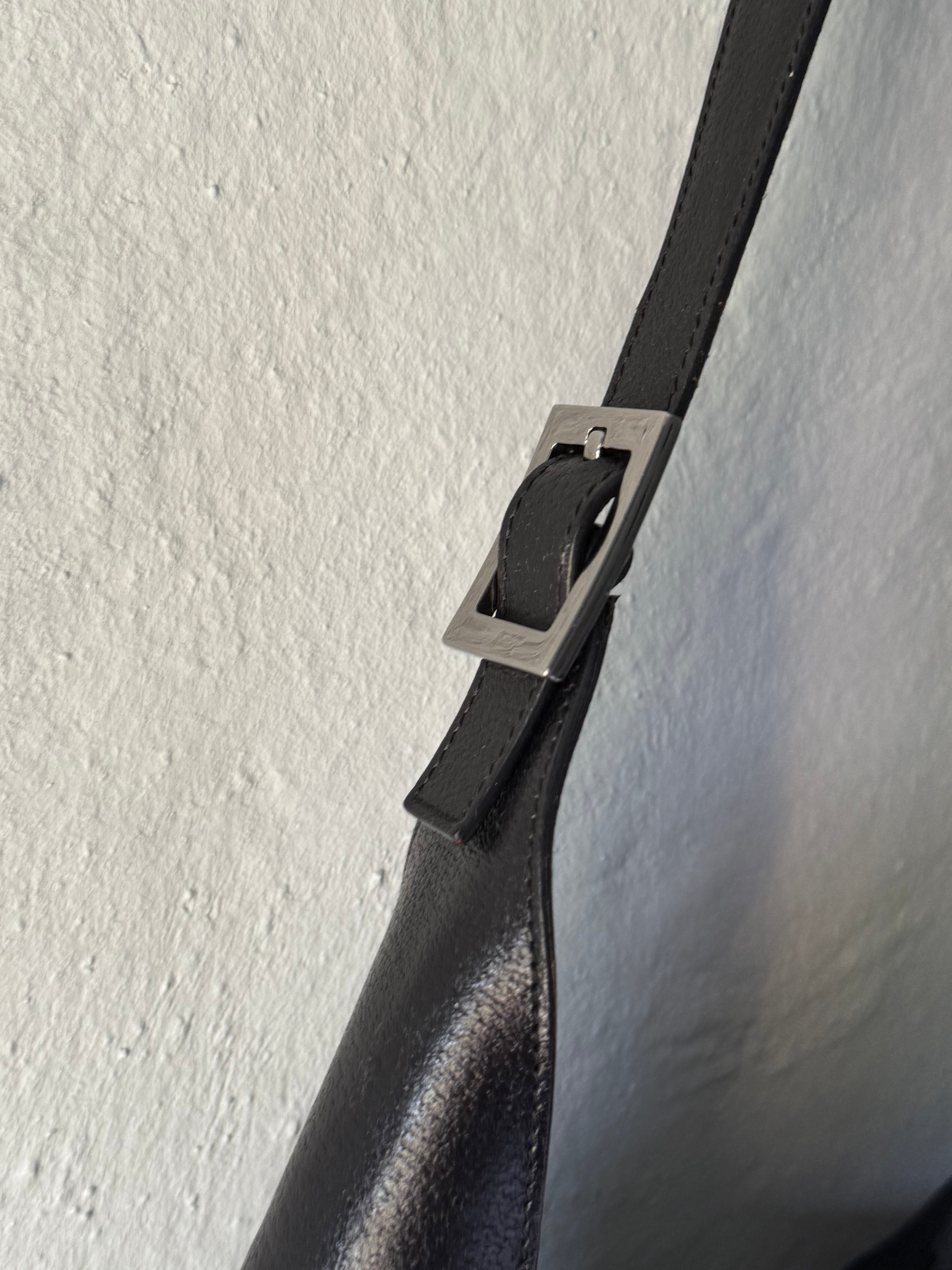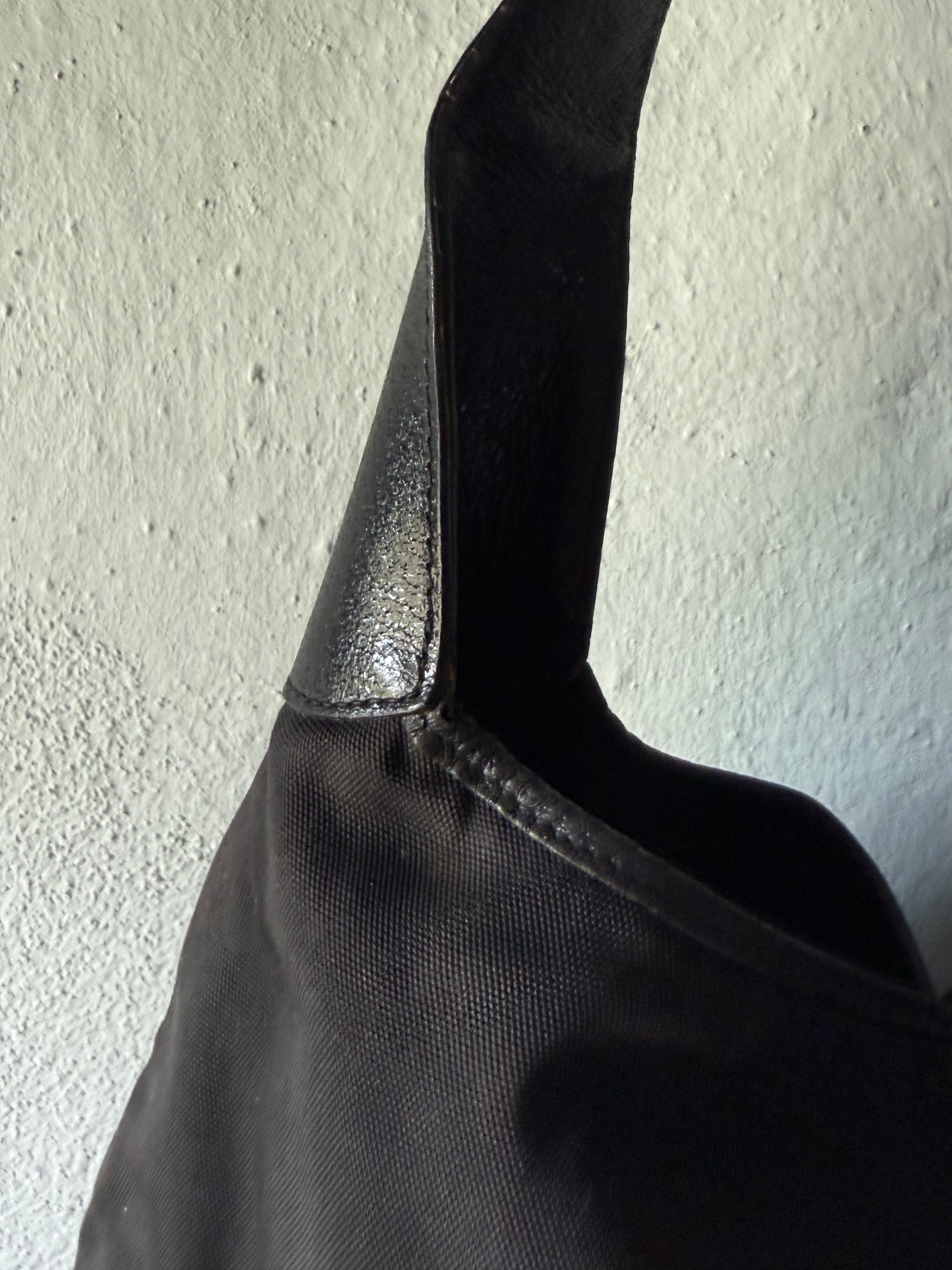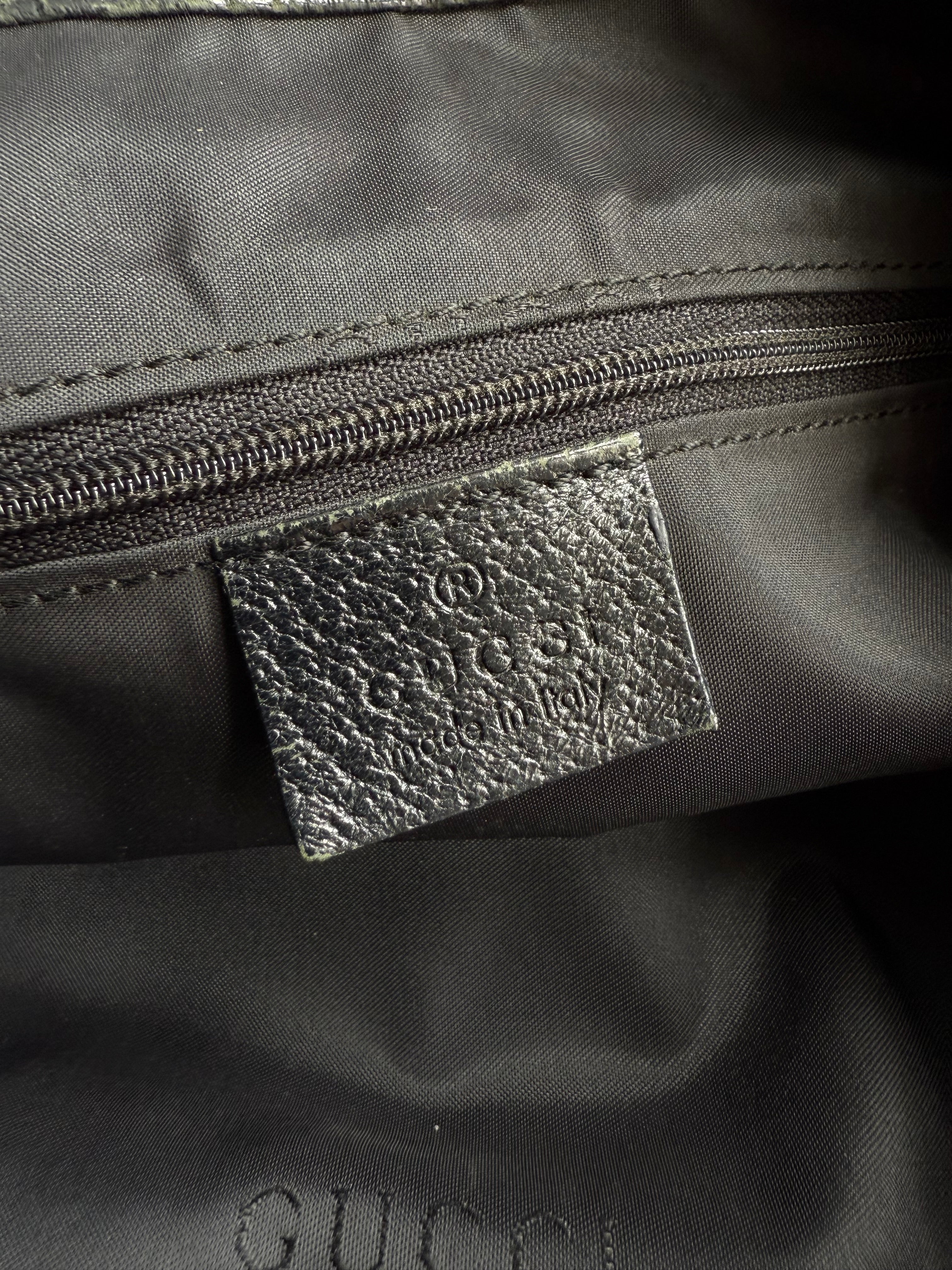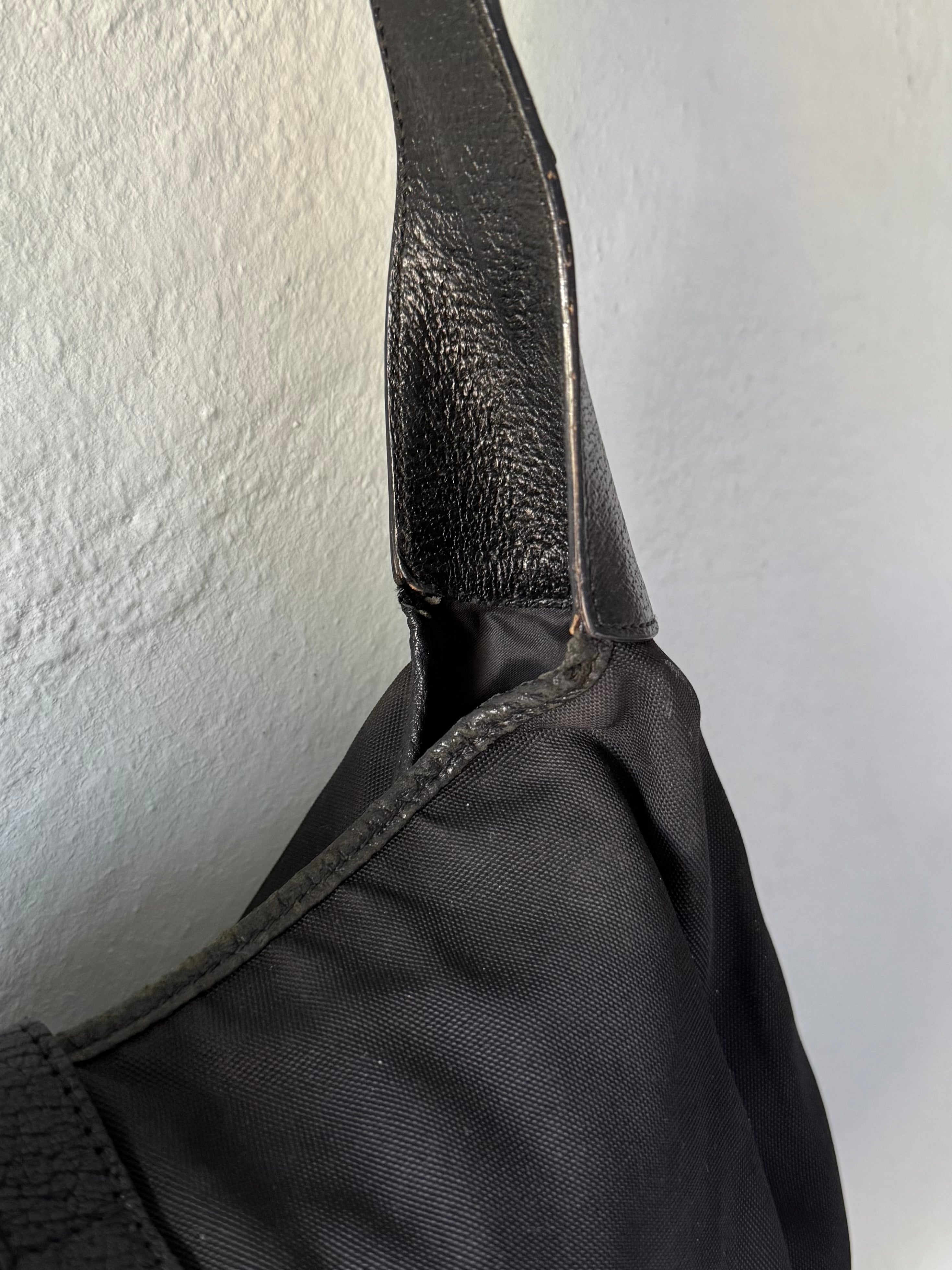 A Large Gucci Jackie in black leather and nylon. The bag features a stylish buckle closure and a spacious interior. Comes with original dustbag.