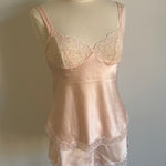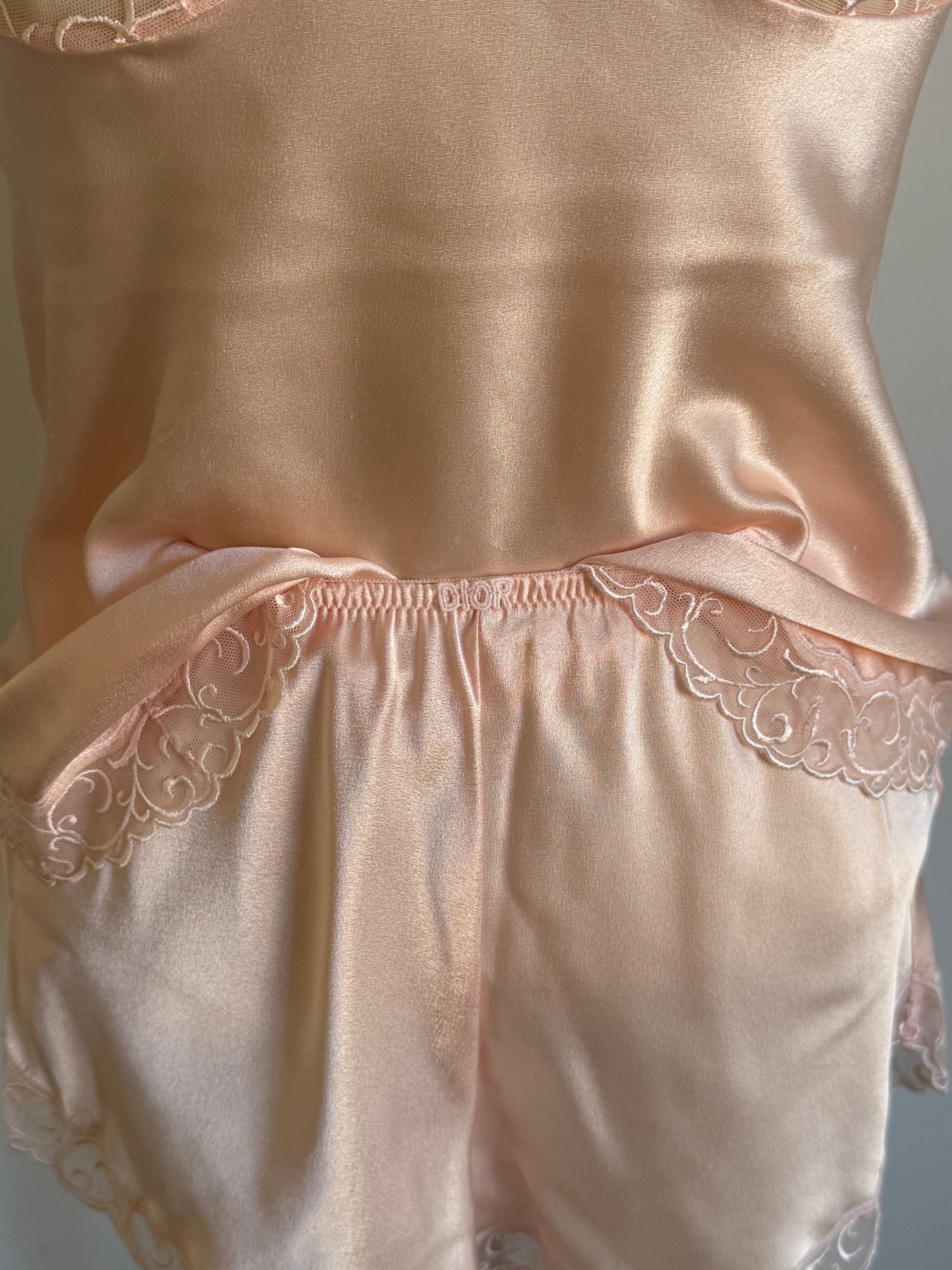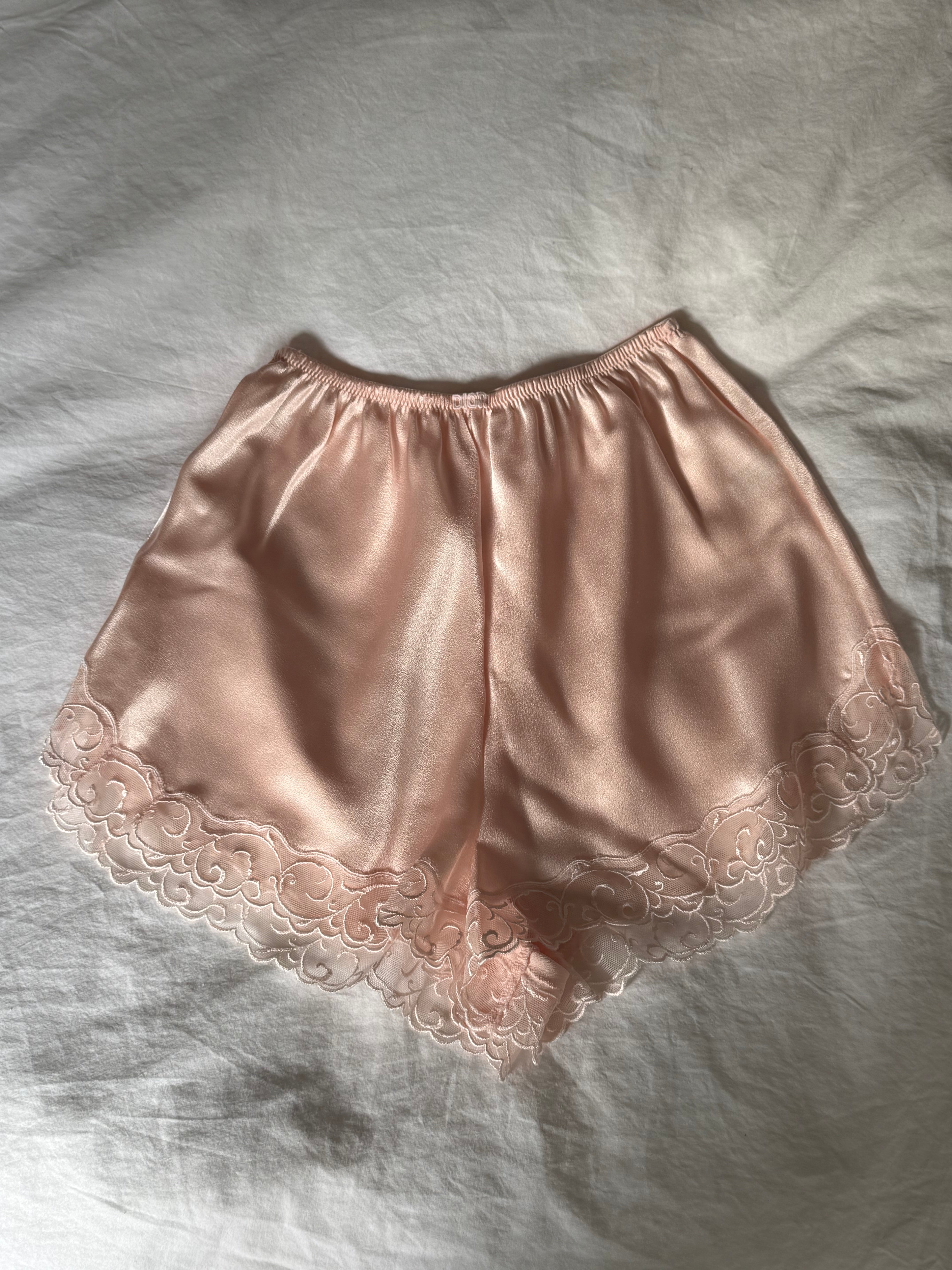 Beautiful vintage matching lingerie set from Christian Dior with lace details. The shorts have an elastic waistband.