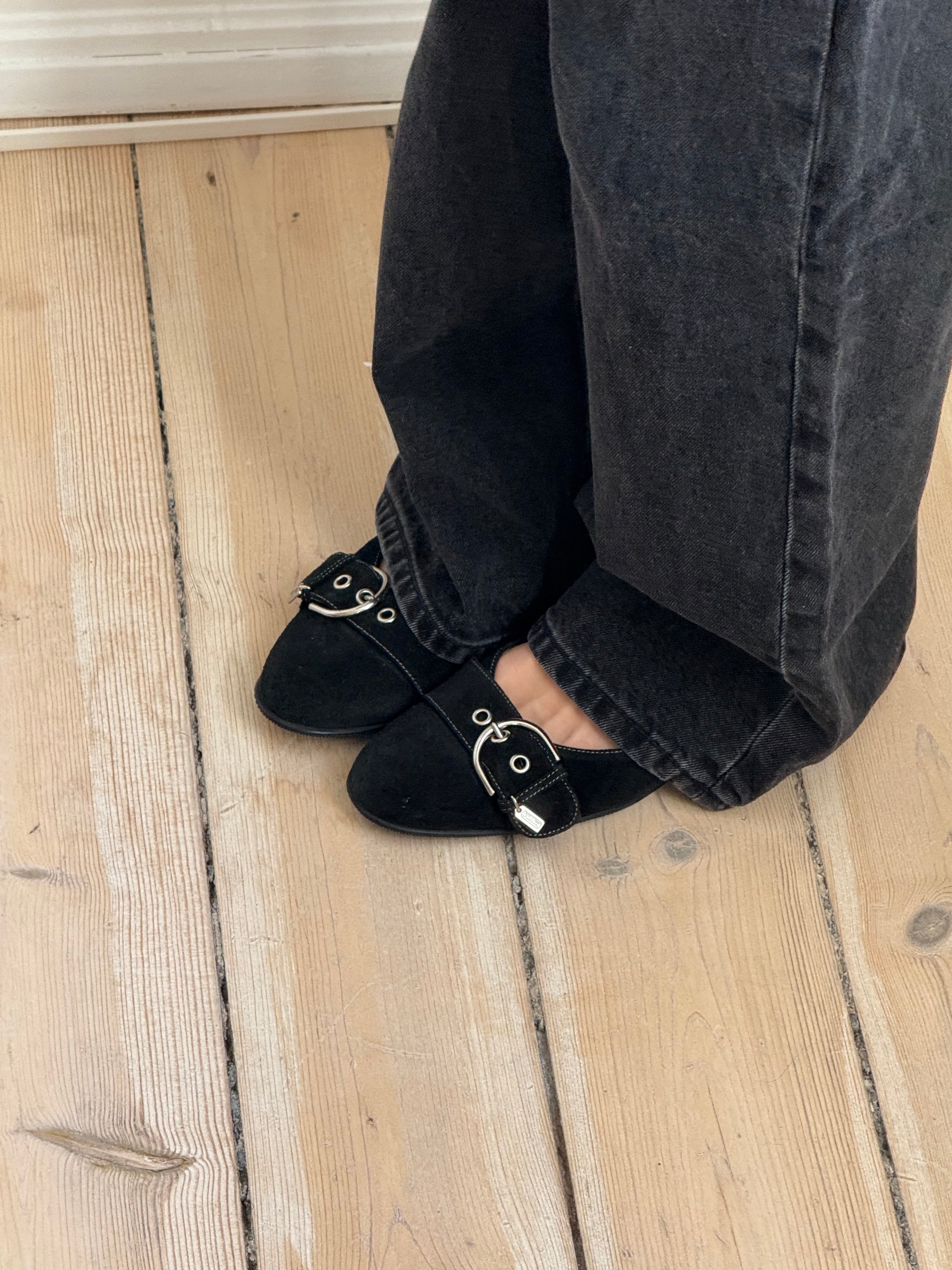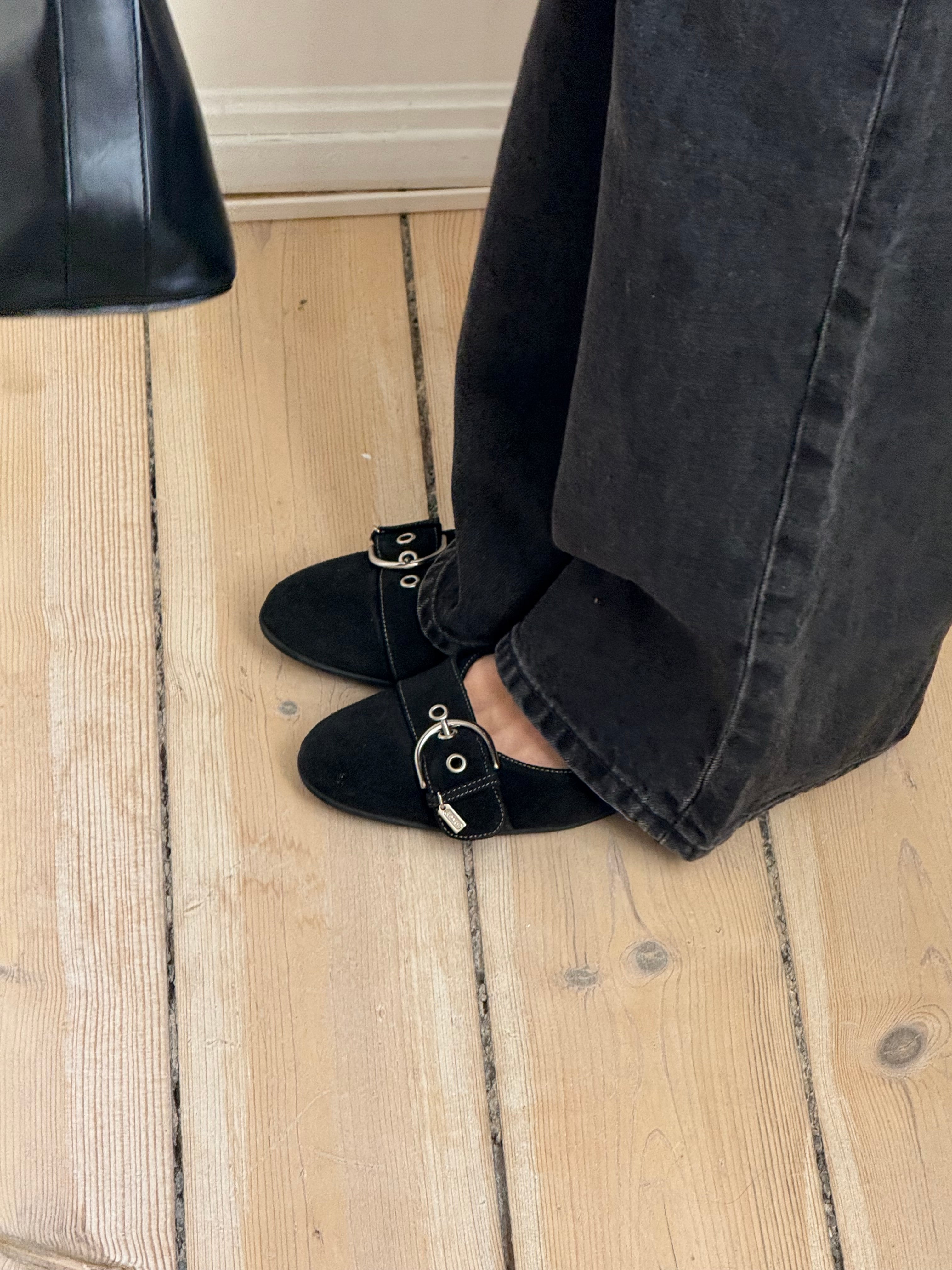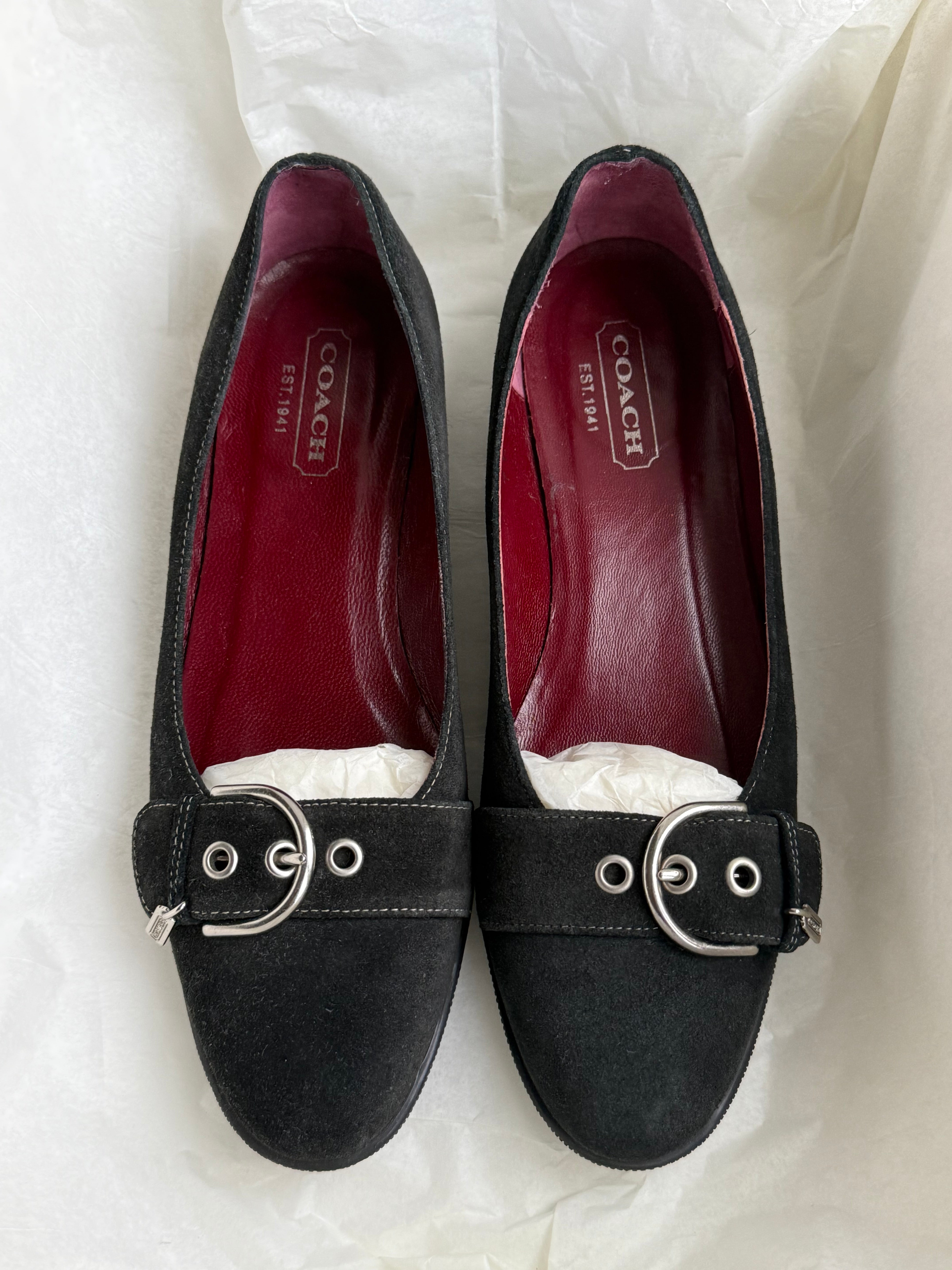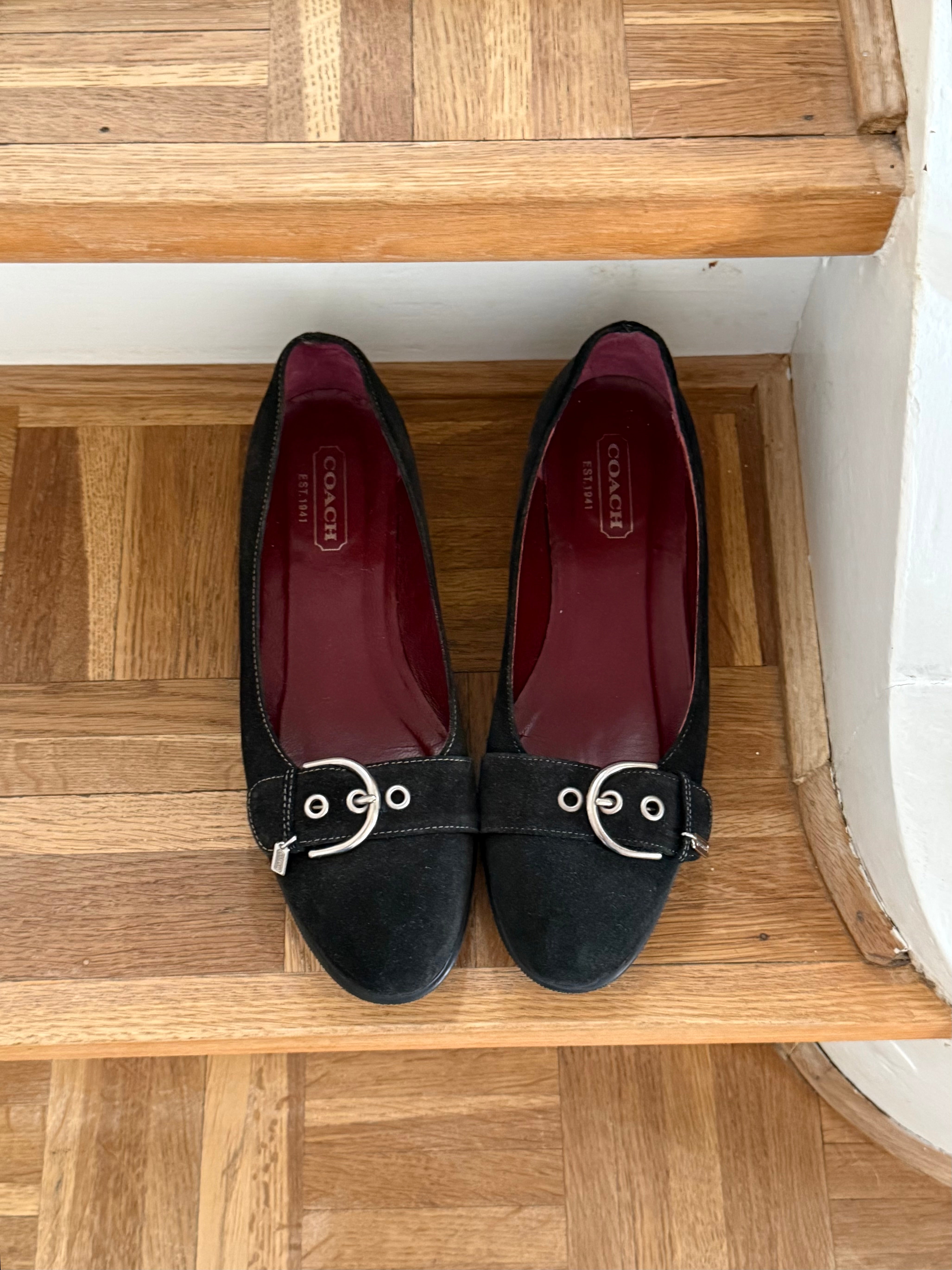Vintage suede buckle ballet flats from Coach, in the model ‘Breanna suede’.