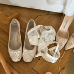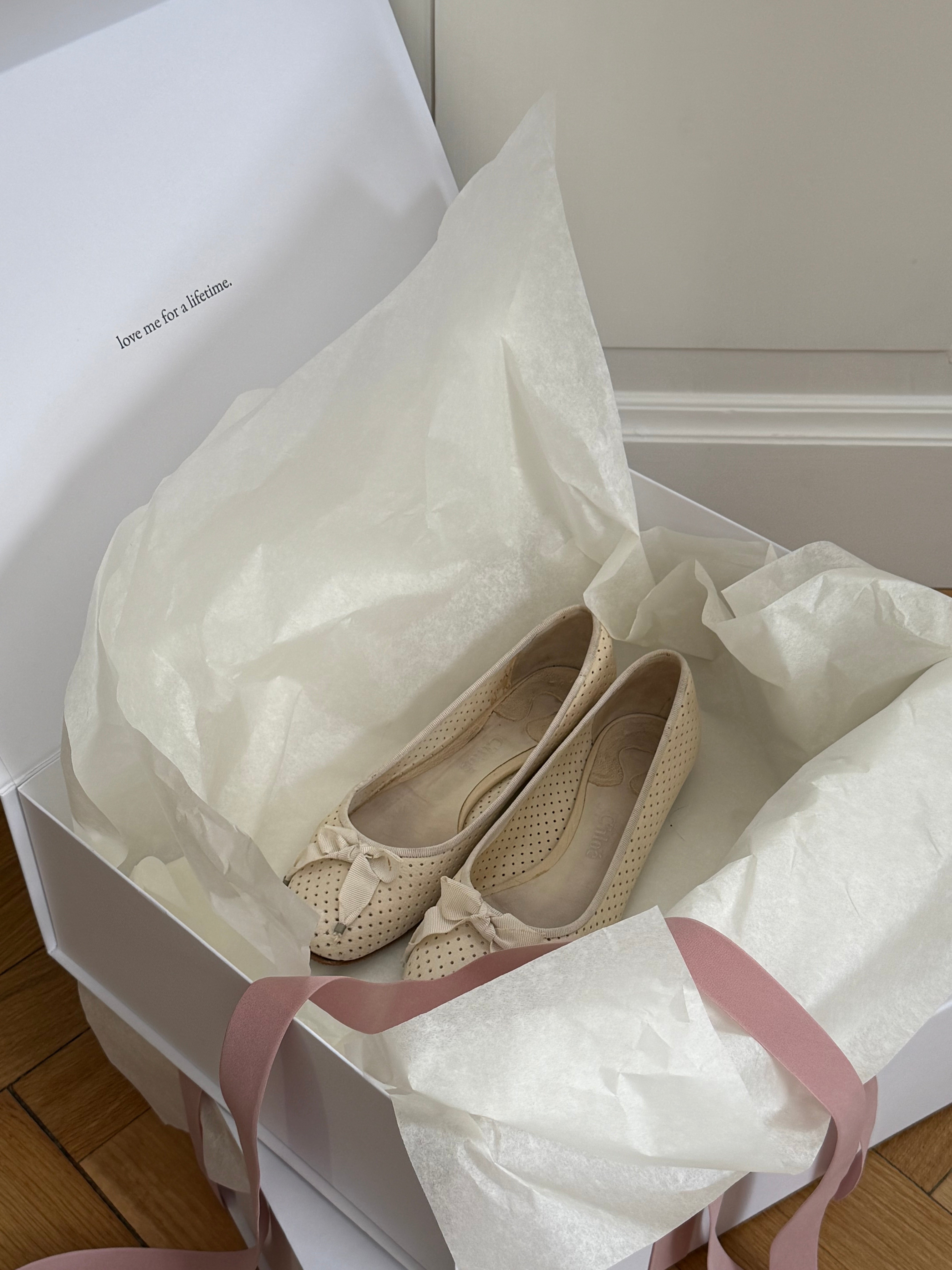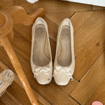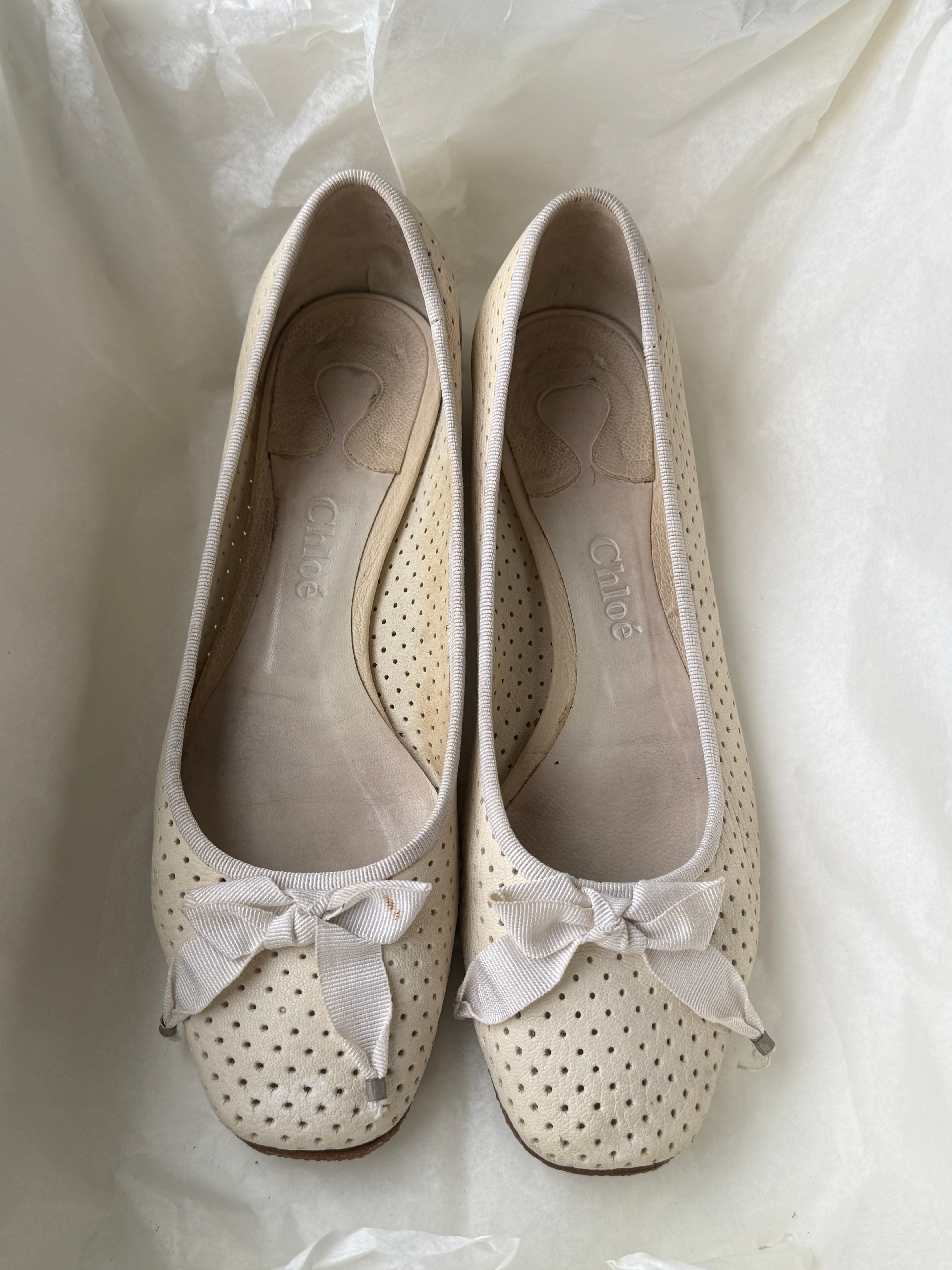 Vintage Chloé ballet flats in perforated leather with bow detail and rounded square toe.