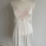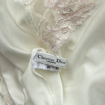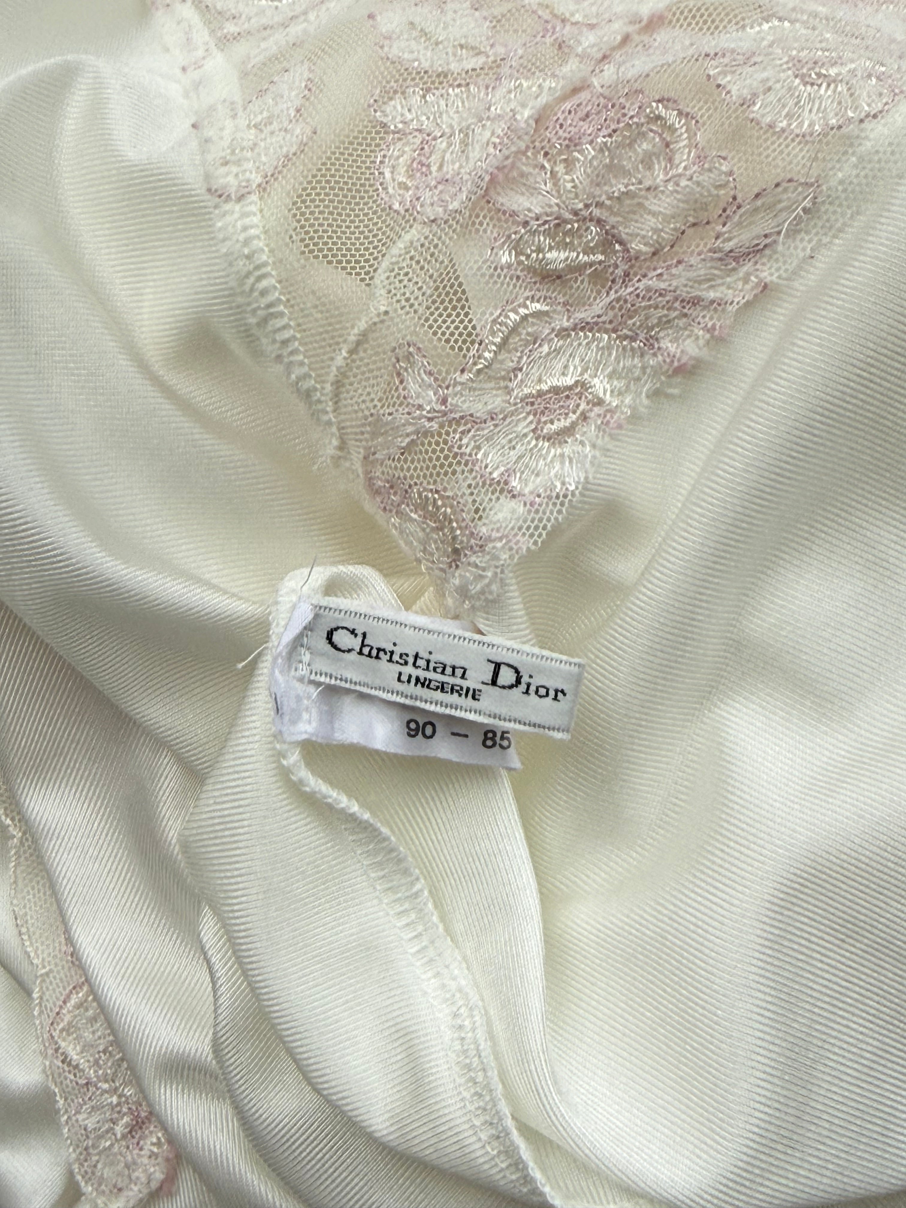 Vintage Christian Dior white lingerie dress with thin adjustable straps and beautiful pink lace detailing.