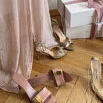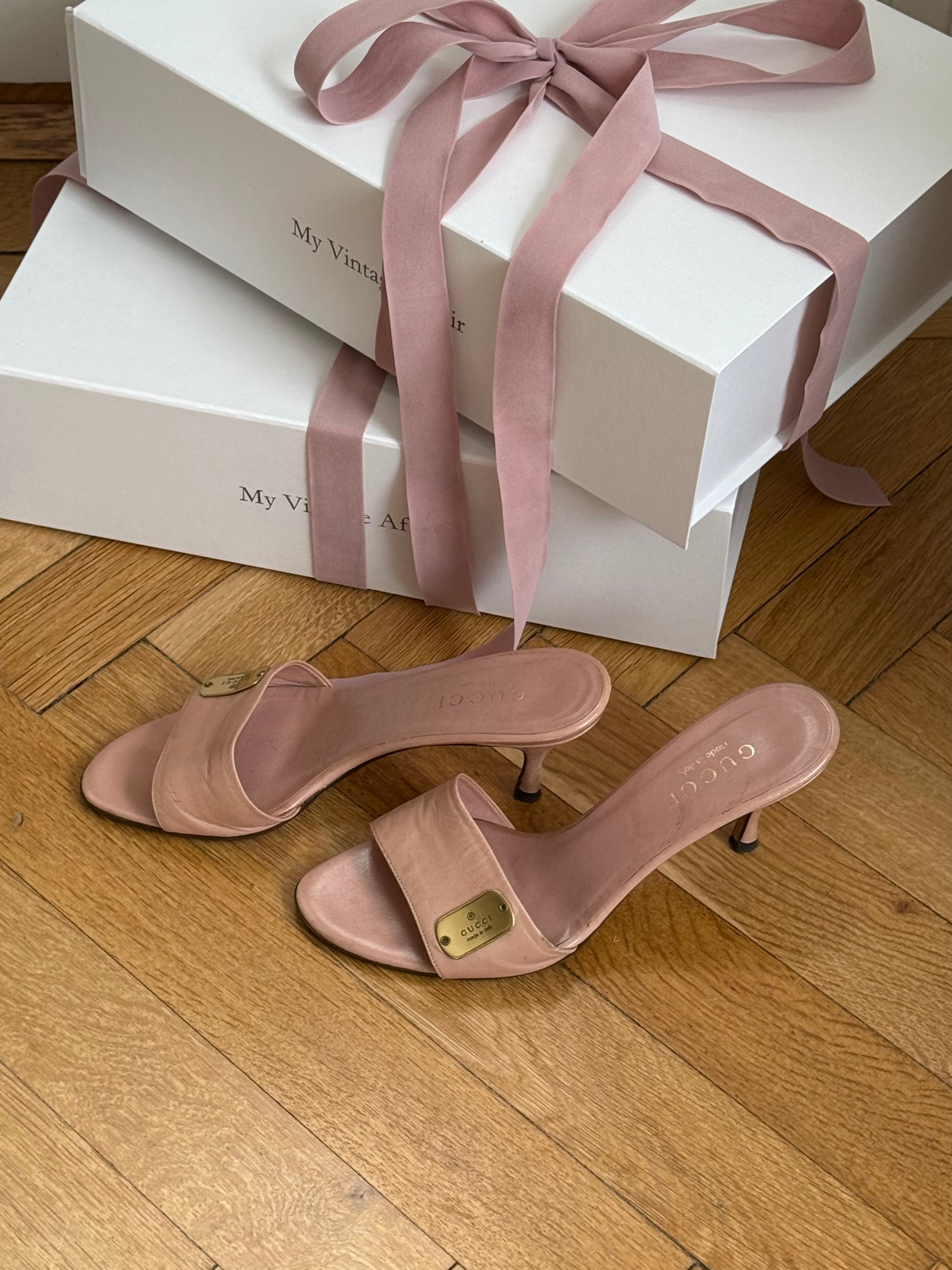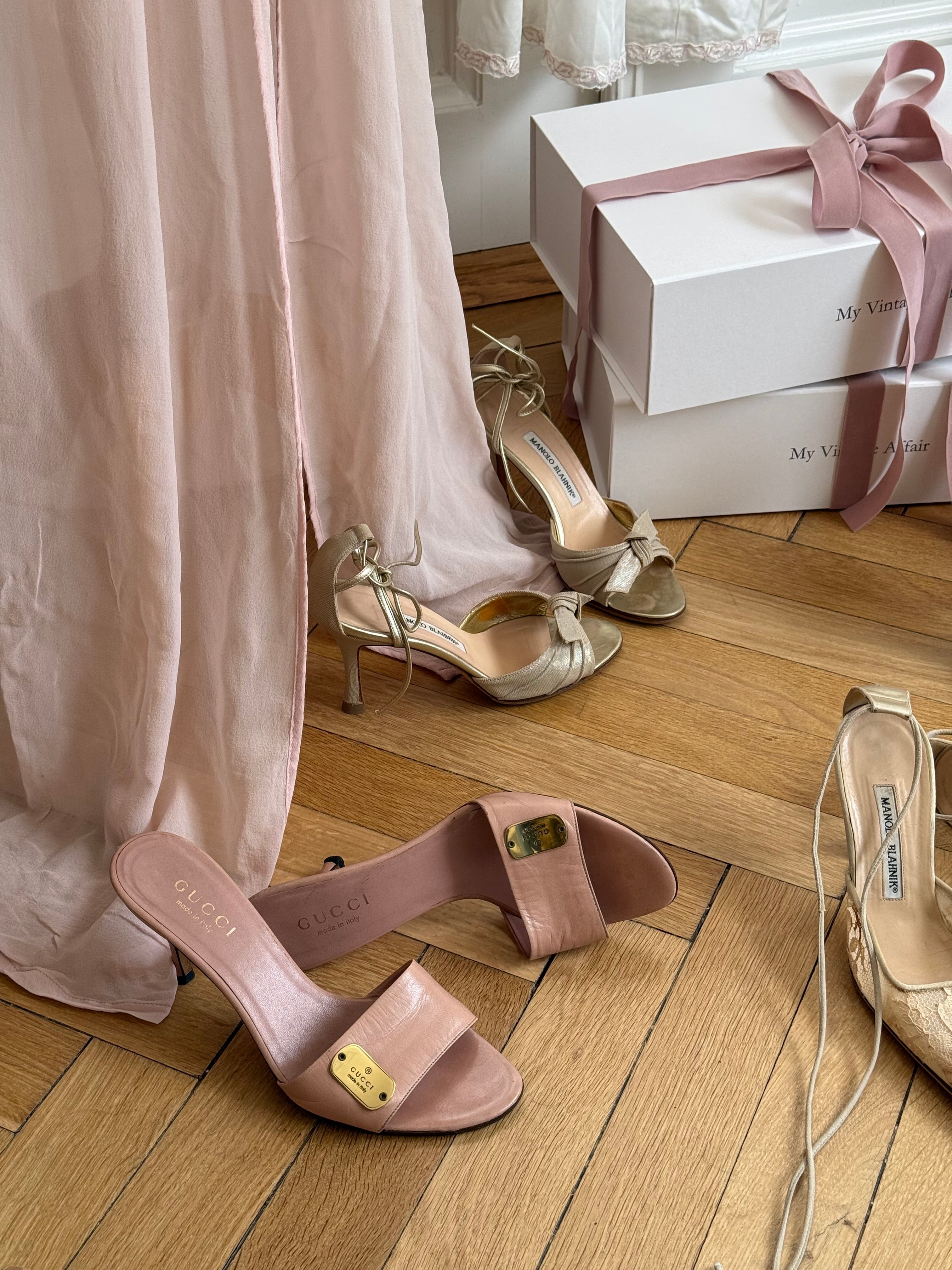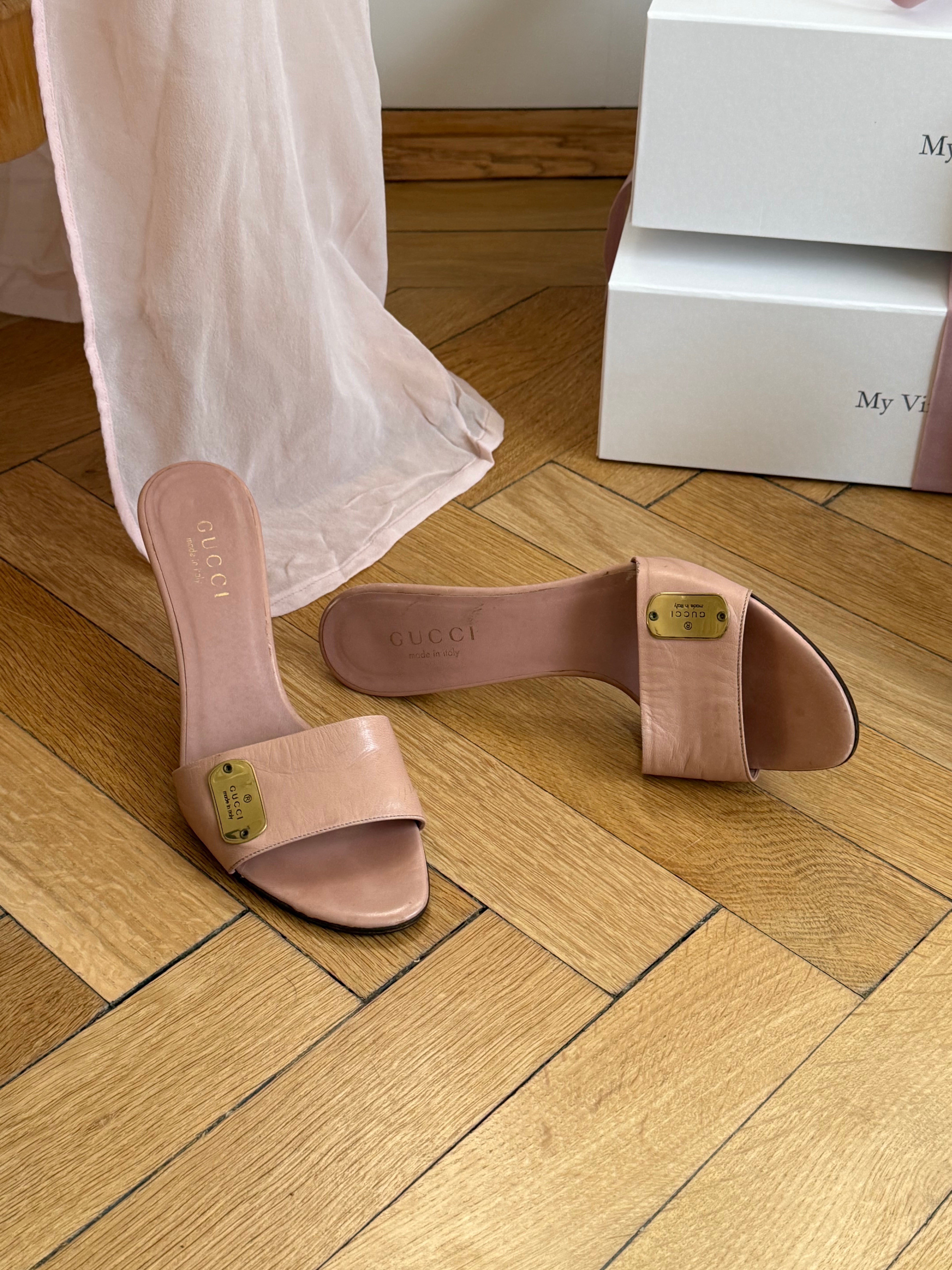 Pink Beige open-toe leather mules in beige/pink by Gucci from early 2000s.