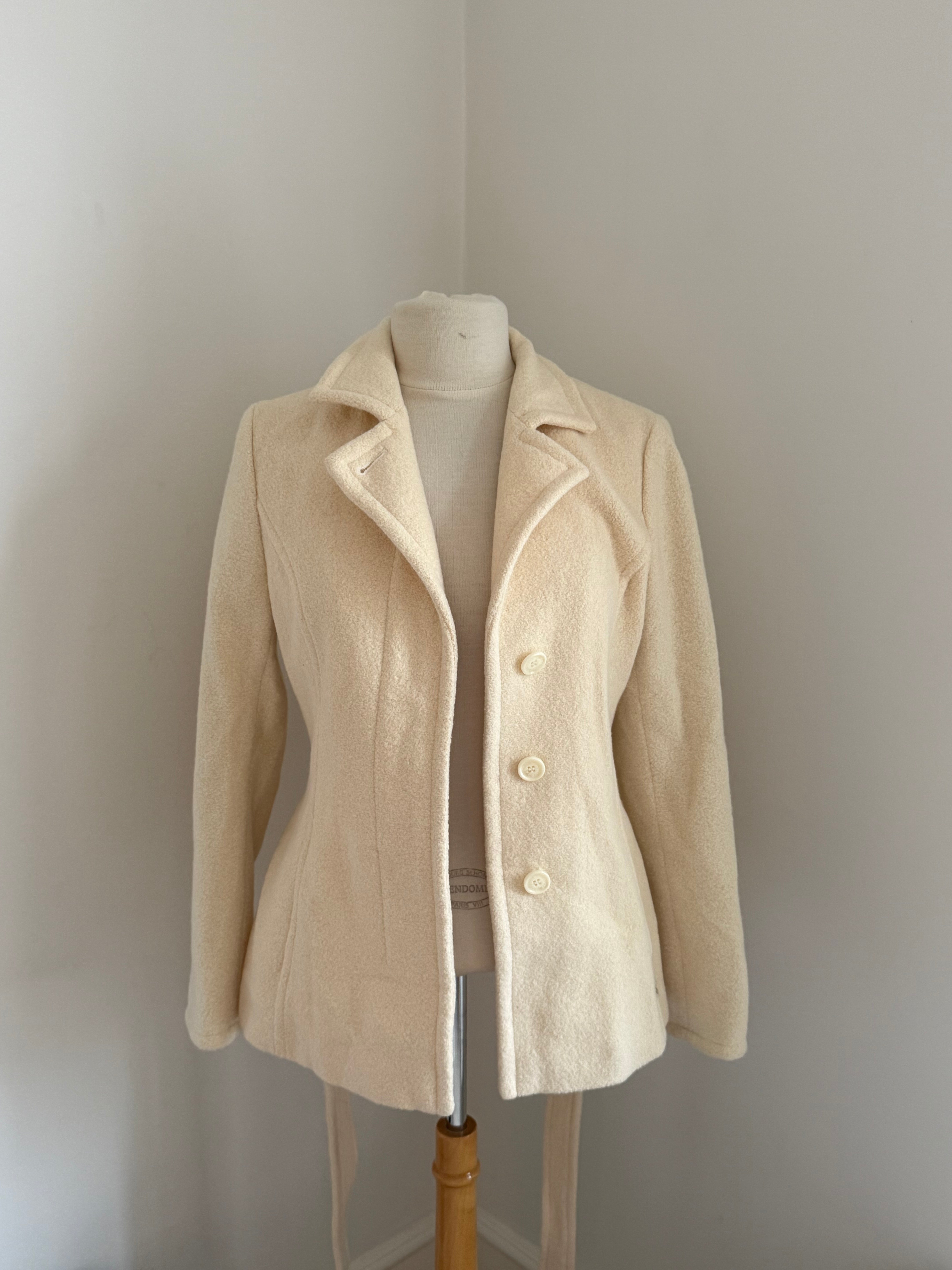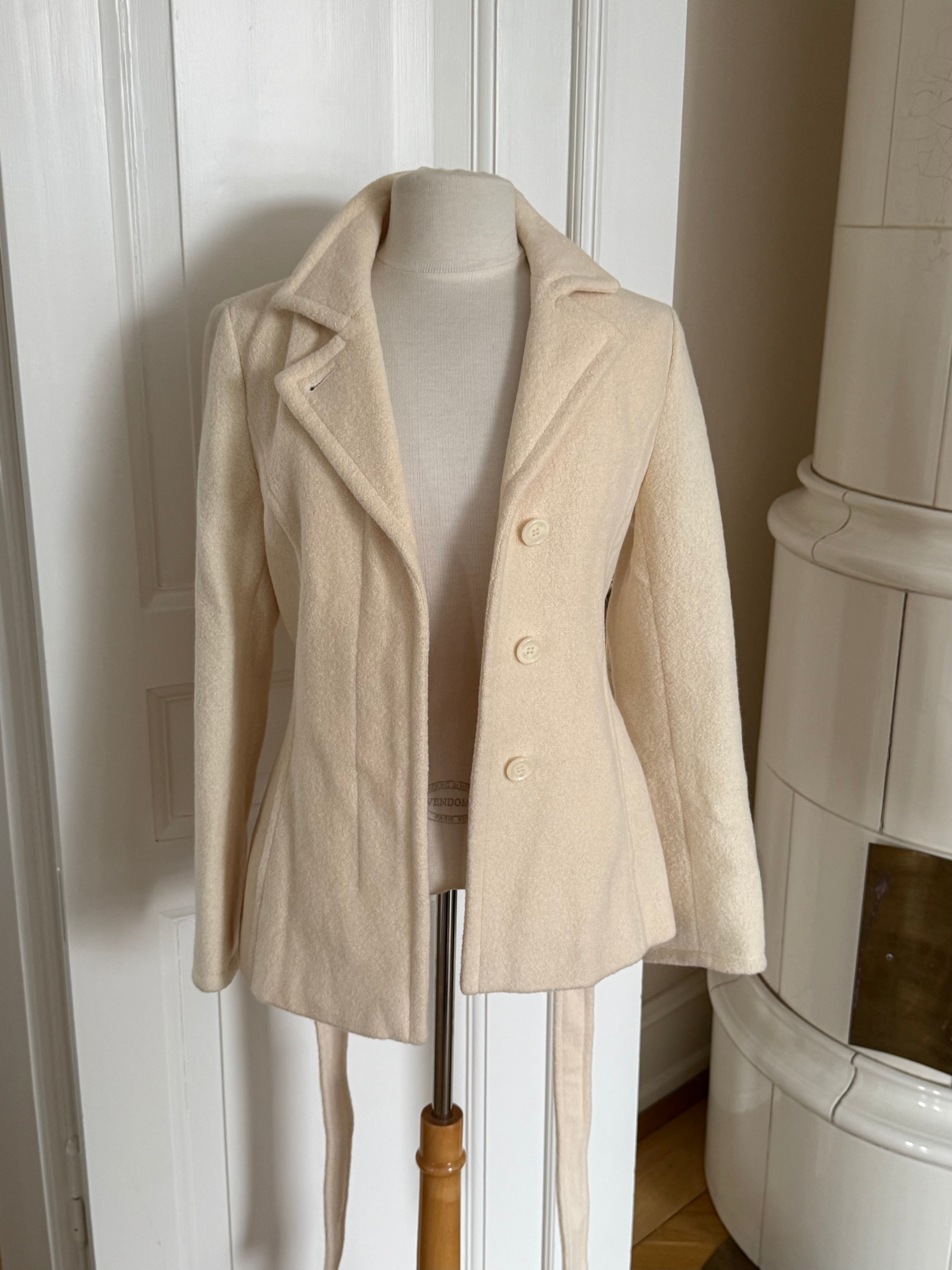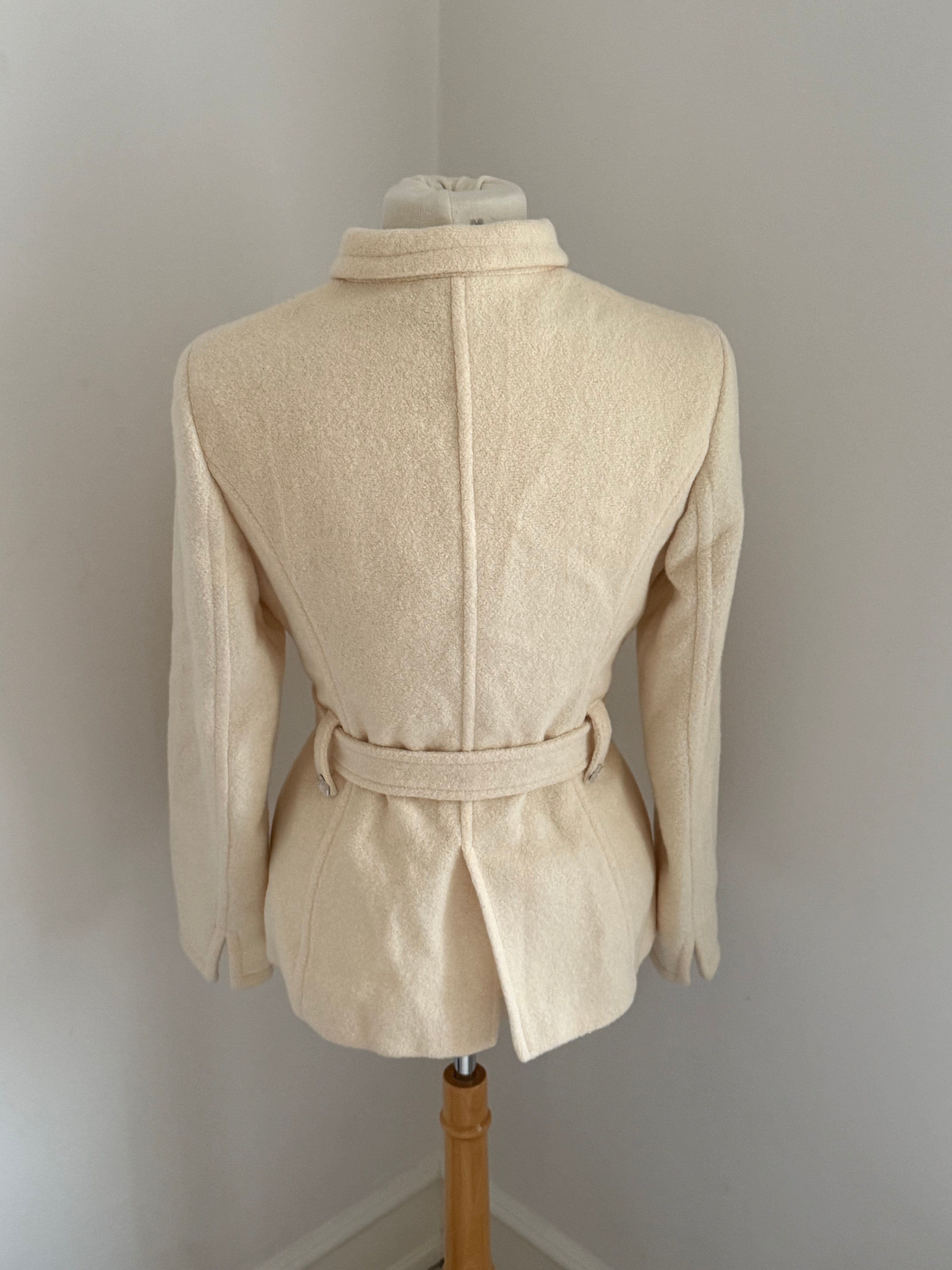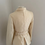Beautiful vintage Sonia Rykiel jacket crafted from a soft angora blend with a smooth cupro lining. Designed with a fitted silhouette, classic lapel collar, tie waist closure and buttons.