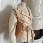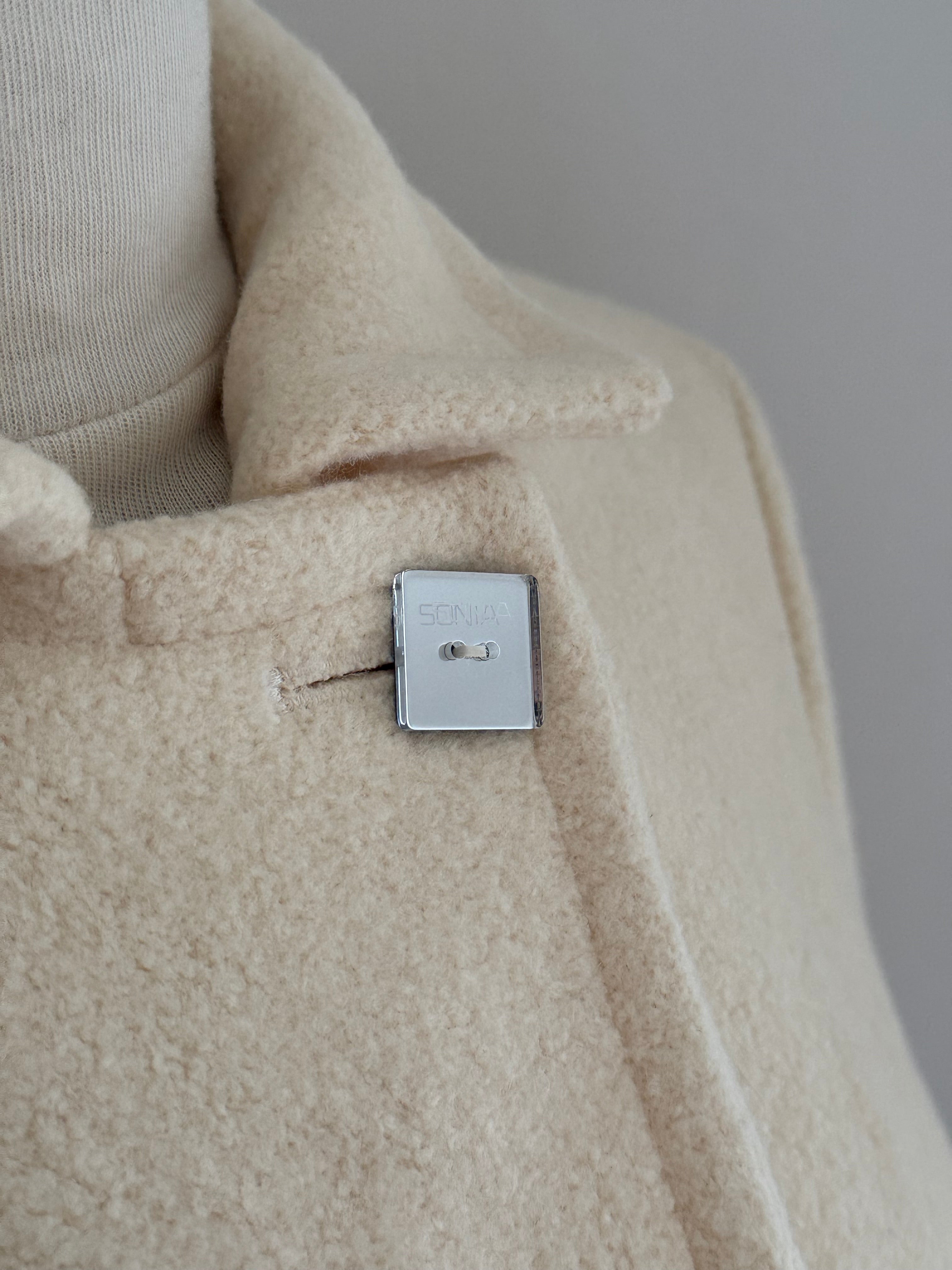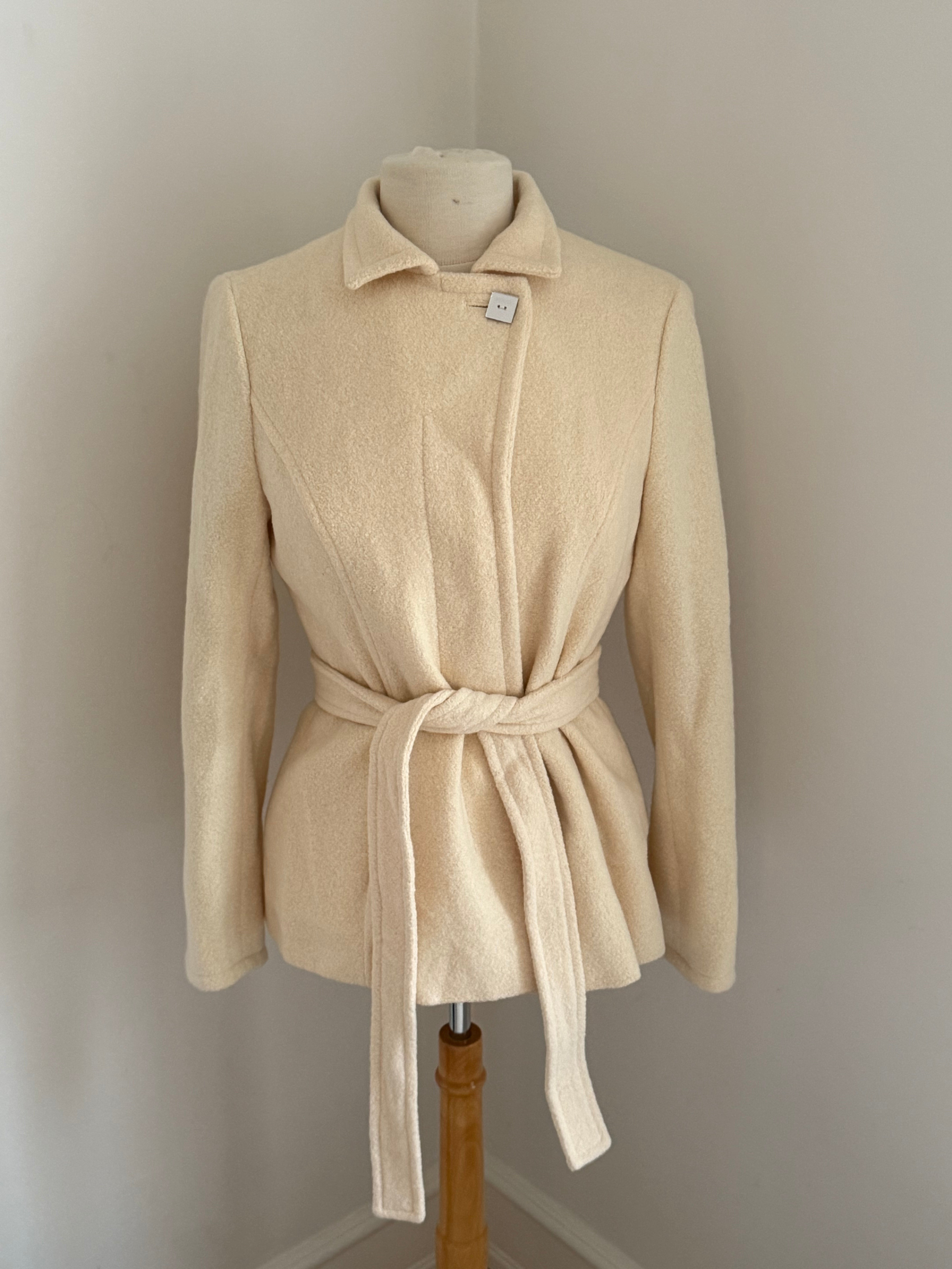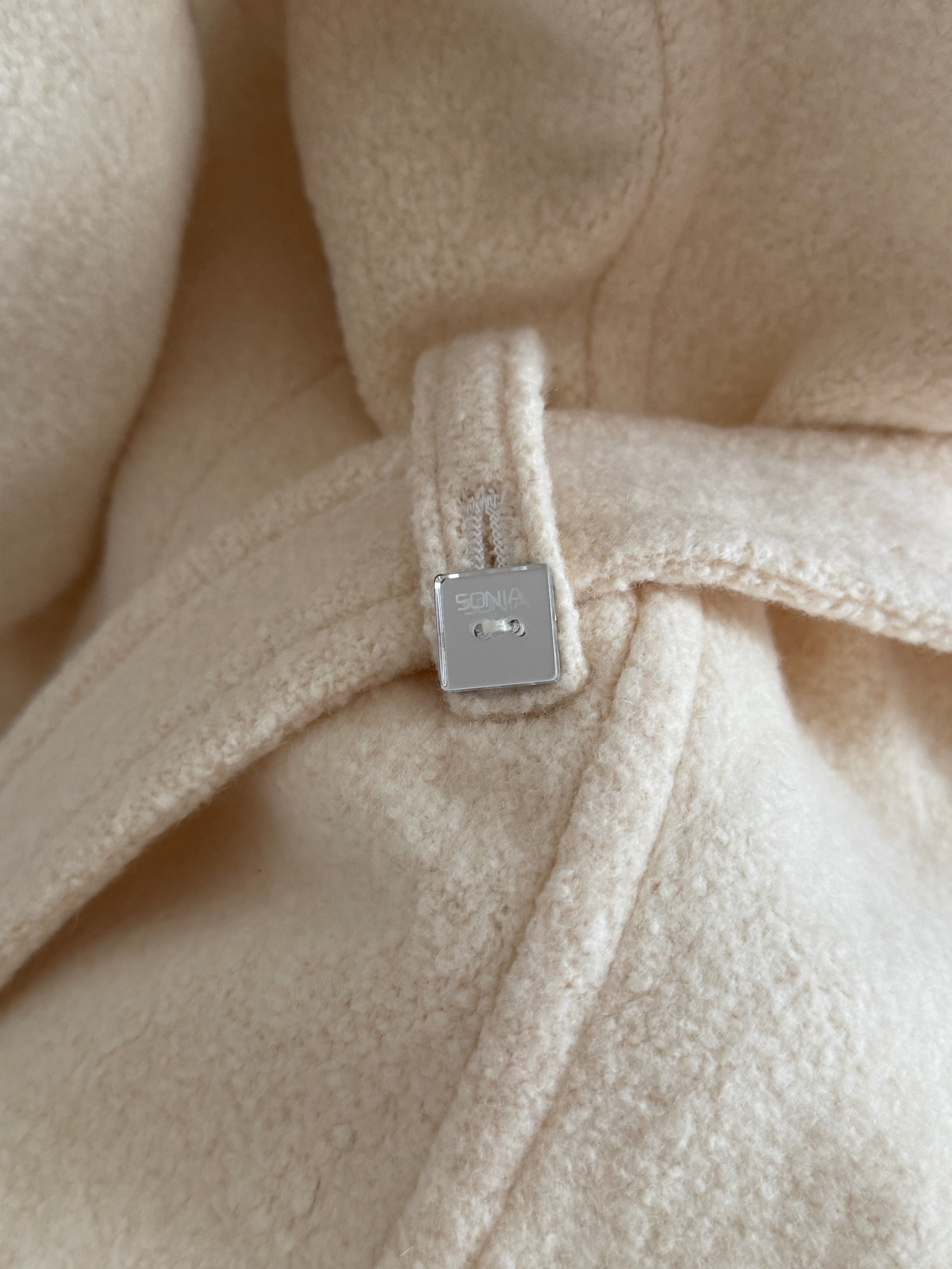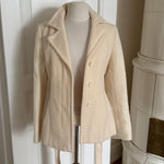 Beautiful vintage Sonia Rykiel jacket crafted from a soft angora blend with a smooth cupro lining. Designed with a fitted silhouette, classic lapel collar, tie waist closure and buttons.