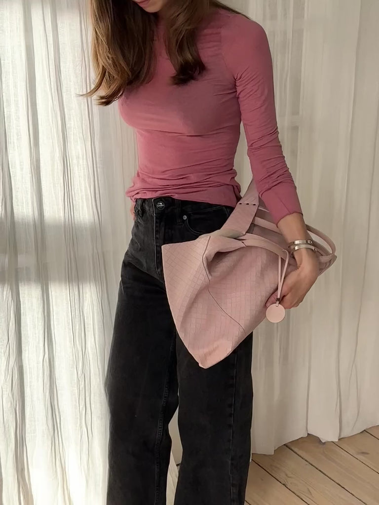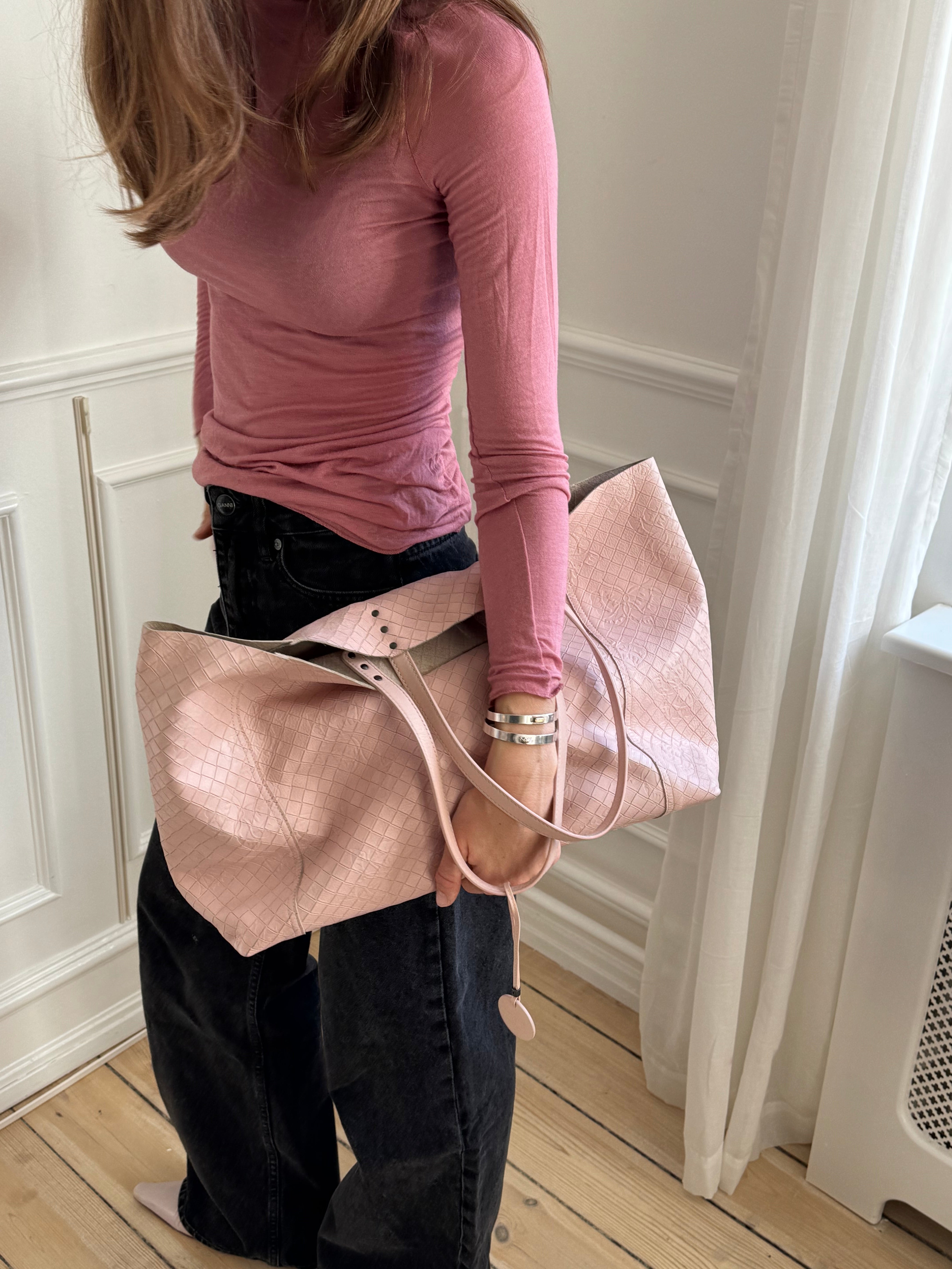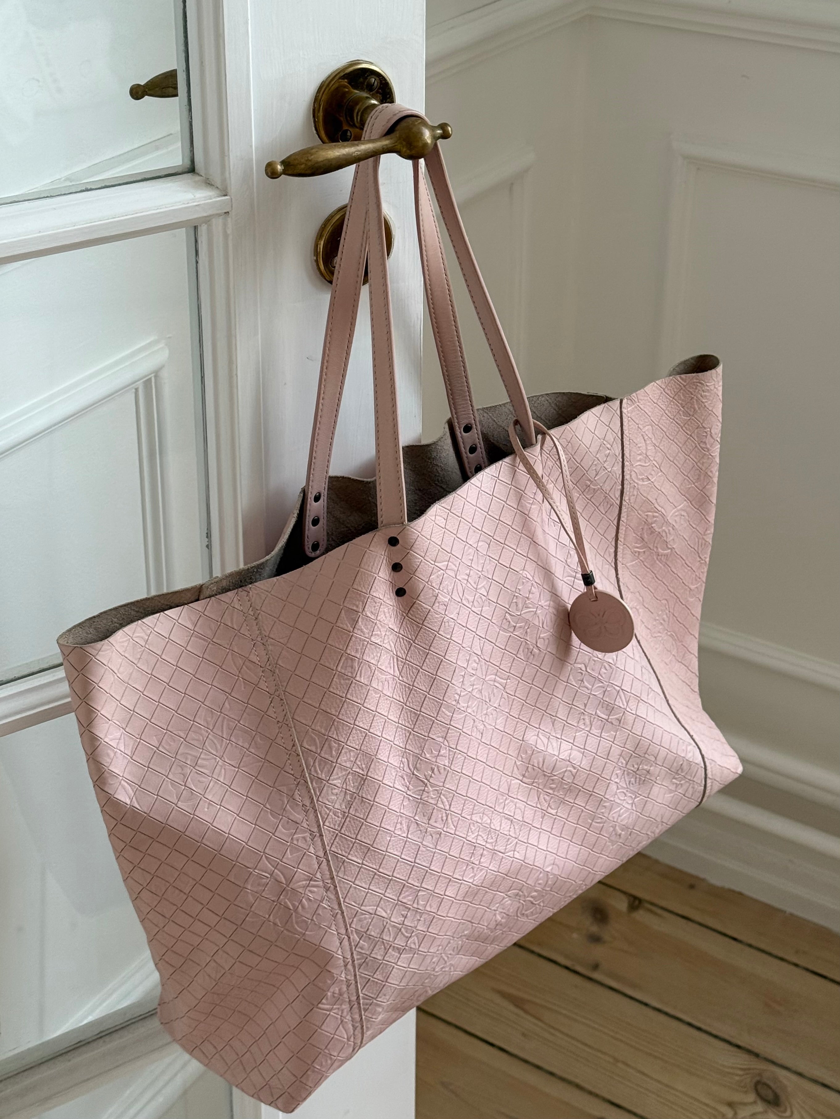 Beautiful vintage Bottega Veneta butterfly tote bag in soft leather with a butterfly charm in a stunning light pink color.