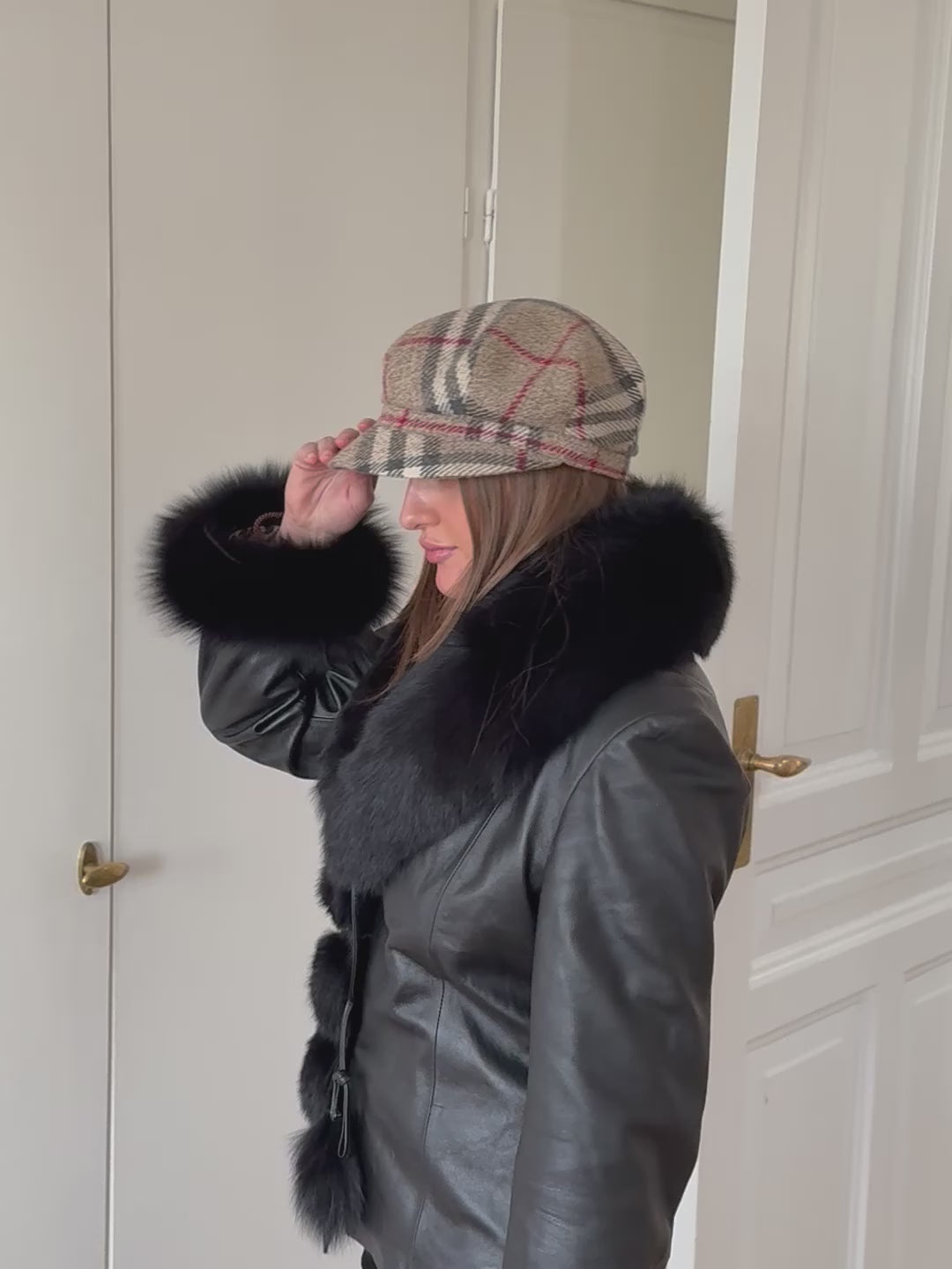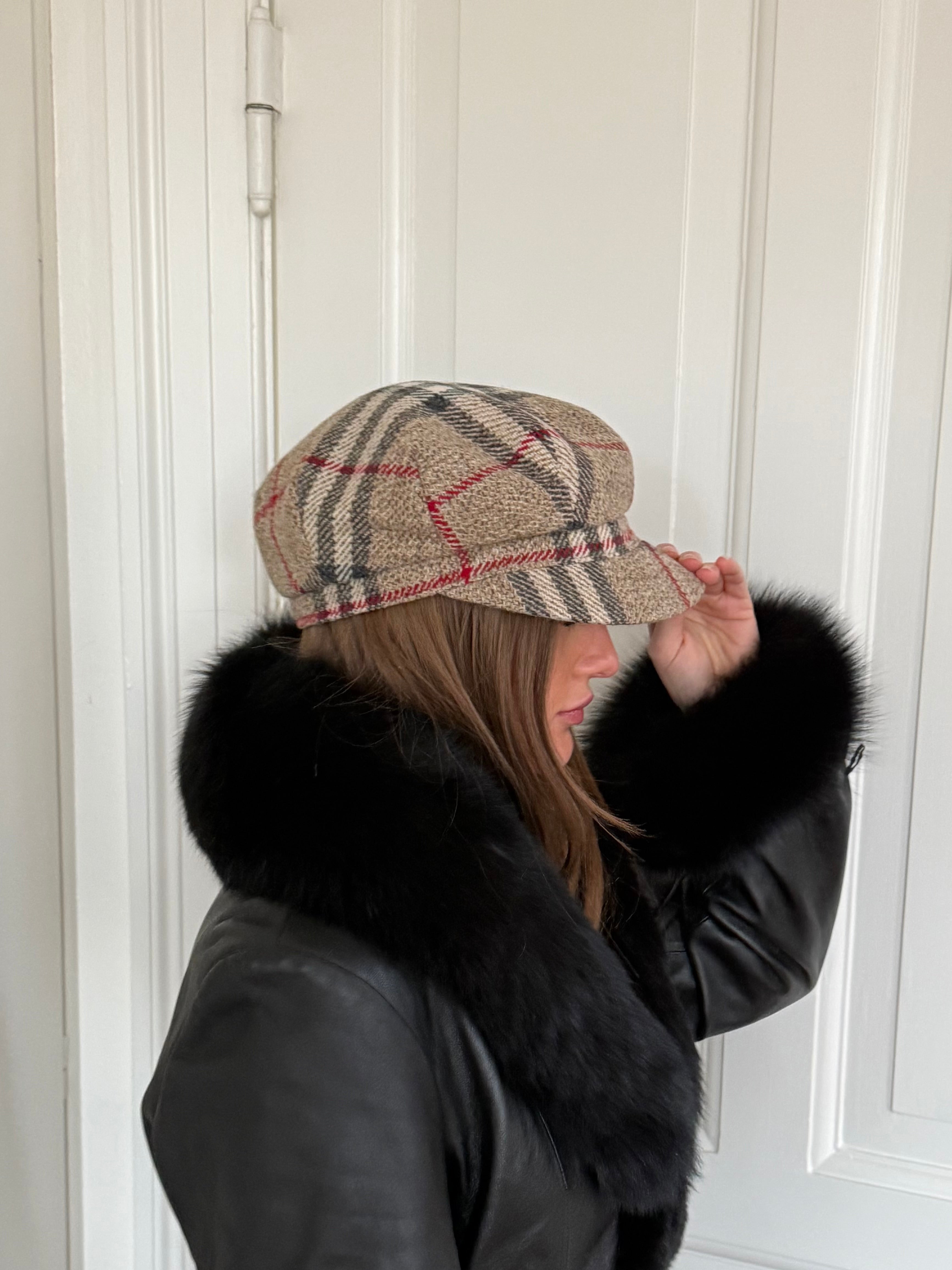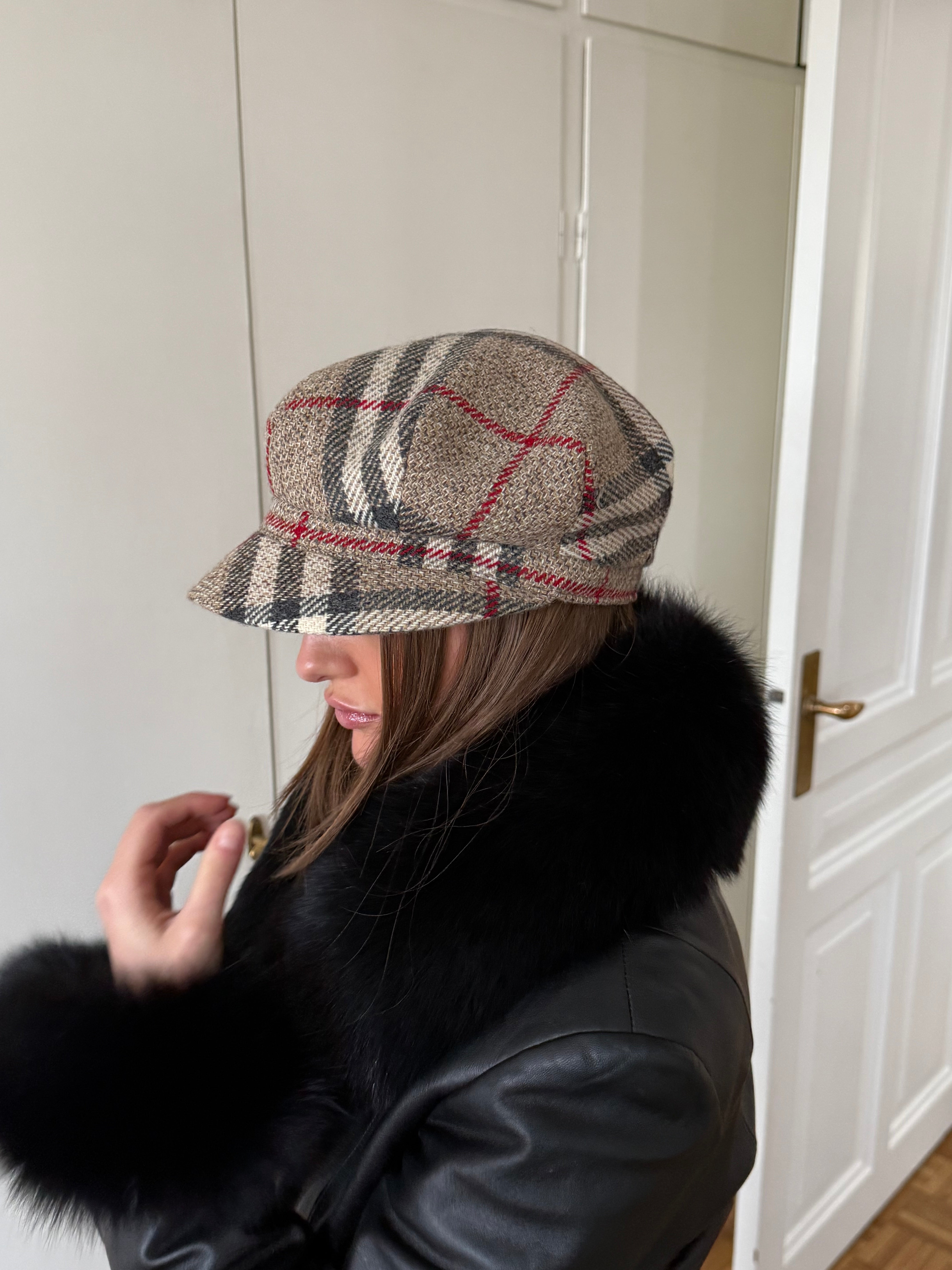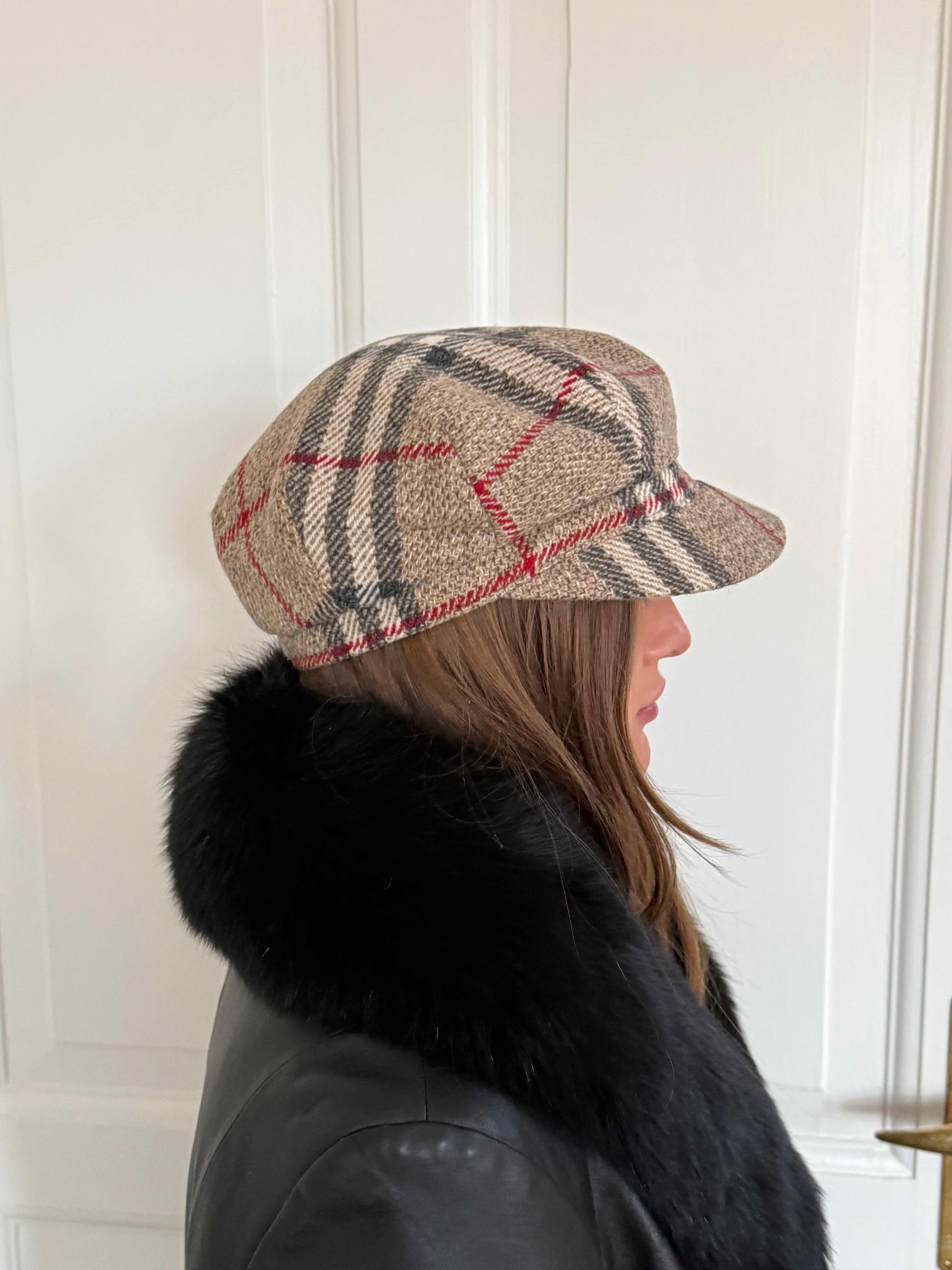 Vintage Burberry wool hat in gray with classic Burberry signature Nova check pattern.