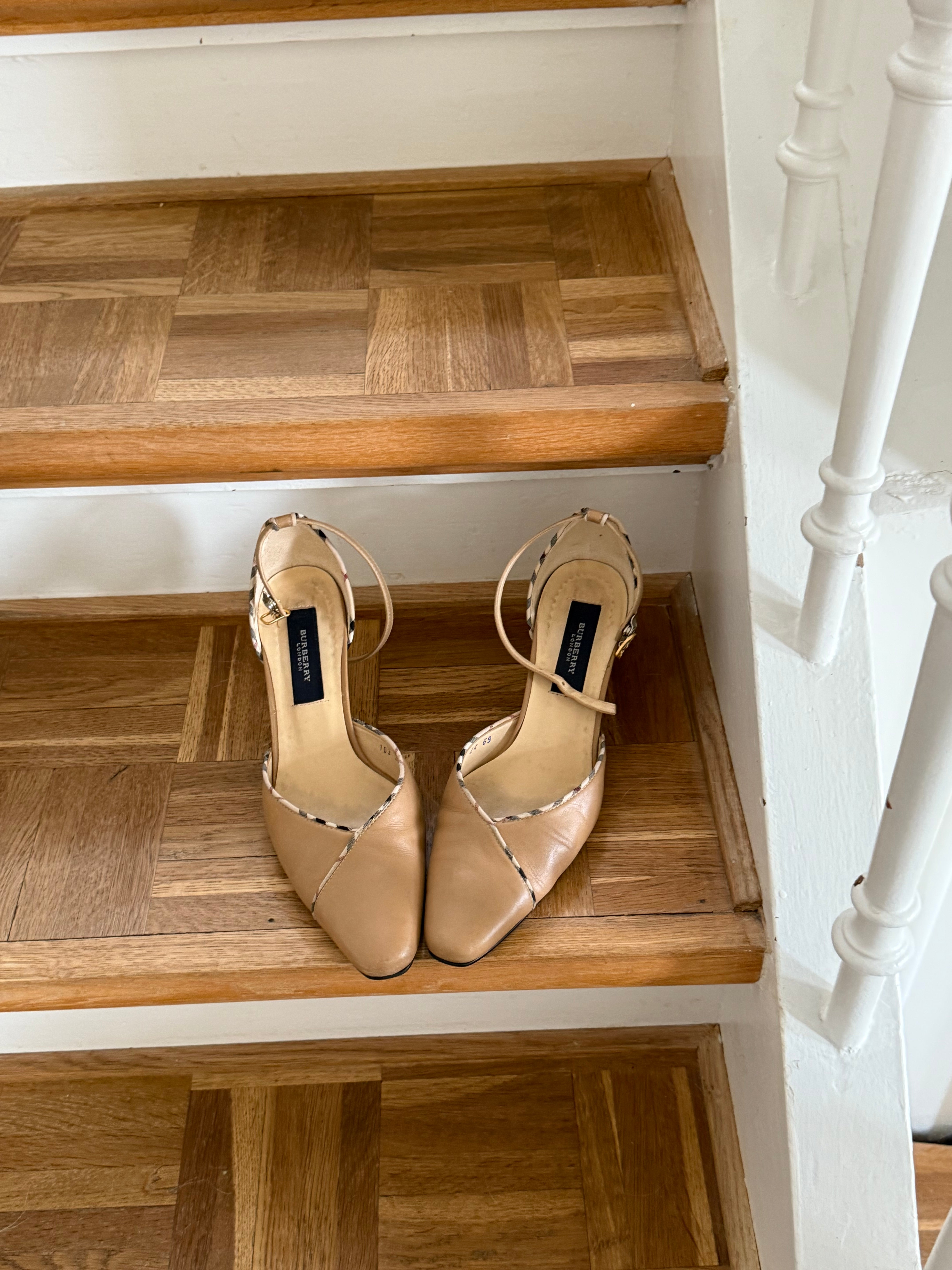 Vintage Burberry leather heels with adjustable straps. Comes with original box.