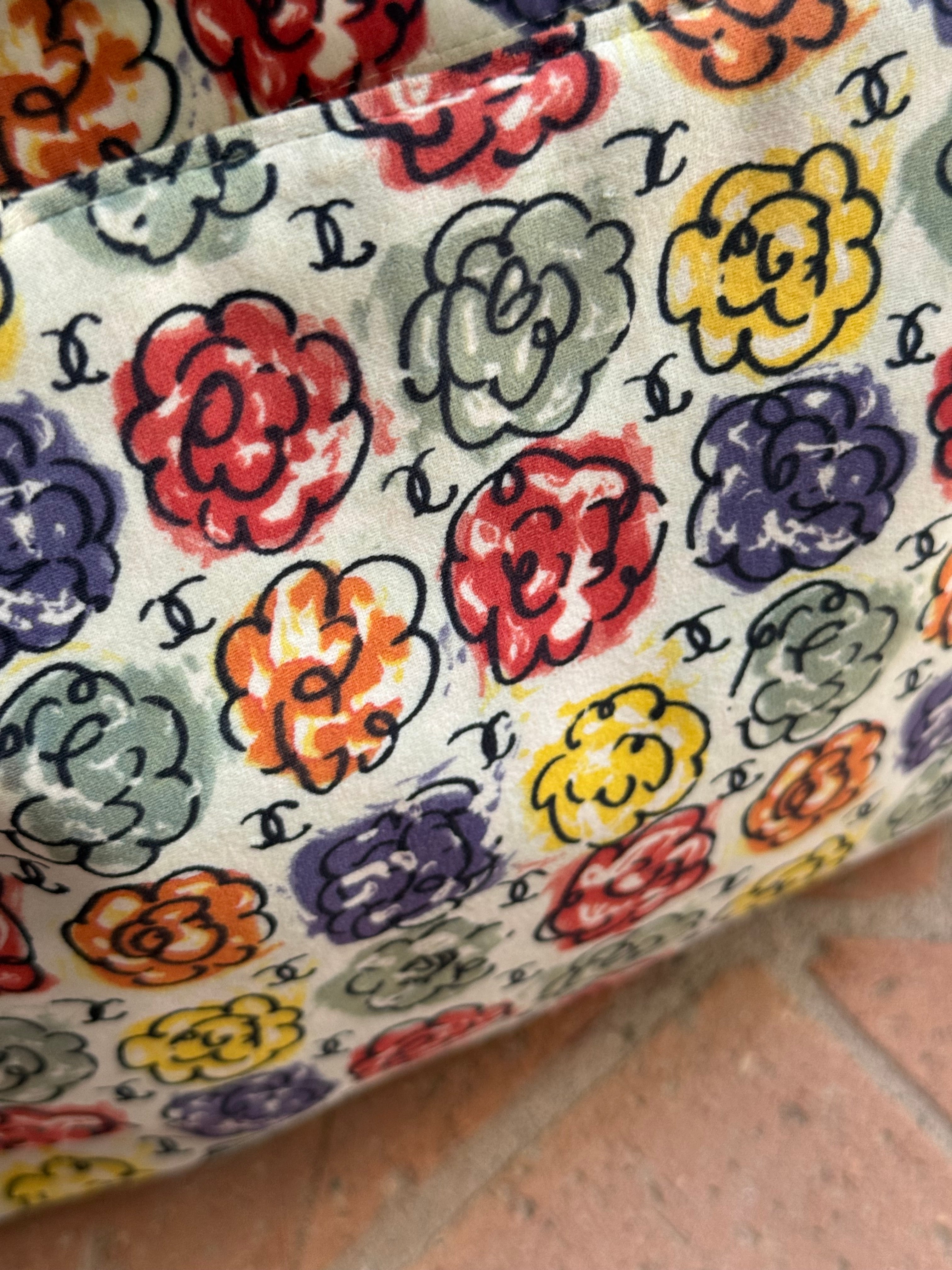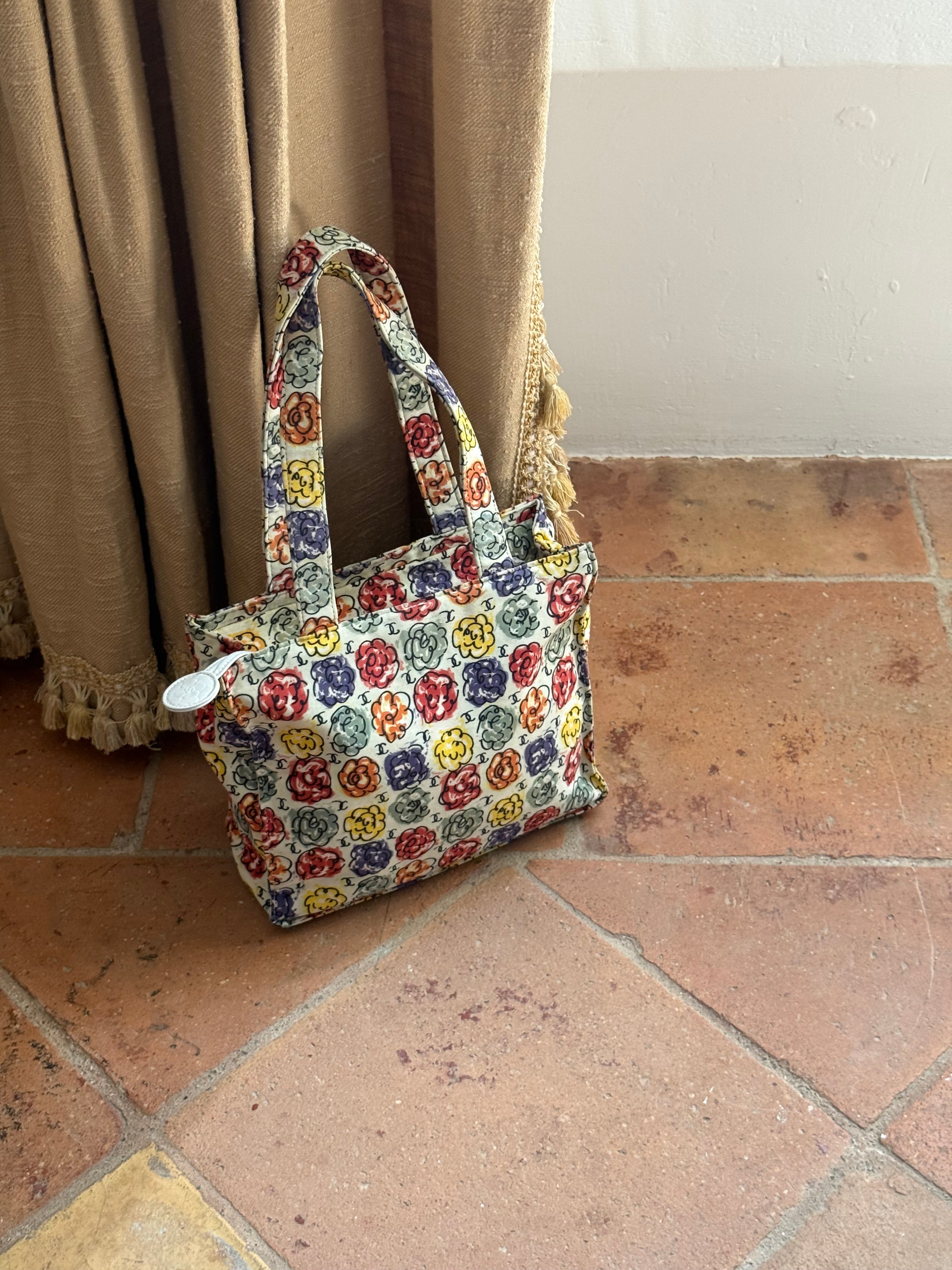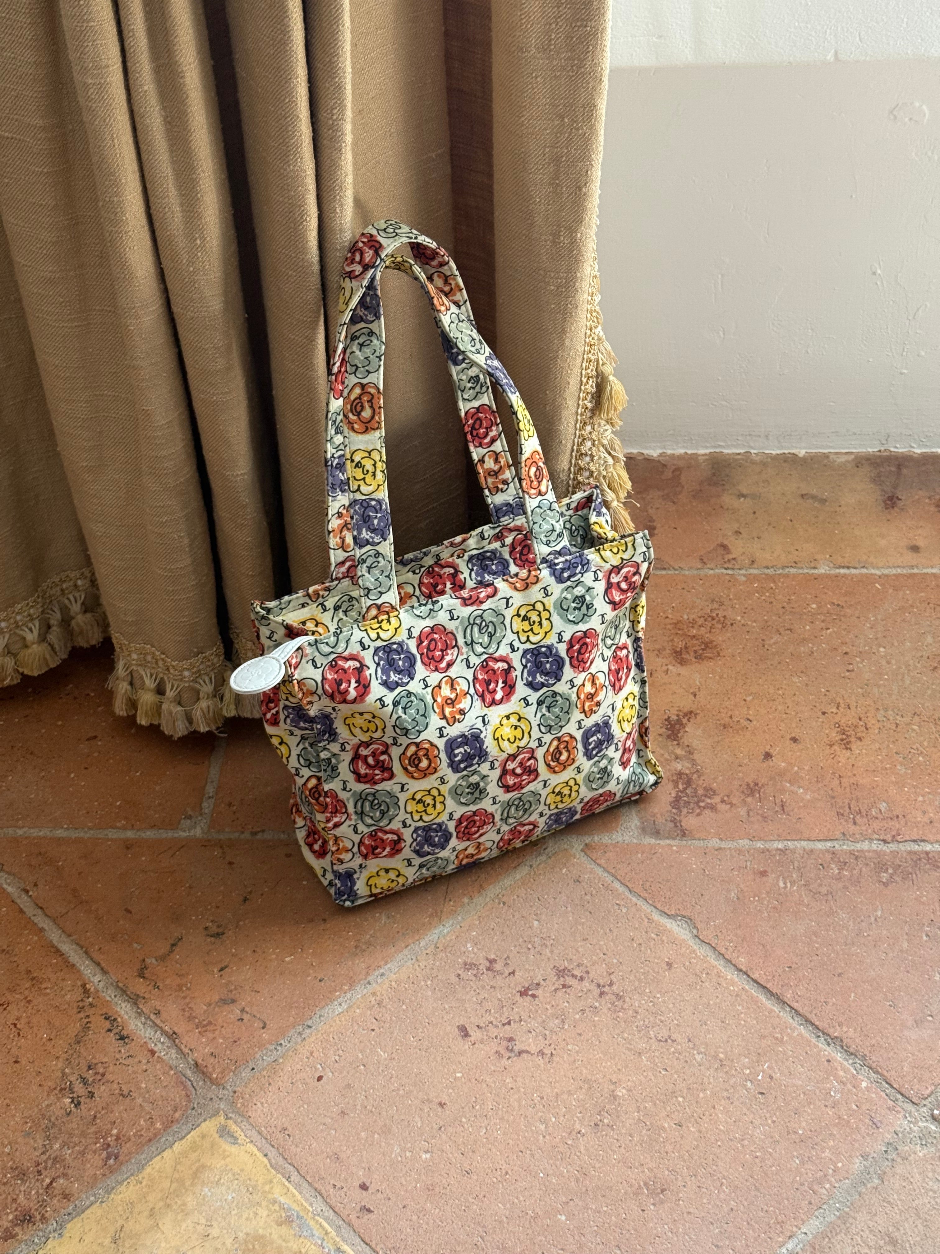 Beautiful multicolored Vintage Chanel Camellia Print Mini Tote bag. The bag is from 1997/1999 collection.