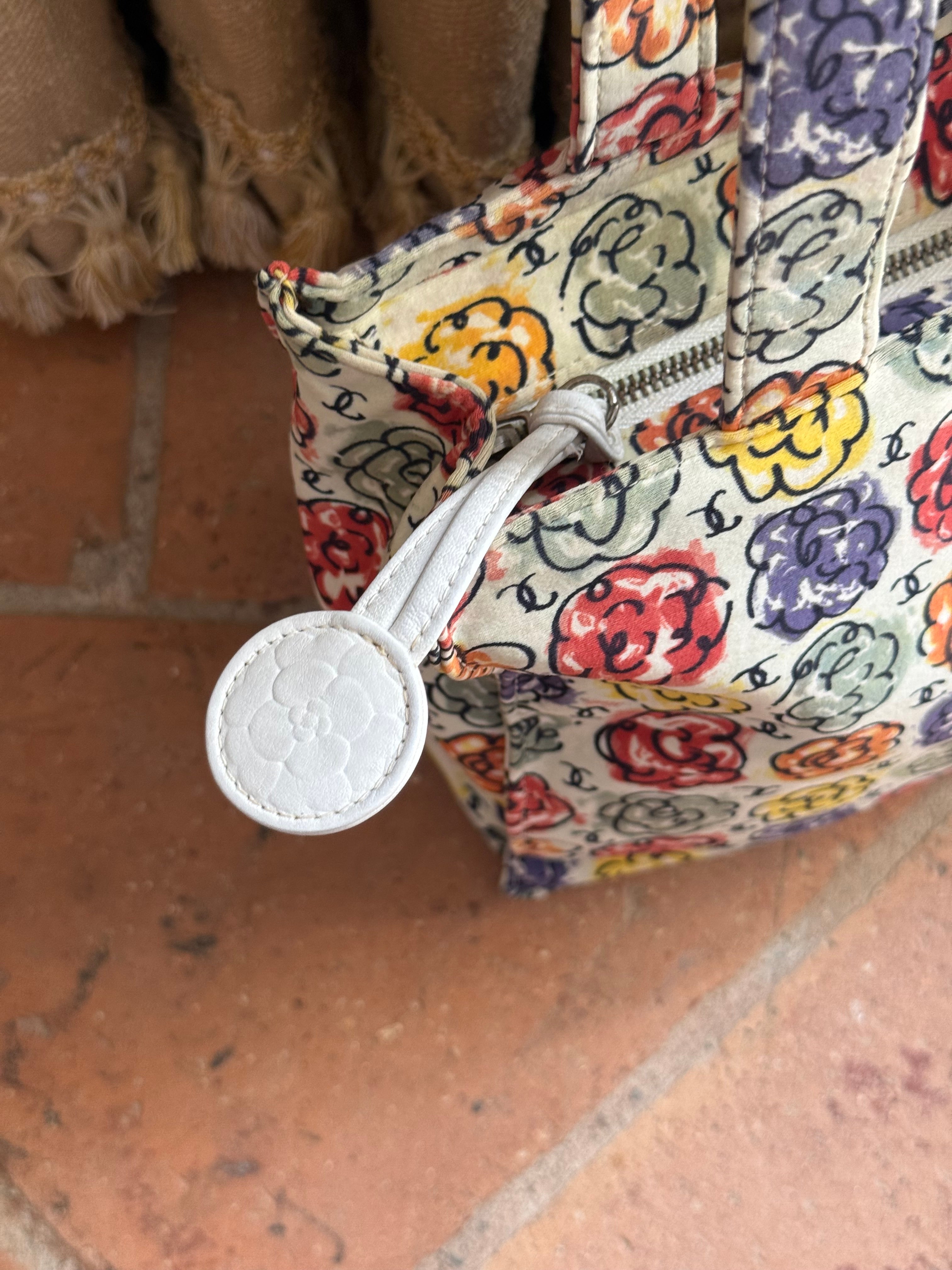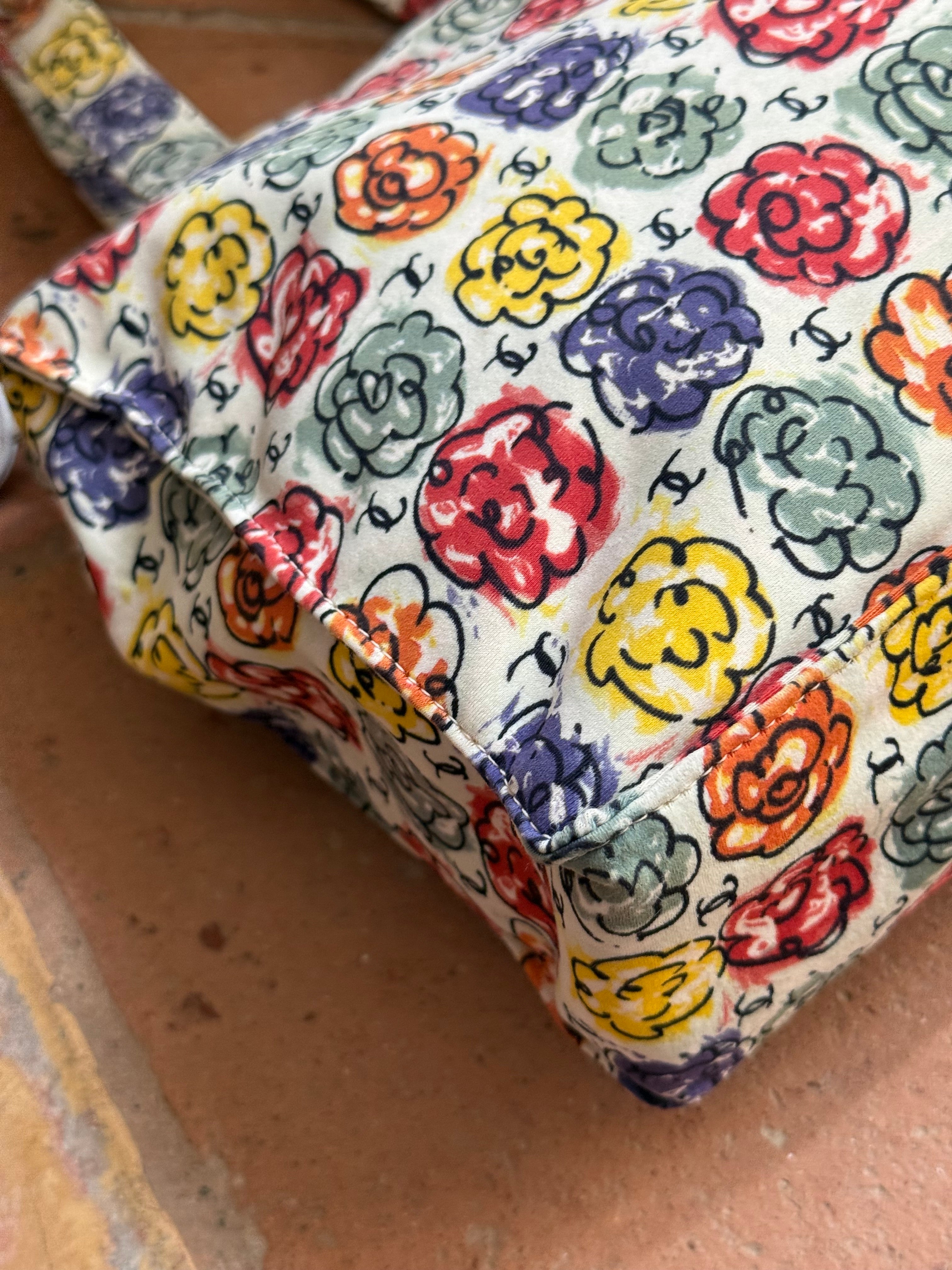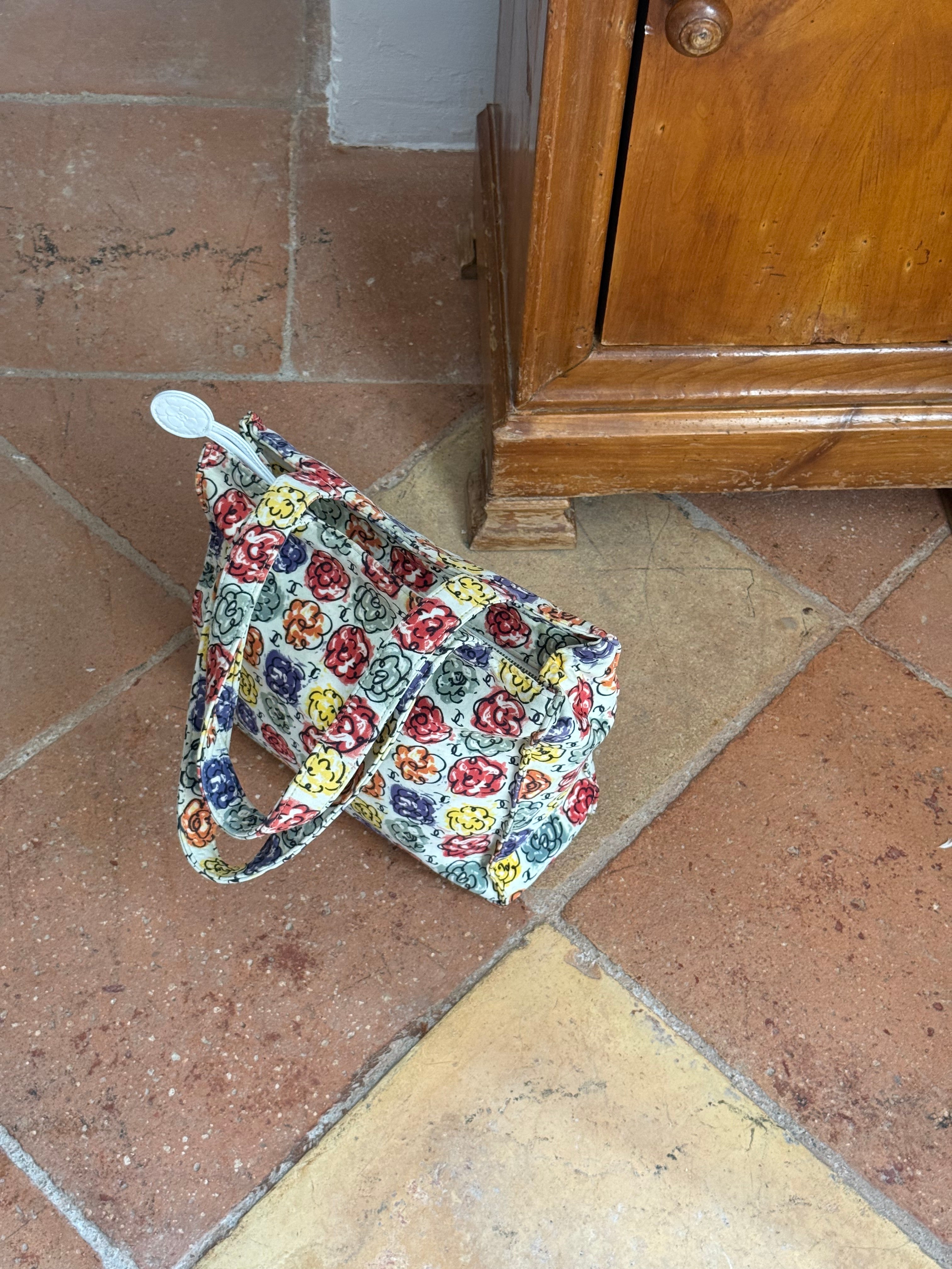 Beautiful multicolored Vintage Chanel Camellia Print Mini Tote bag. The bag is from 1997/1999 collection.