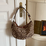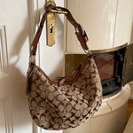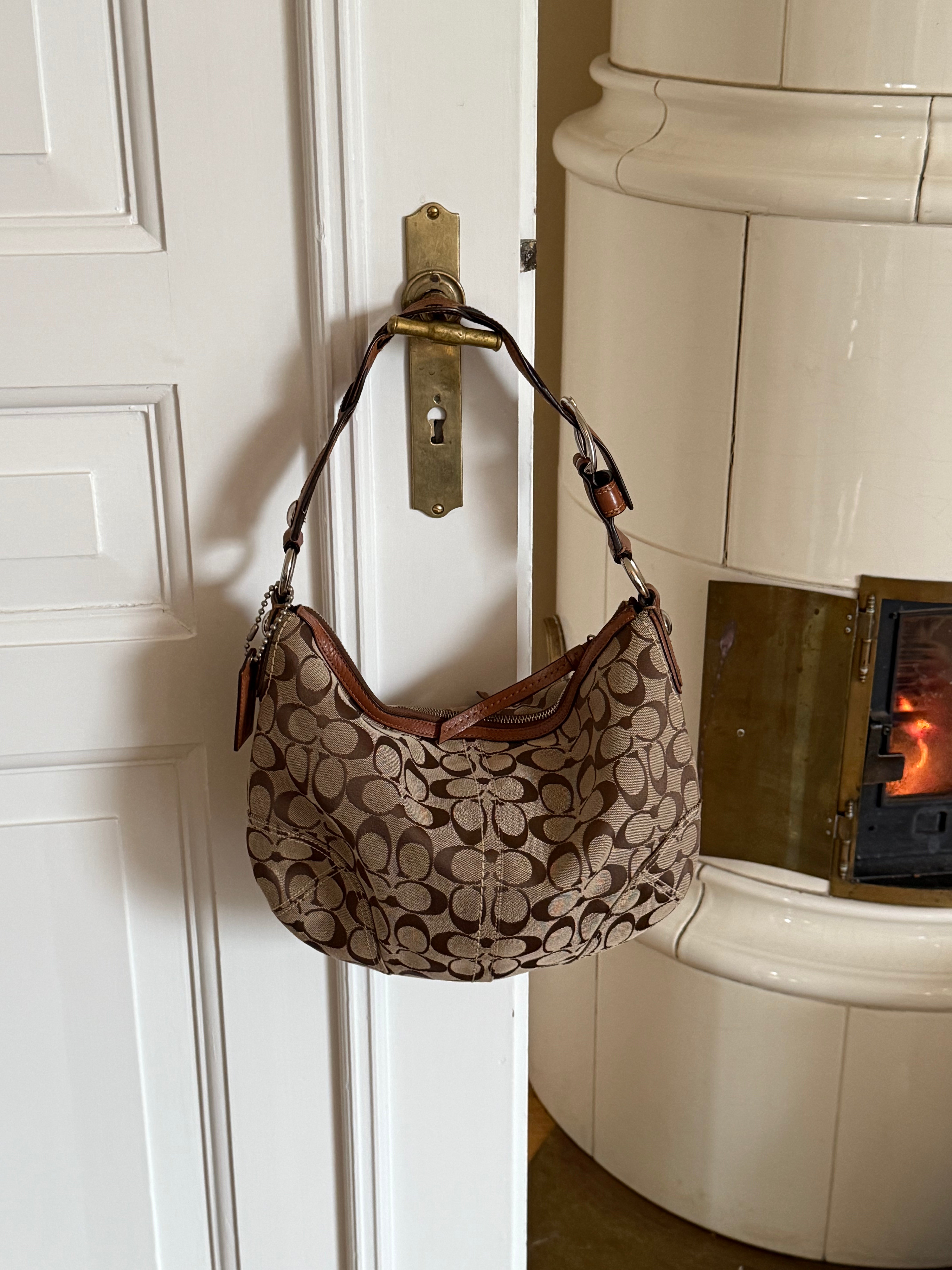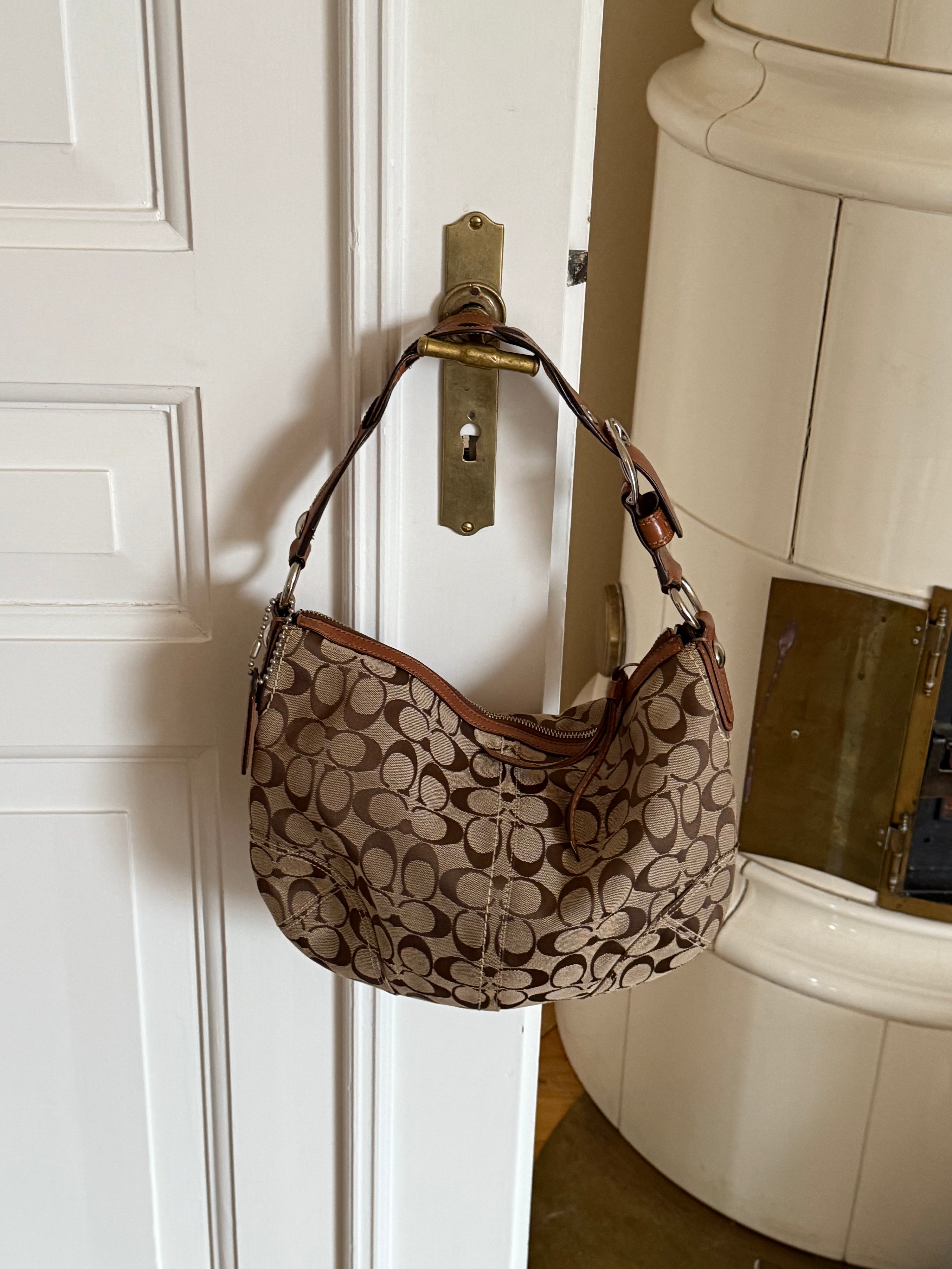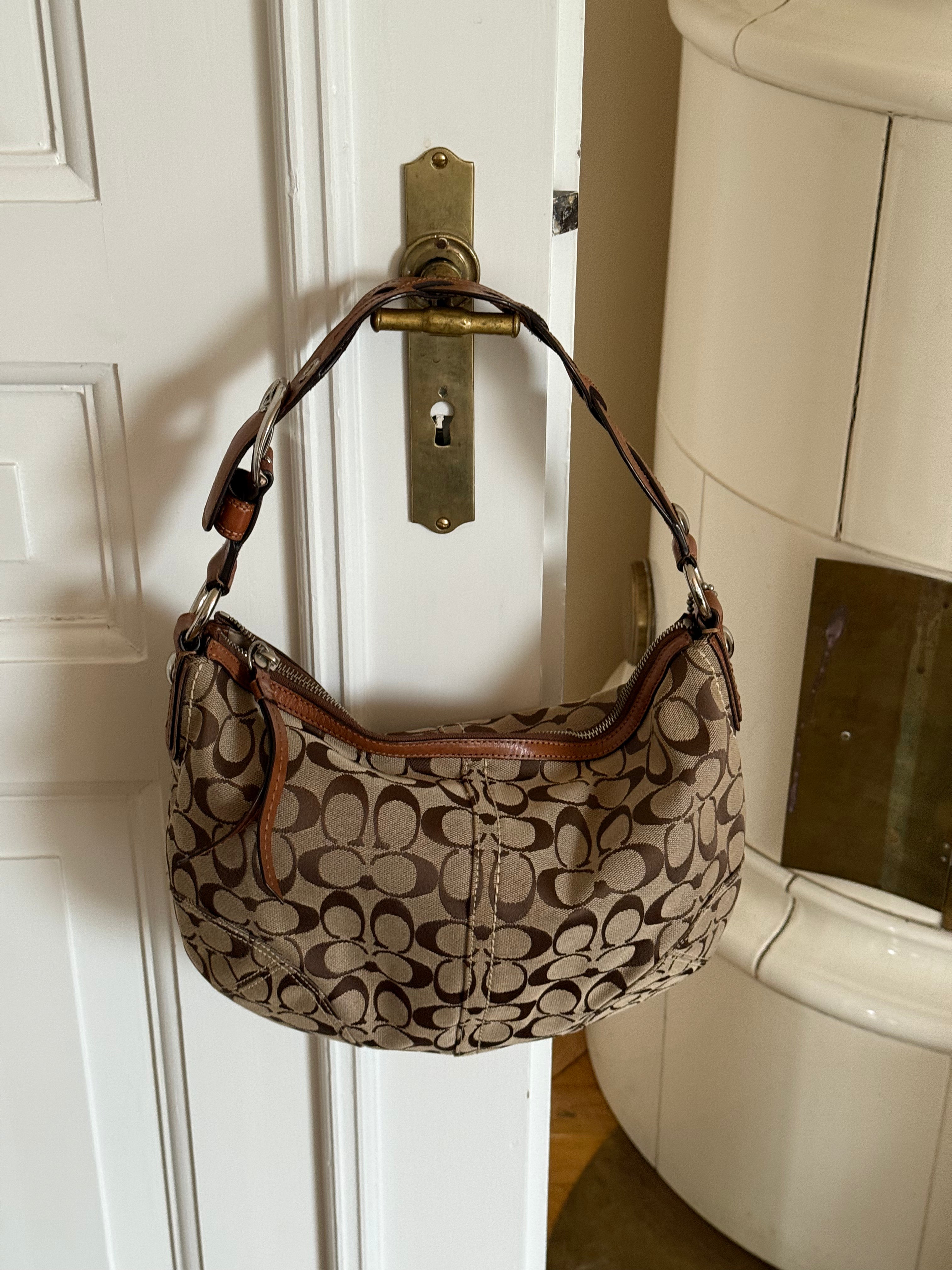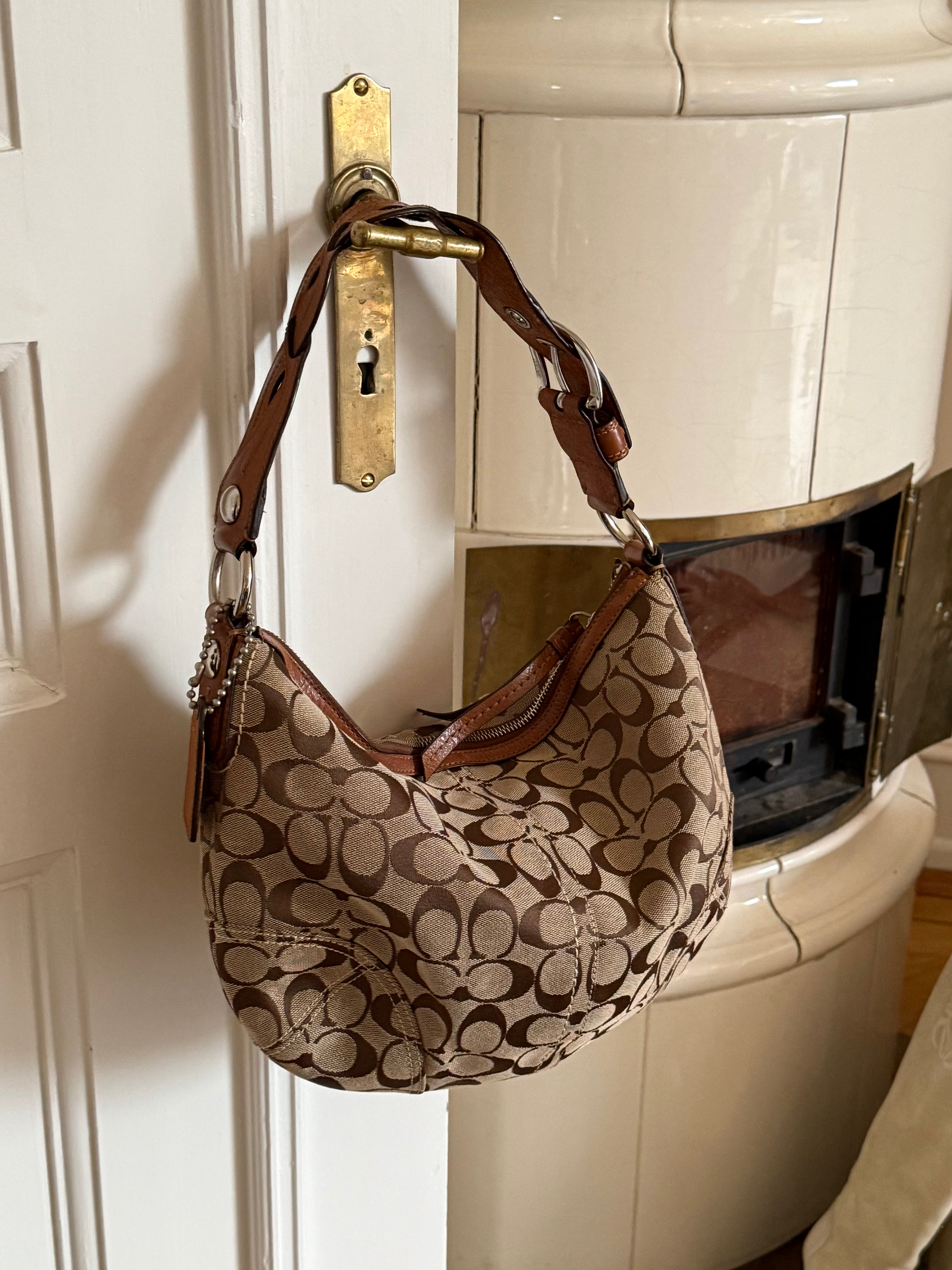 Cute Coach shoulder bag from 2008 in monogram canvas and with a braided leather handle.