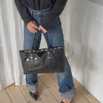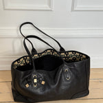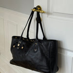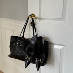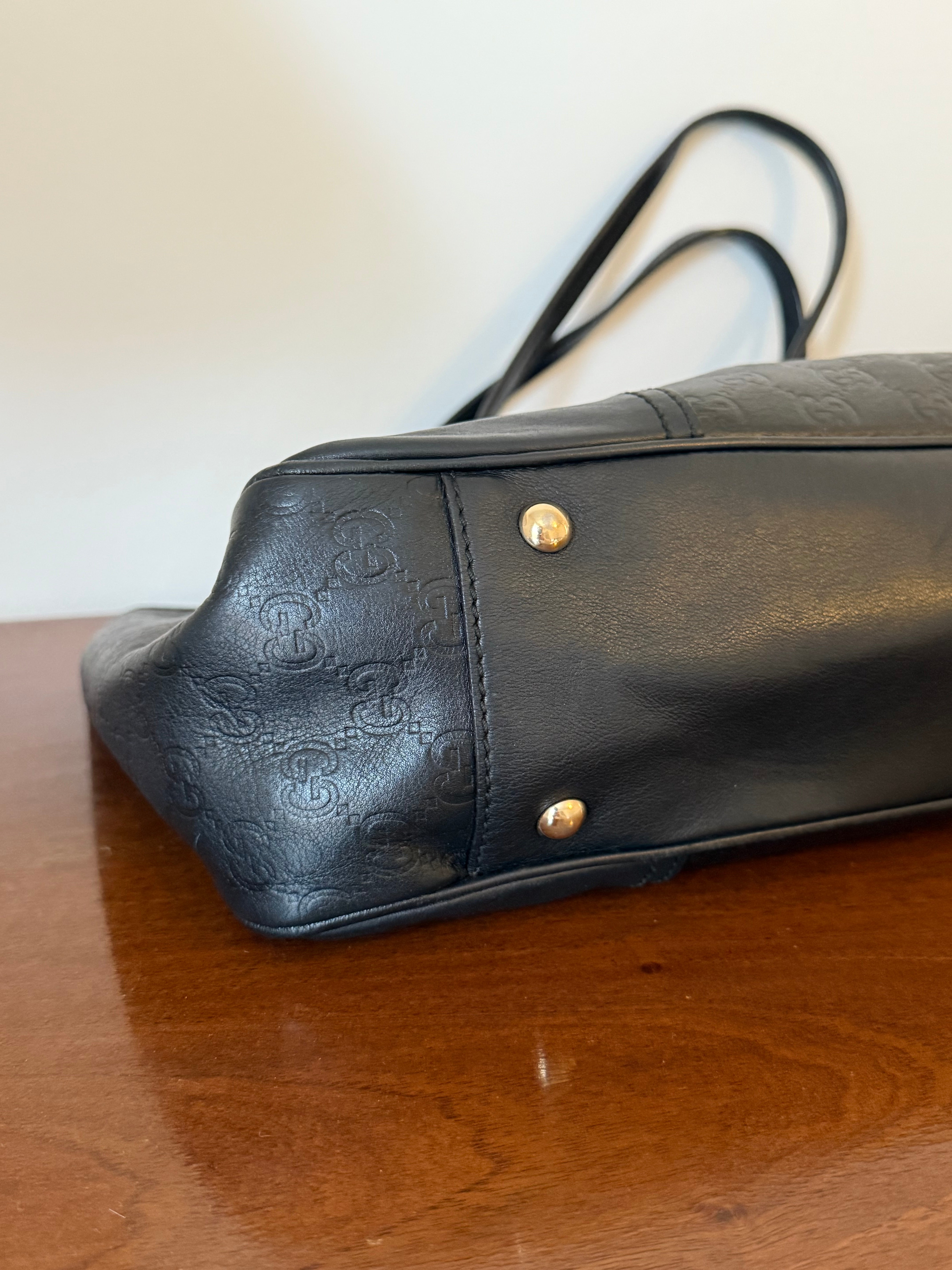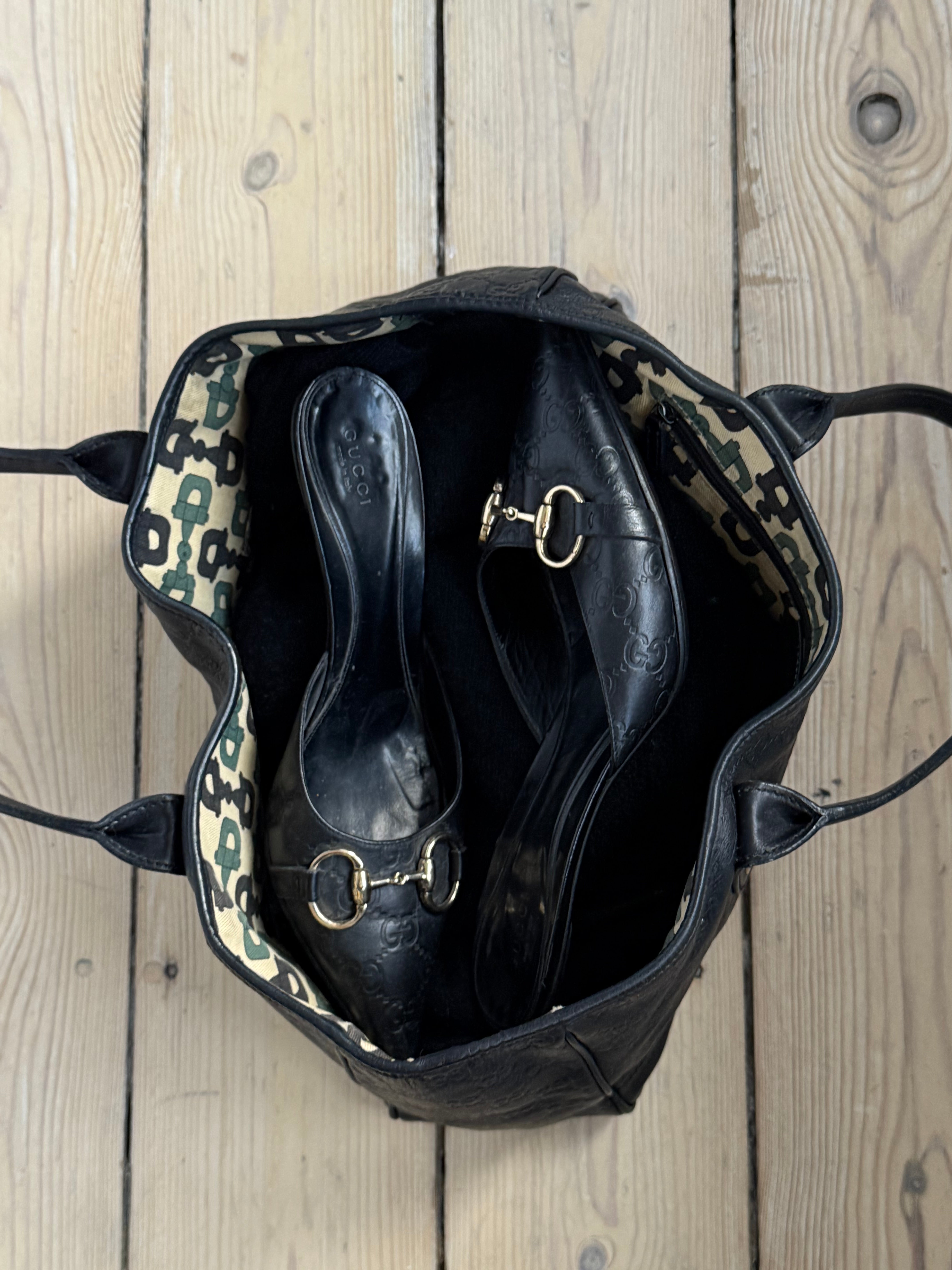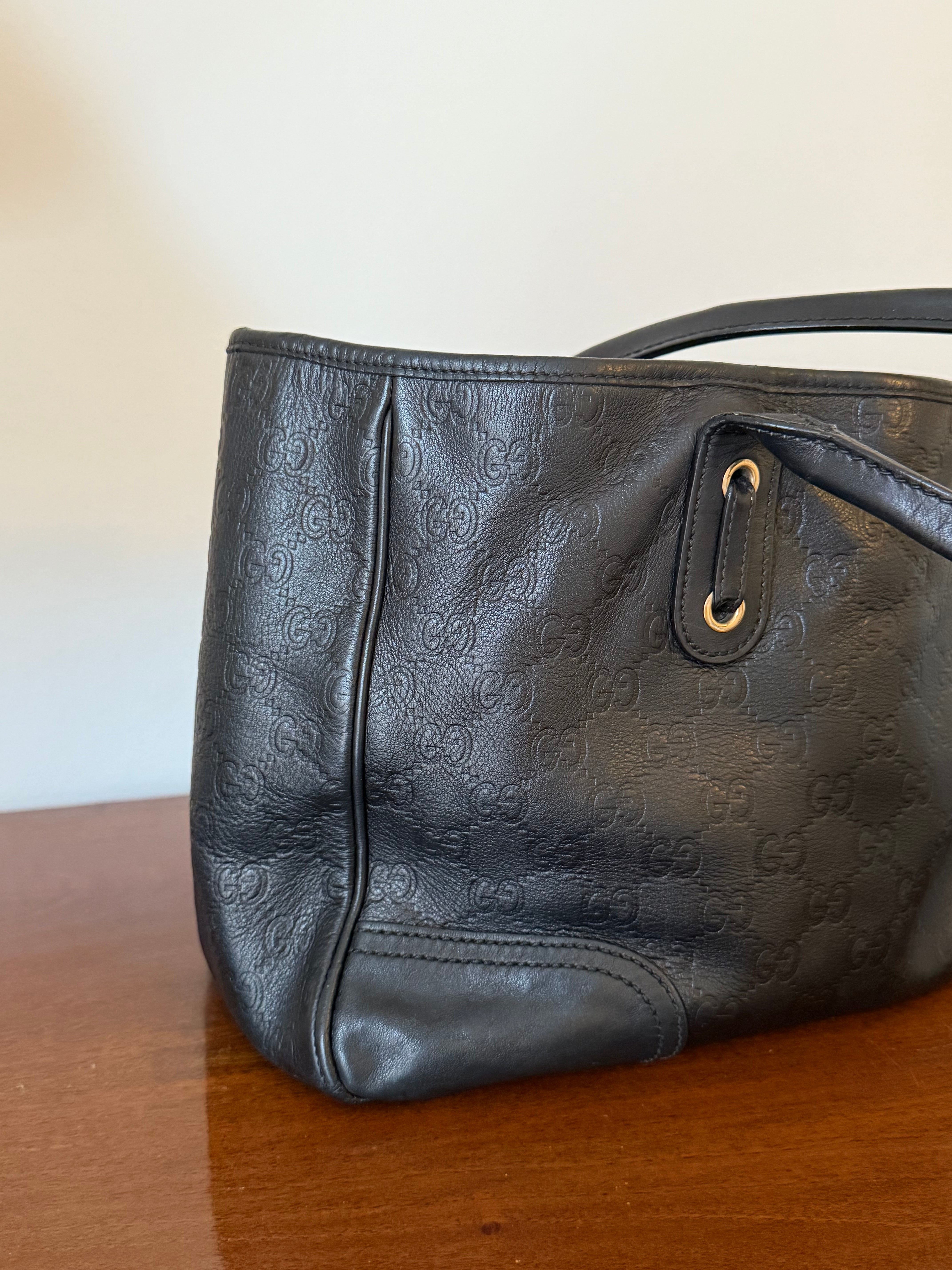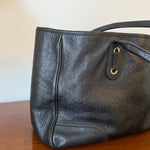 Vintage Gucci Princy tote bag in black Guccissima-embossed leather with gold-tone hardware. Features shoulder straps, signature bow detail and a spacious interior lined with Gucci’s horsebit-print fabric.