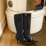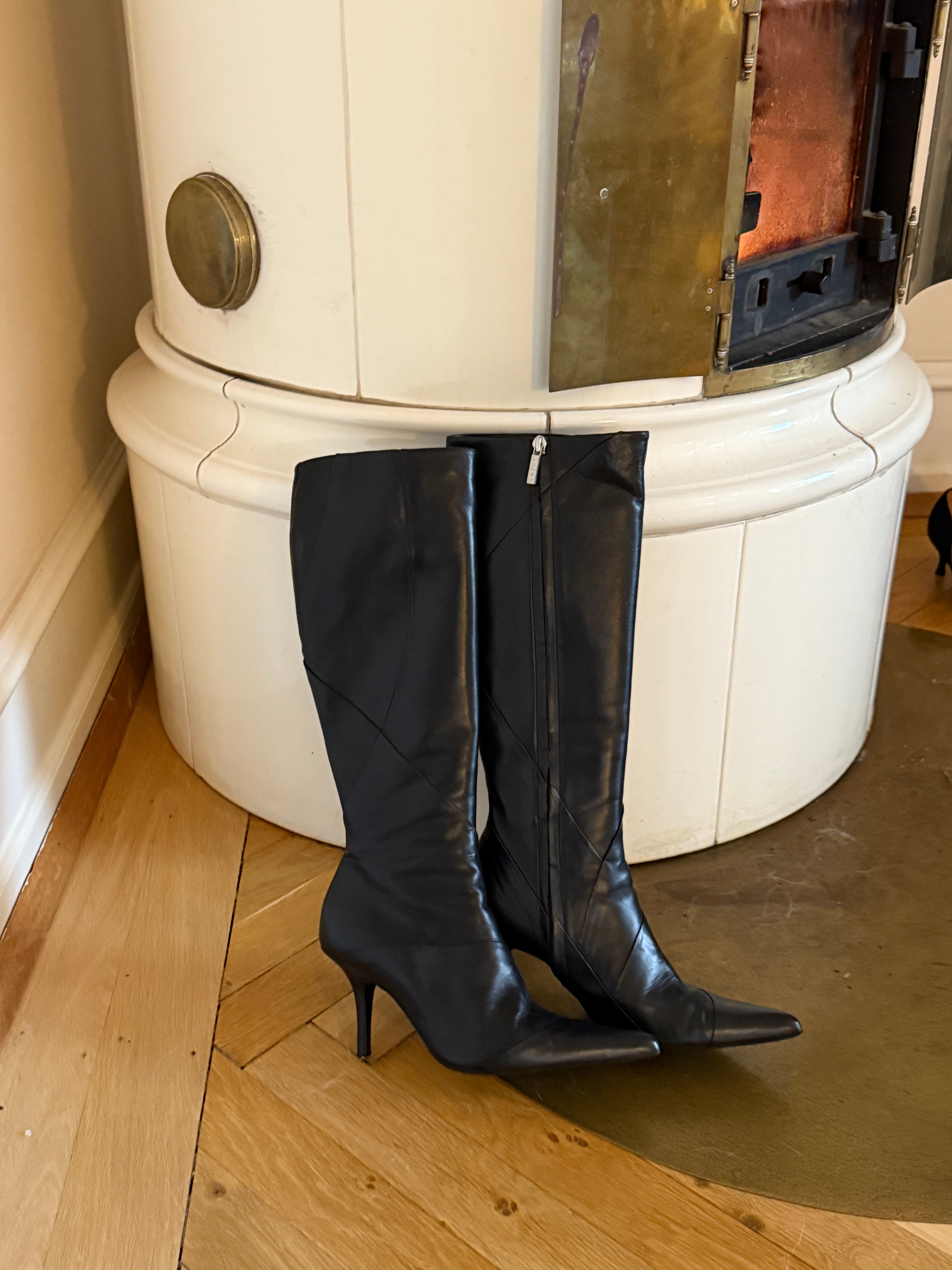 Stunning vintage Loewe boots in black leather with silver hardware.