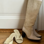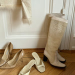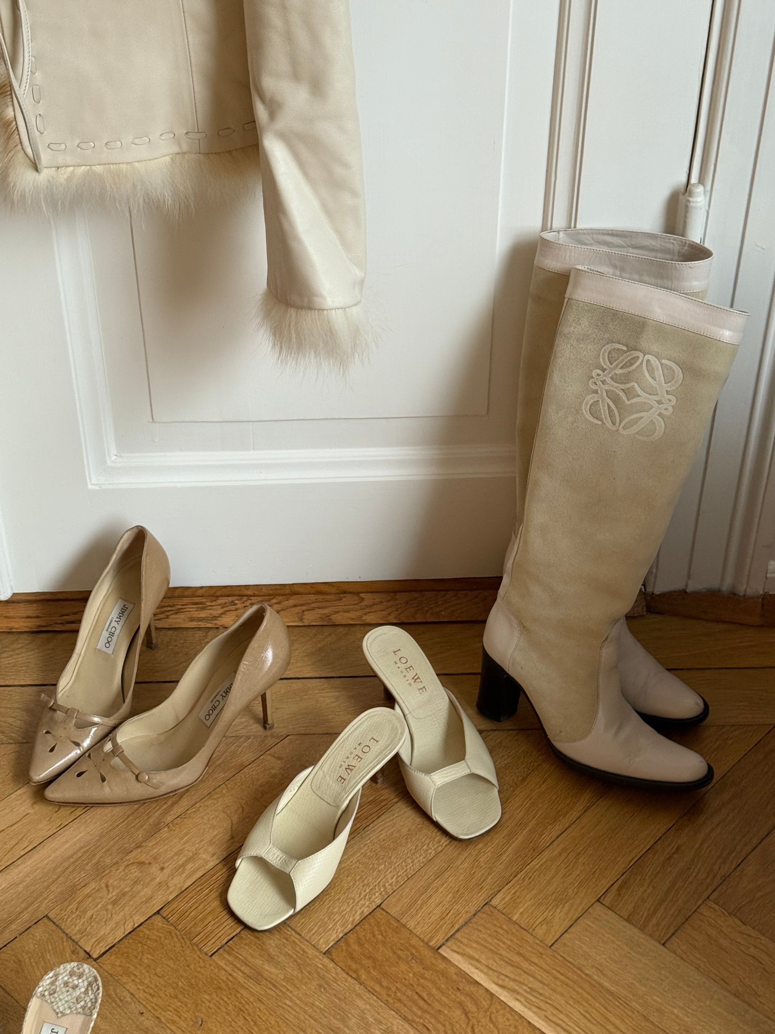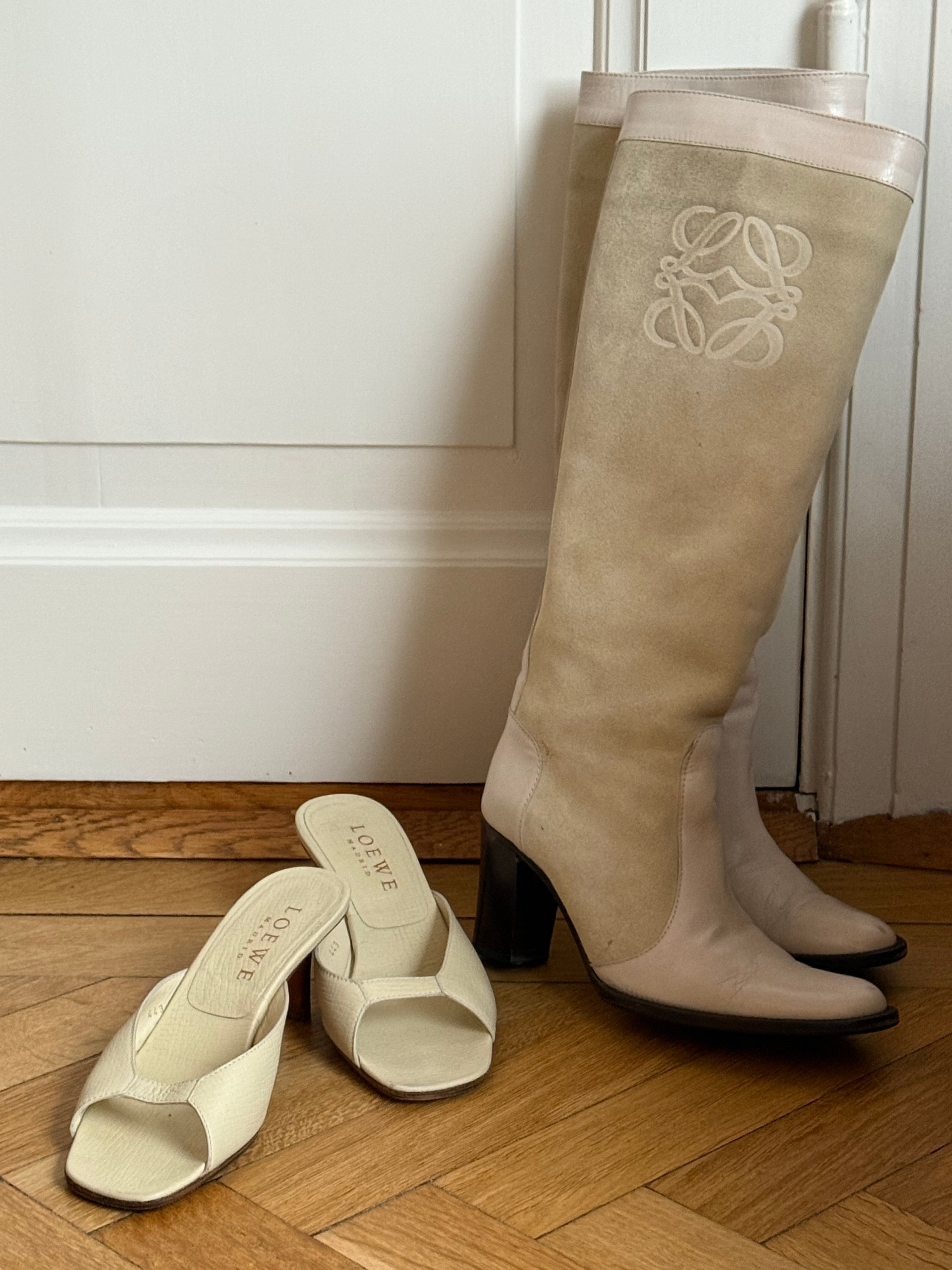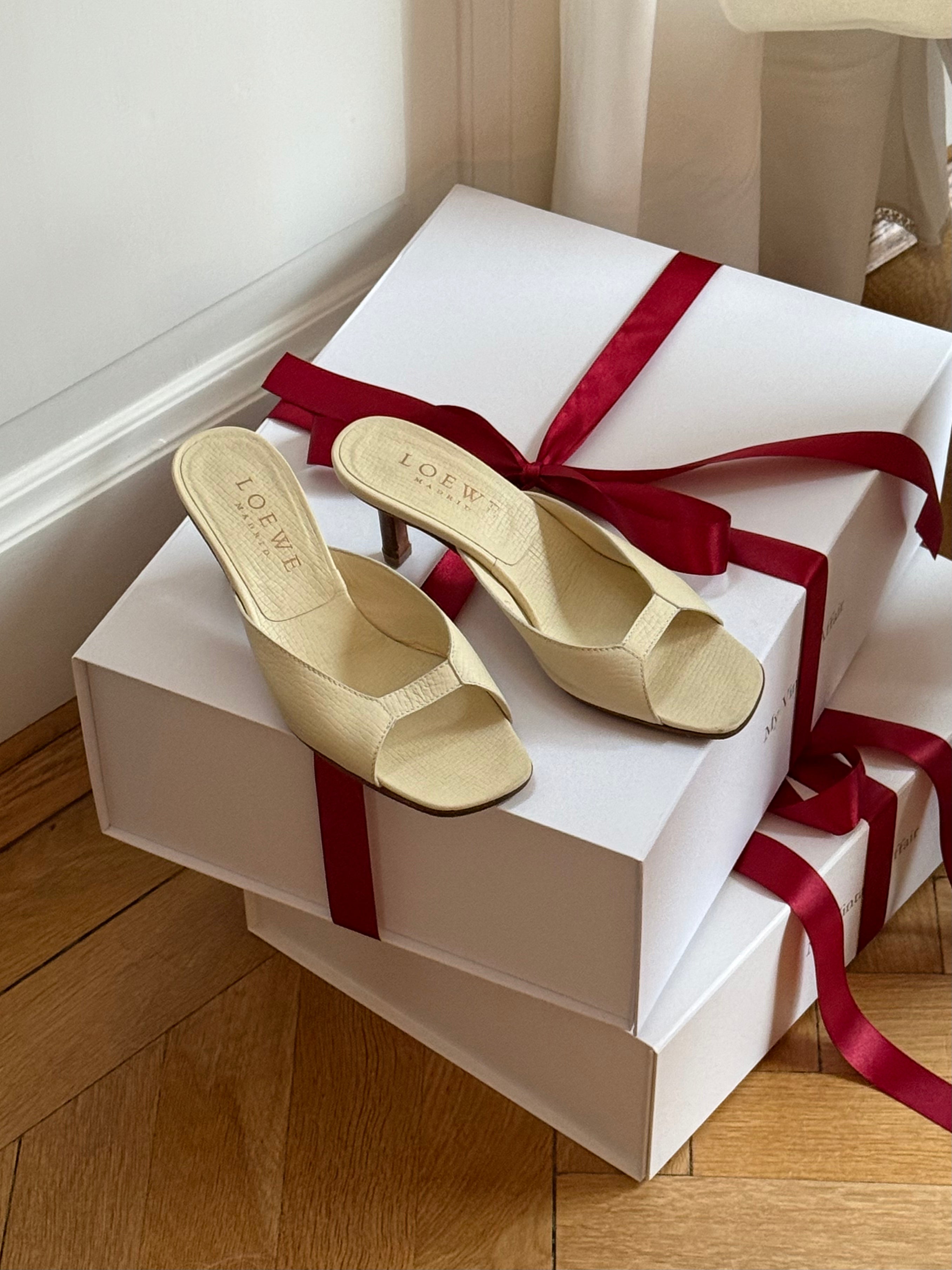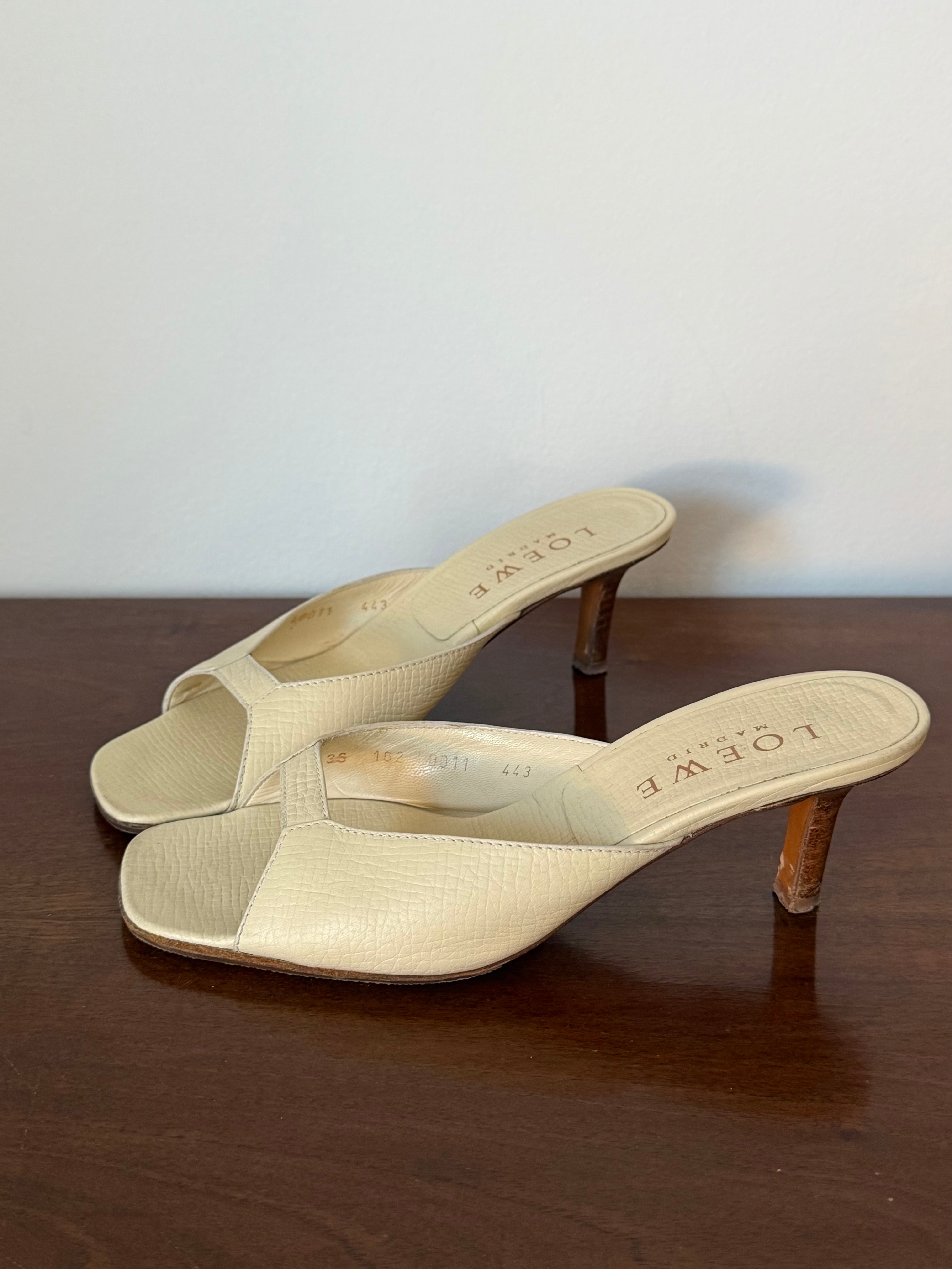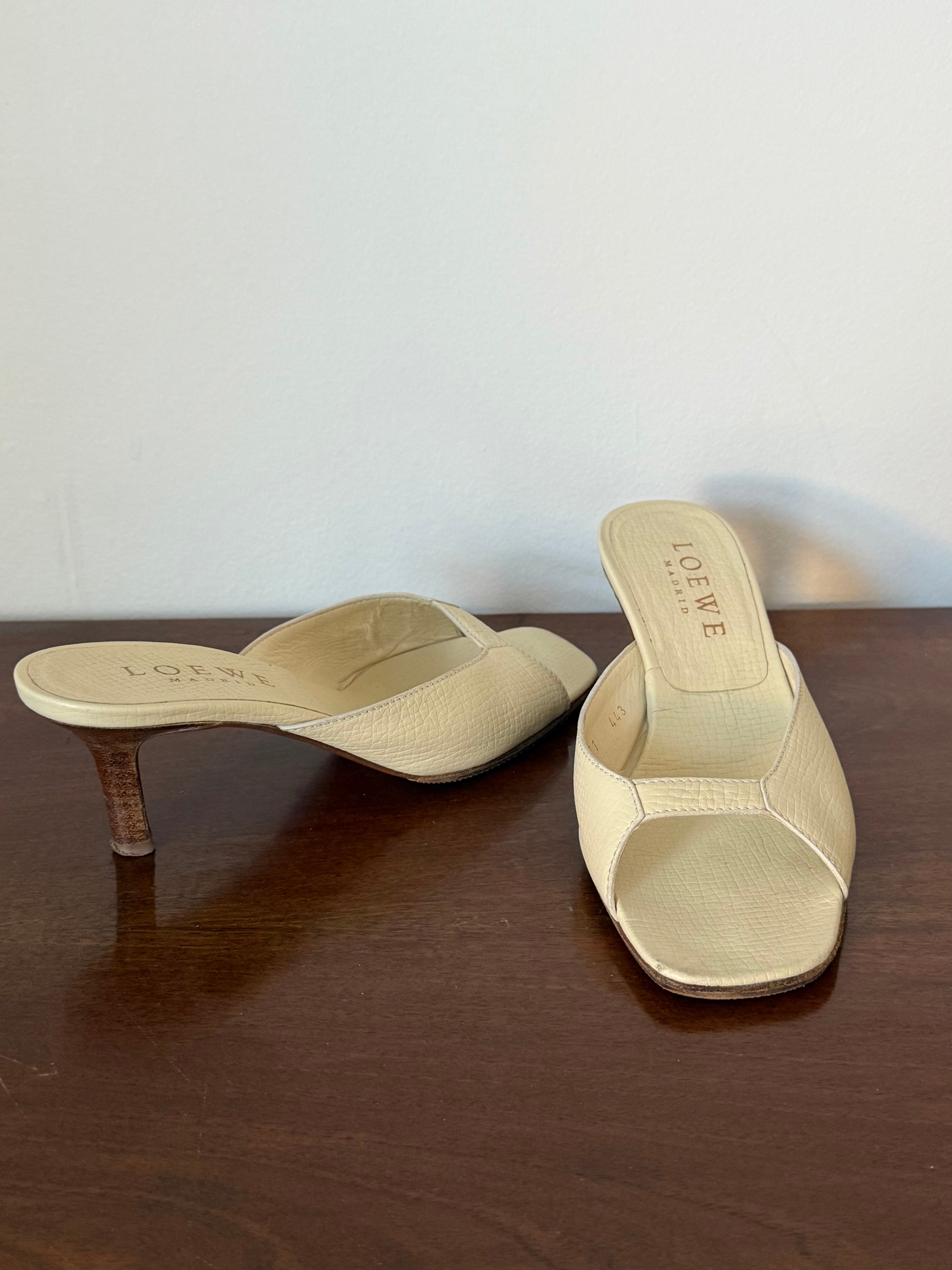 Beautiful vintage Loewe mules in ecru grained leather with an open square toe.