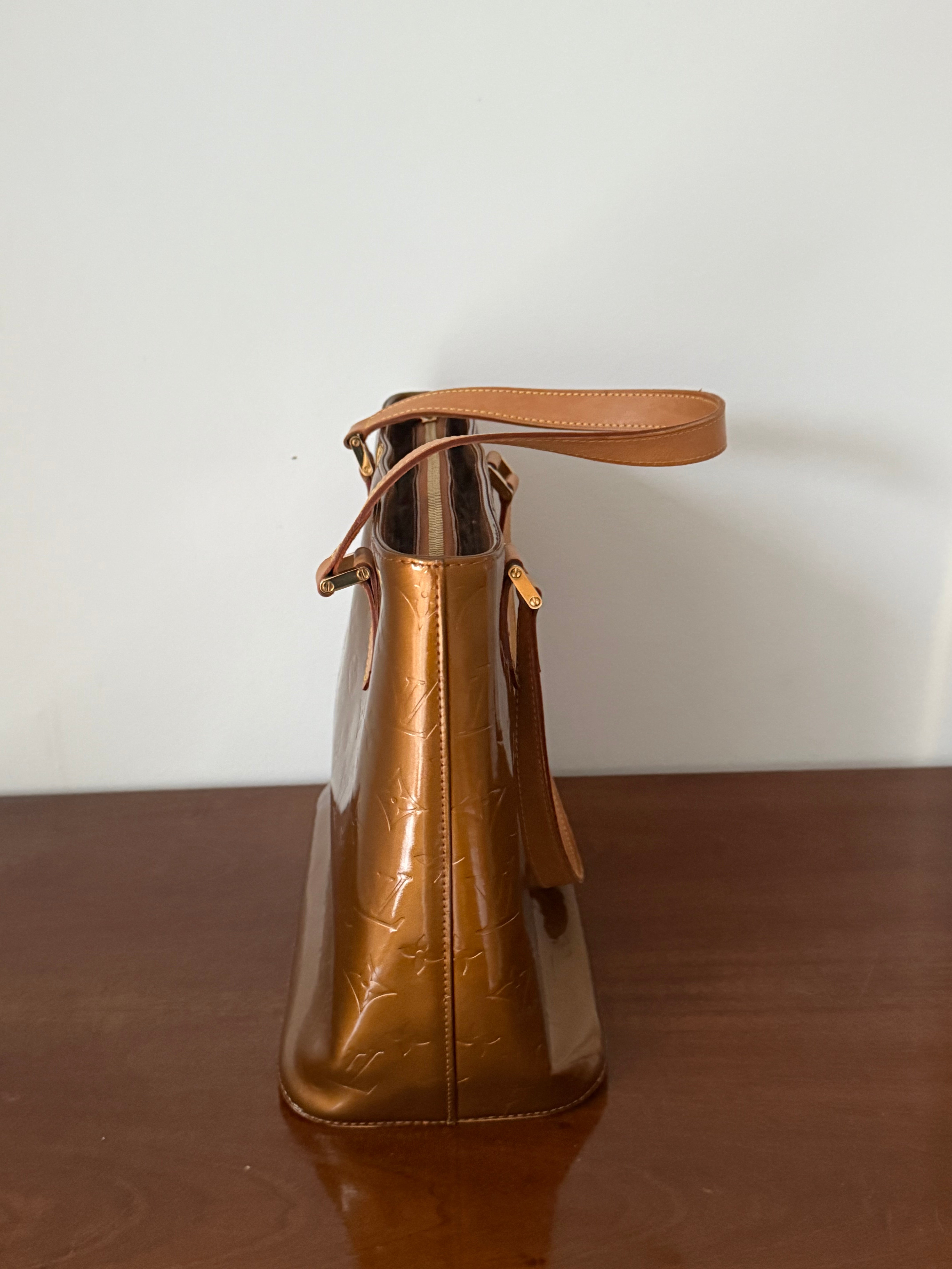 Vintage Louis Vuitton Monogram Vernis Houston Leather Handbag in very good condition. The bag is in a beautiful brown color from the iconic Vernis line introduced in 1998.