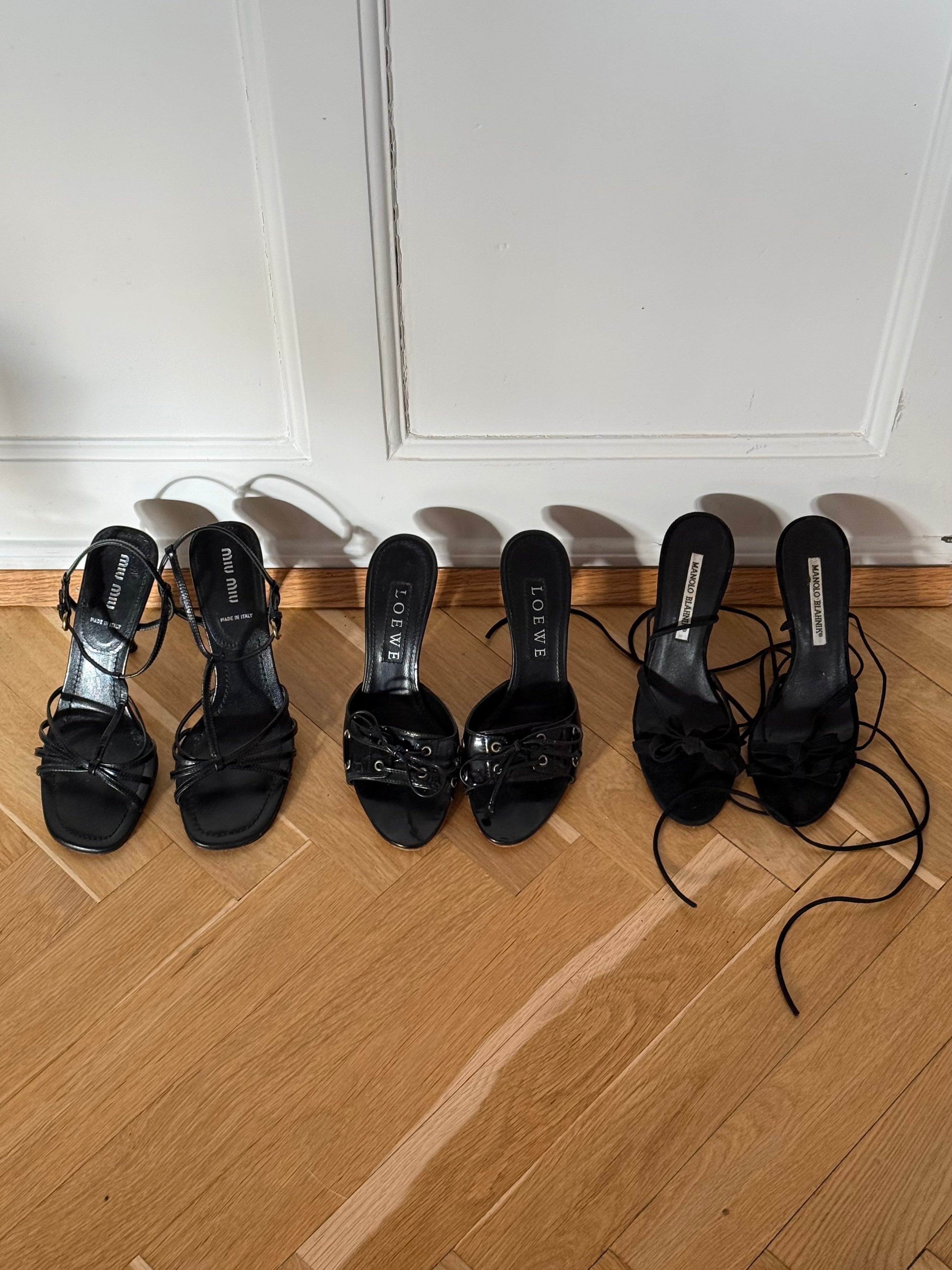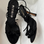Vintage Manolo Blahnik lace-up sandals in black suede with wrap-around strap.