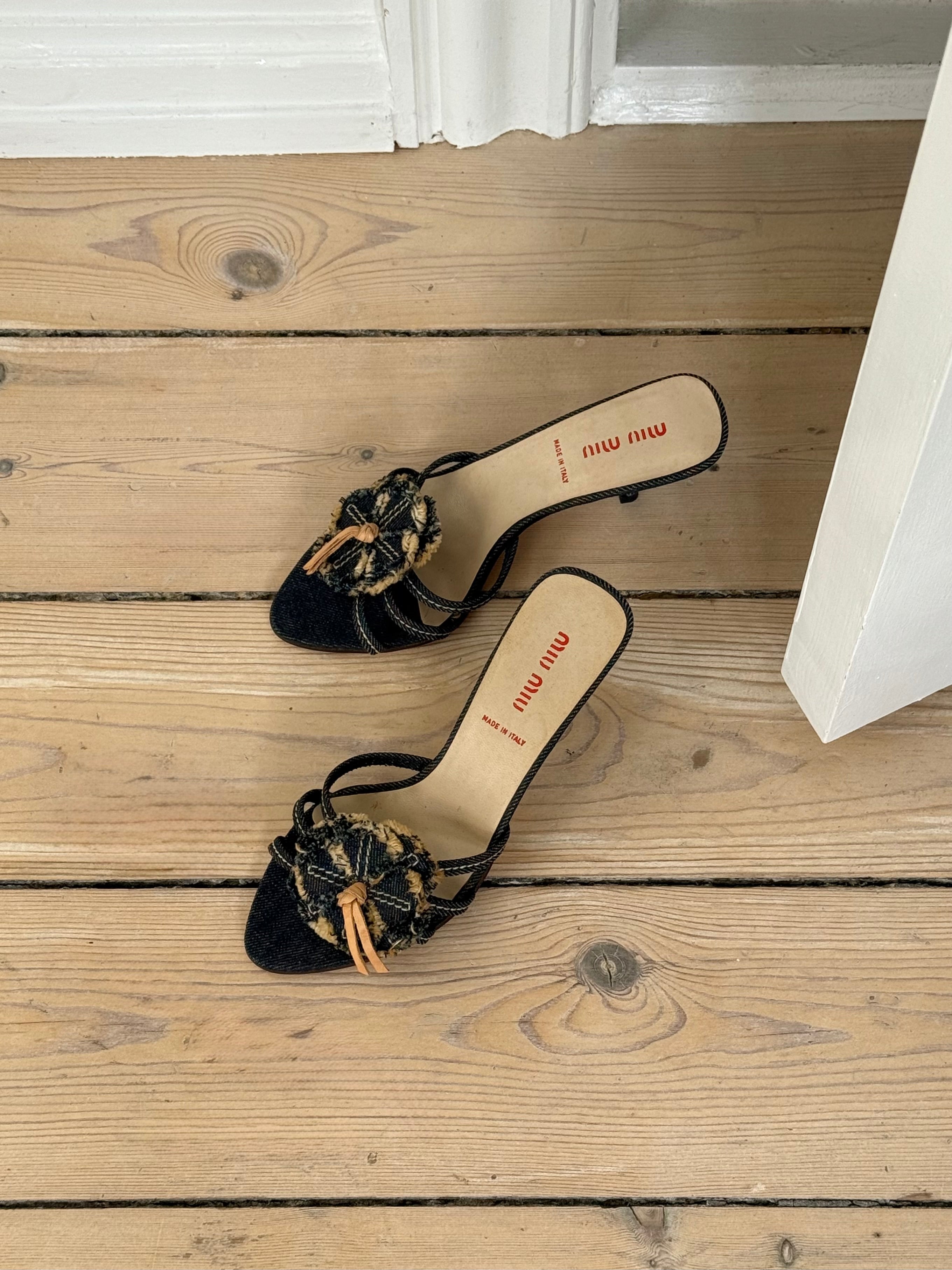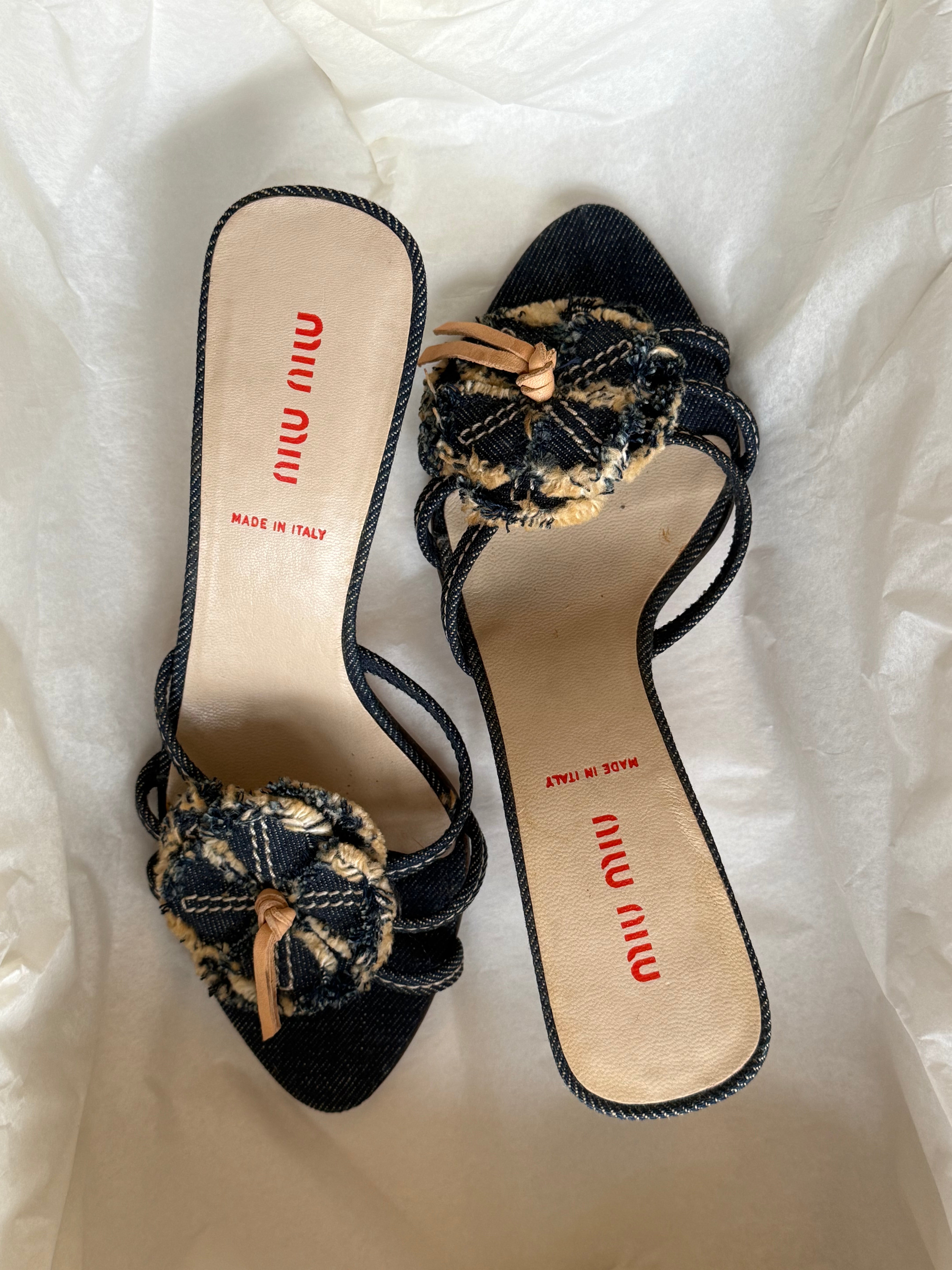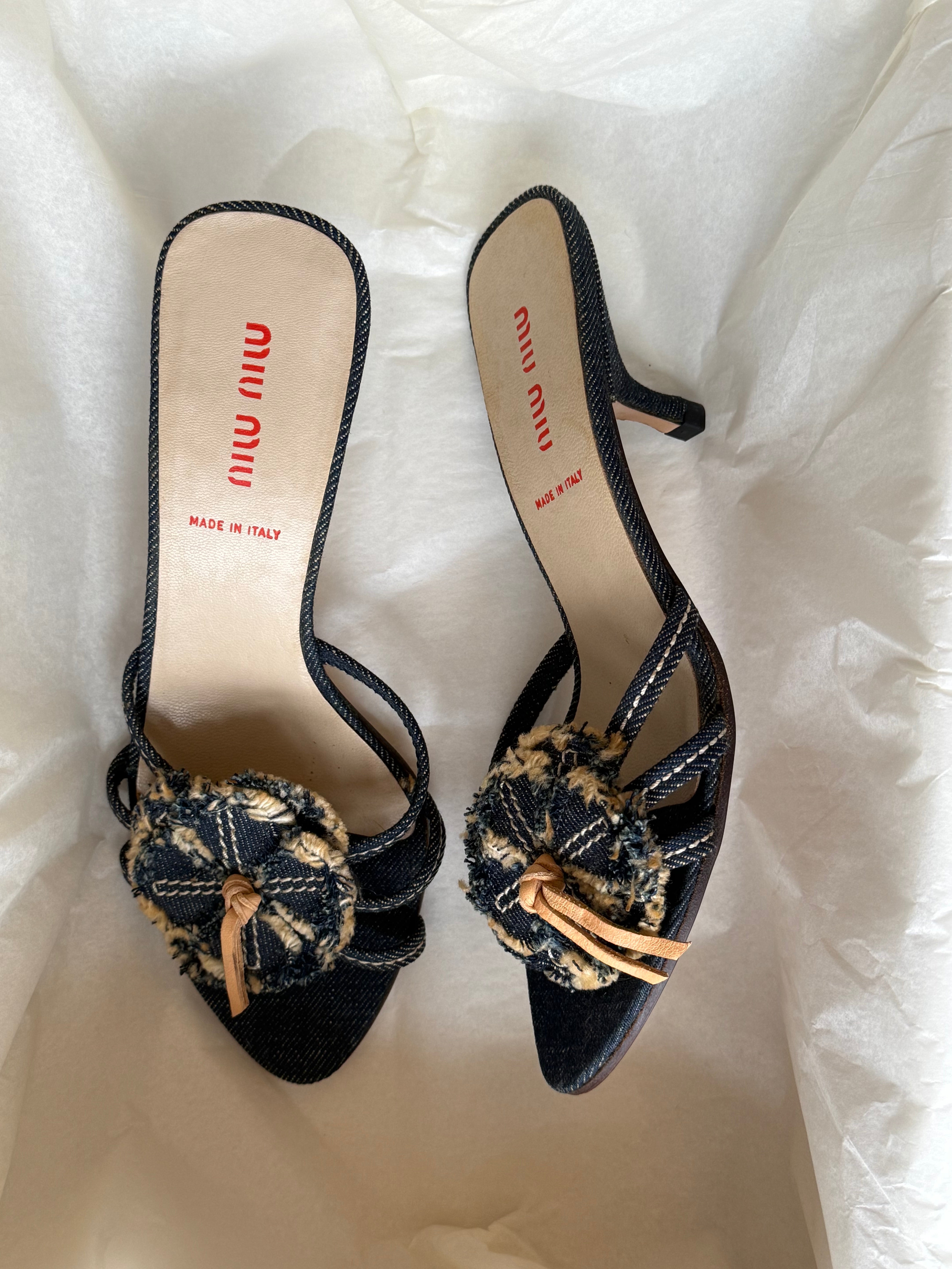 Rare vintage 90’s Miu Miu denim flower kitten heels in almost perfect condition.