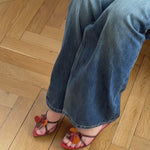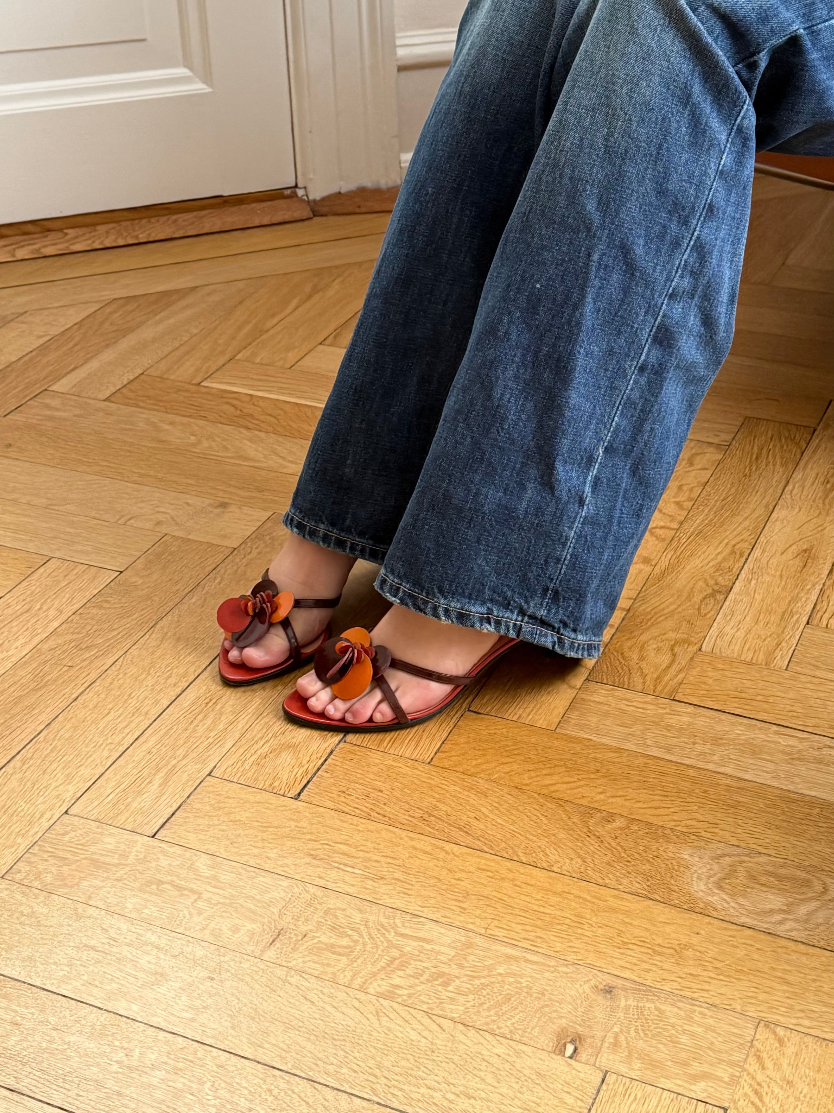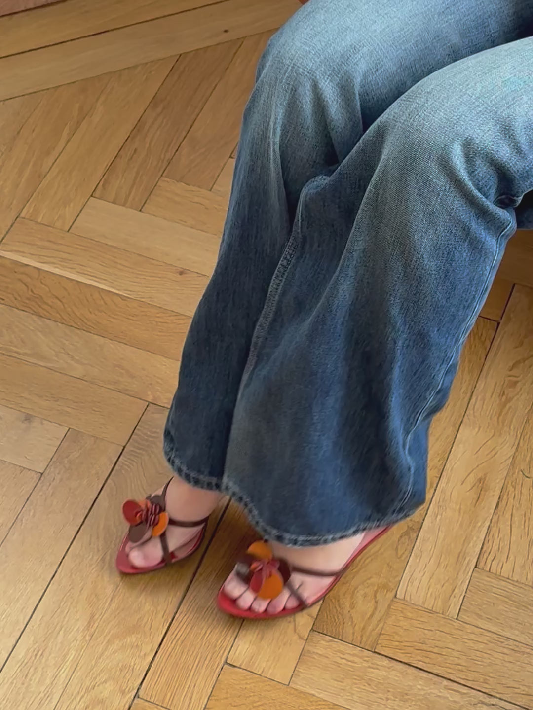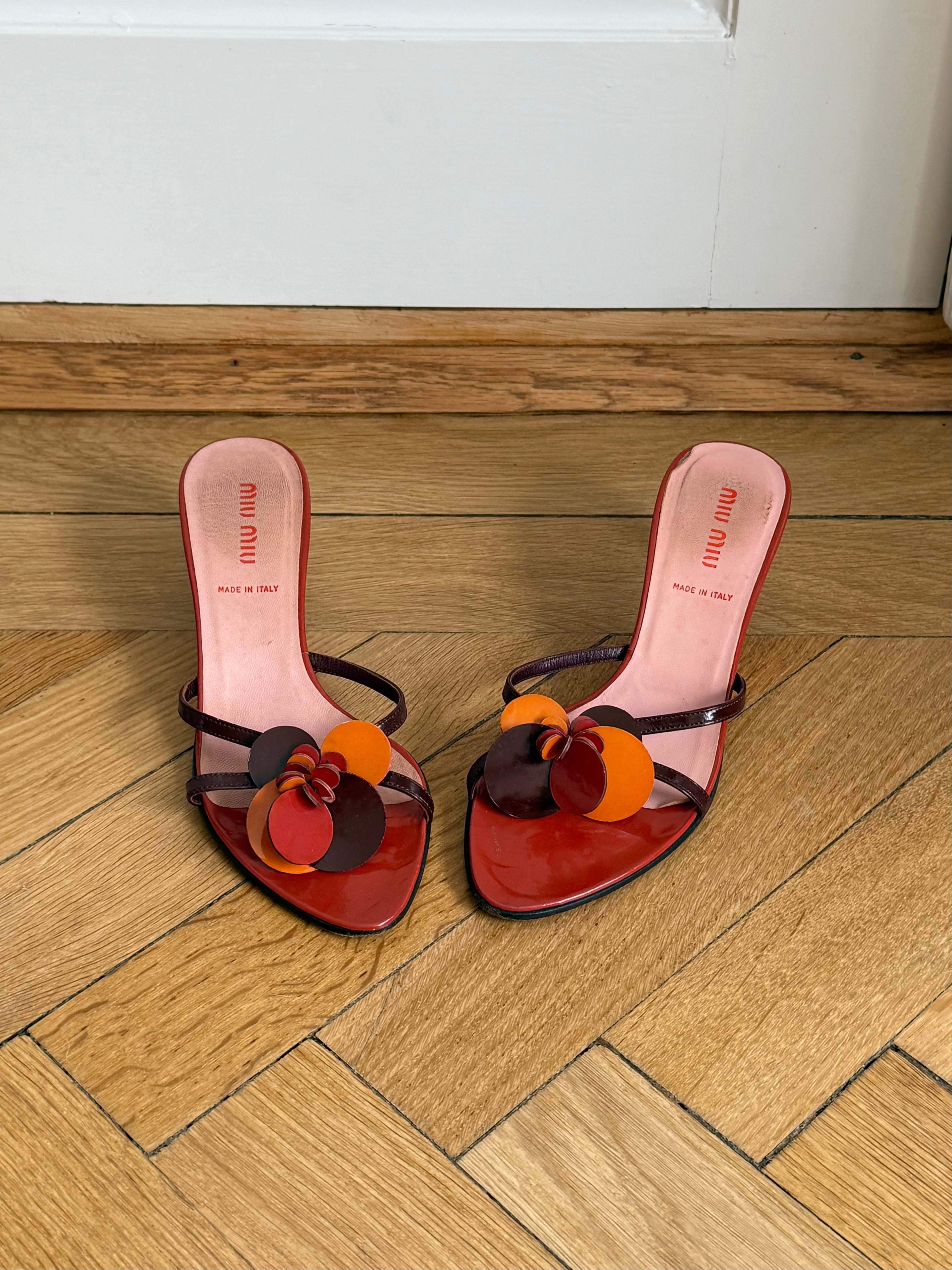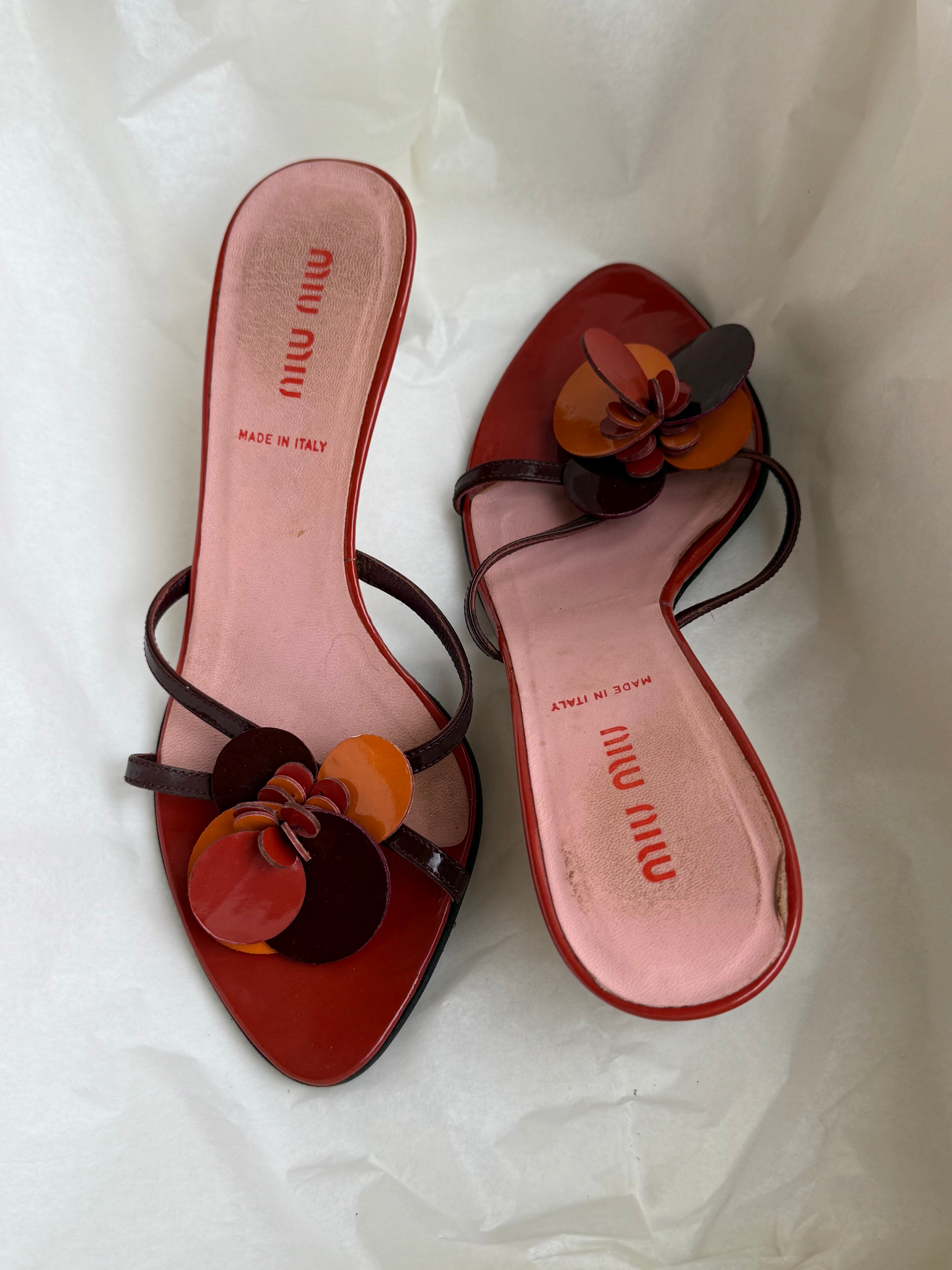 Rare vintage Miu Miu kitten heels featuring playful appliqué details and a pointed toe silhouette.