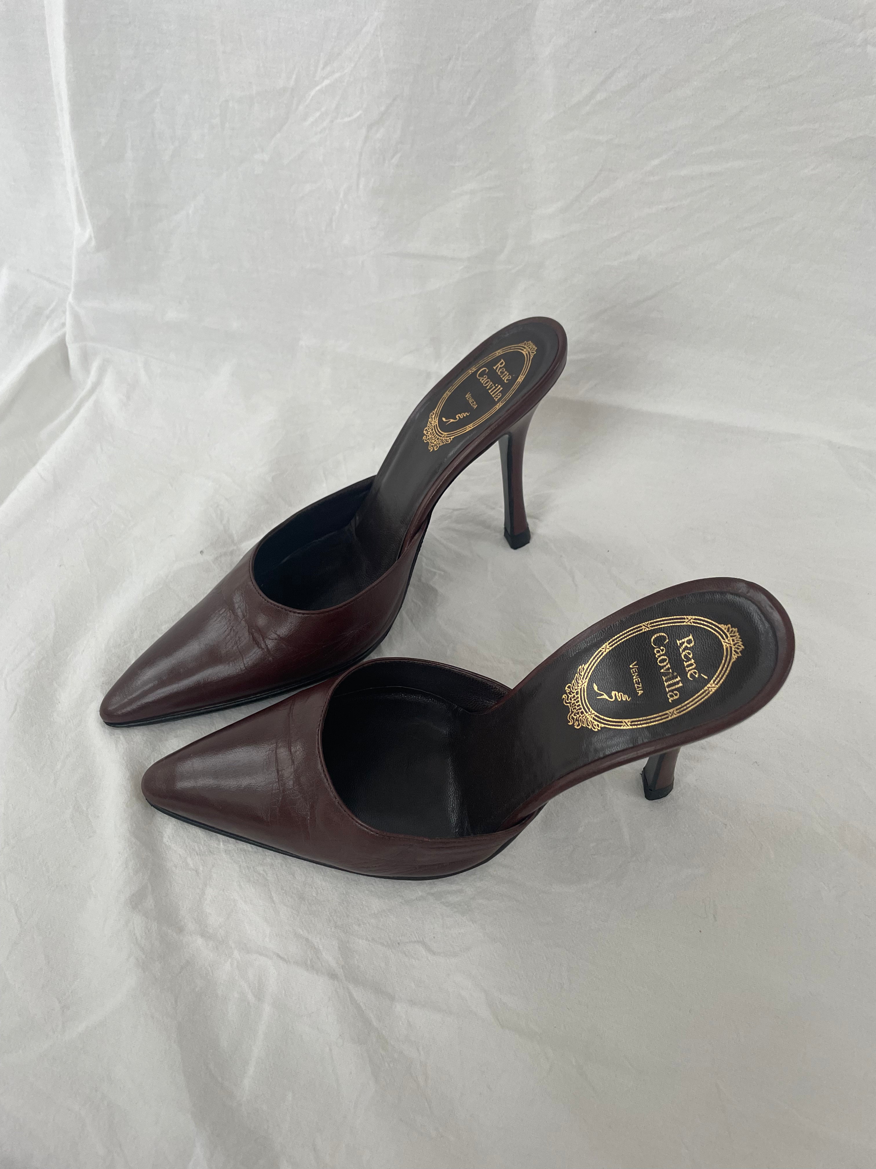 René Caovilla leather mules in good condition with minor signs of wear. They have been resoled for added longevity.