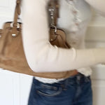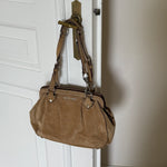 8/10 - The bag is in very good vintage condition, showing minor signs of wear on the hardware and suede material.