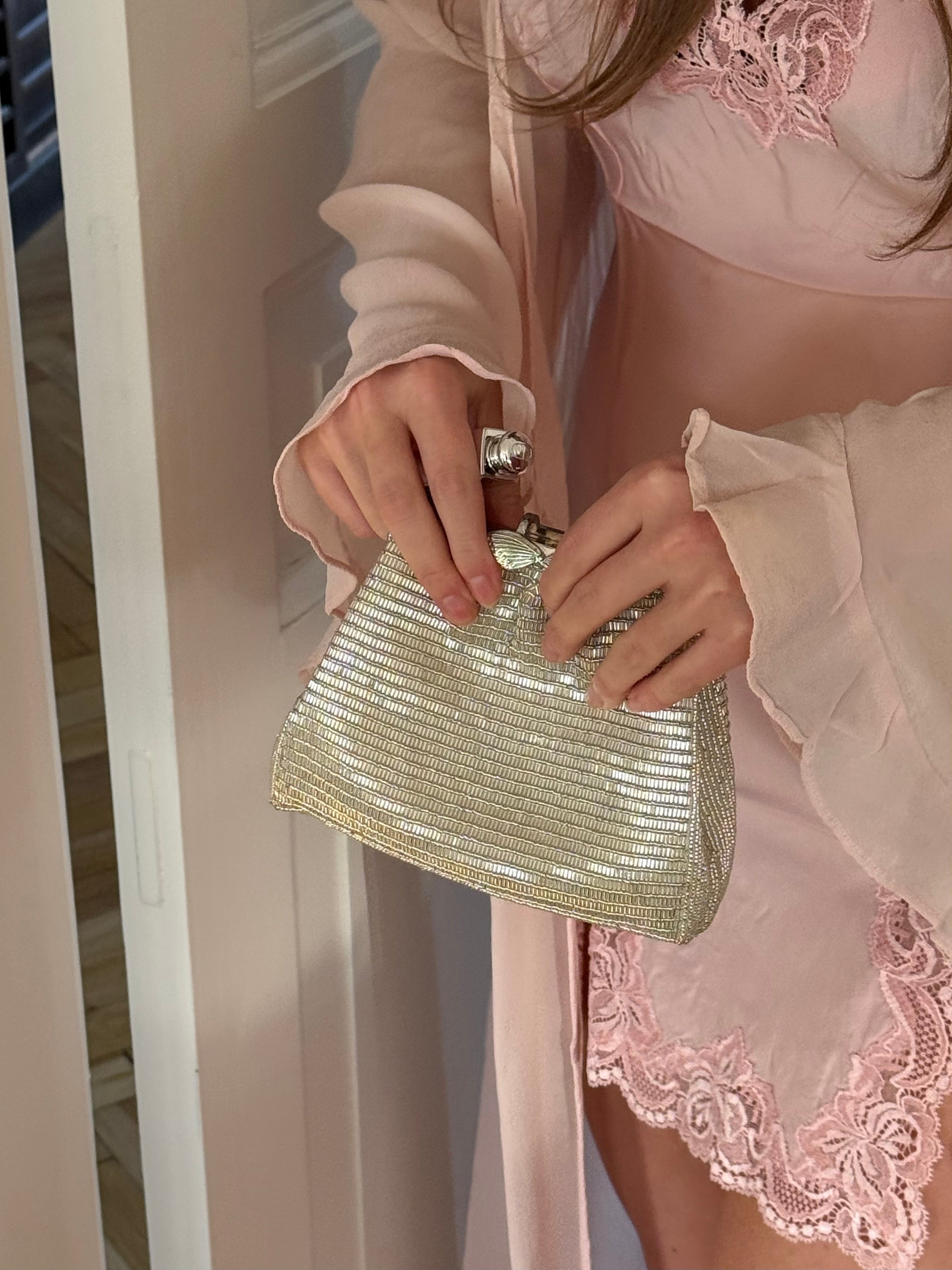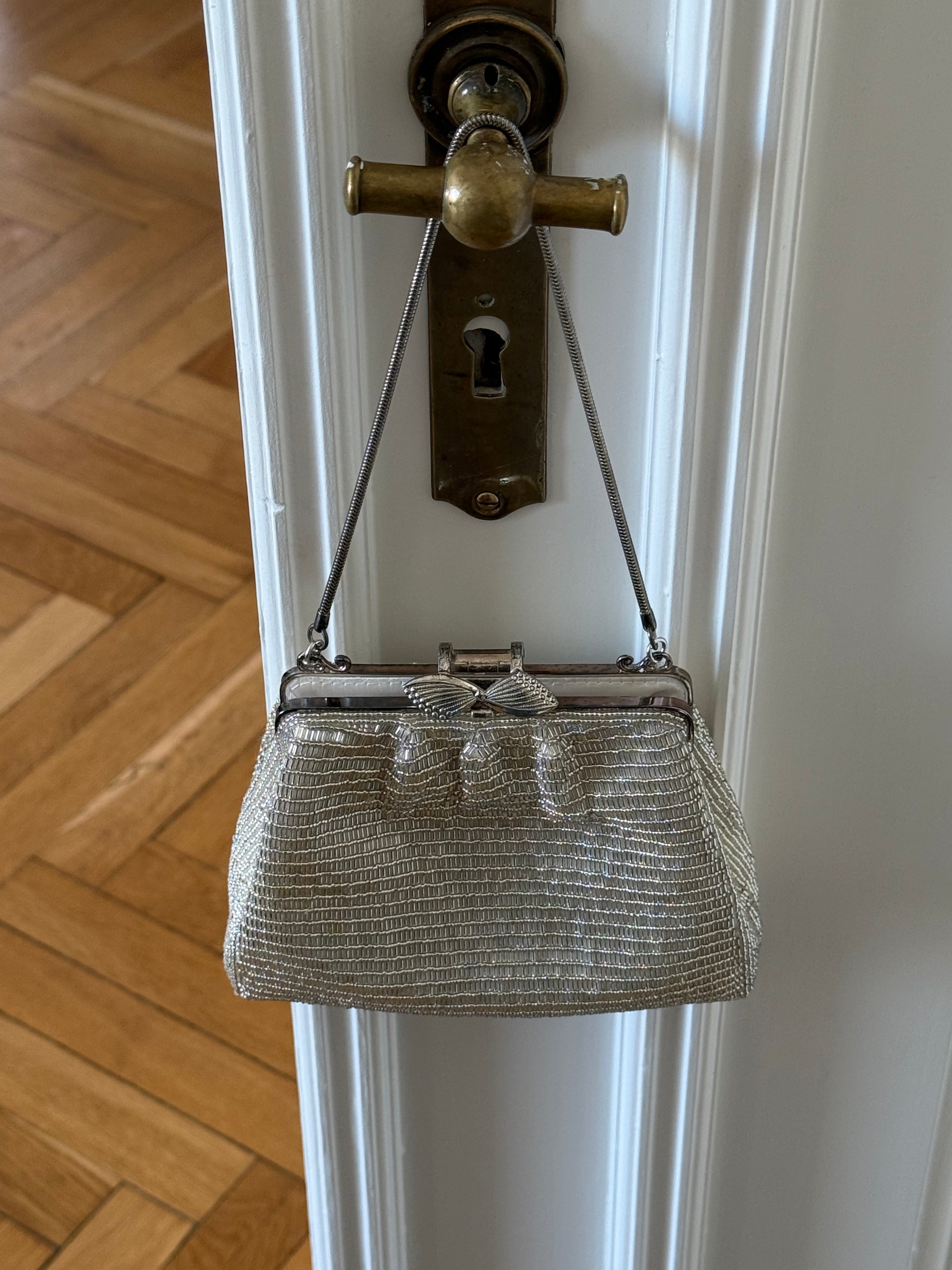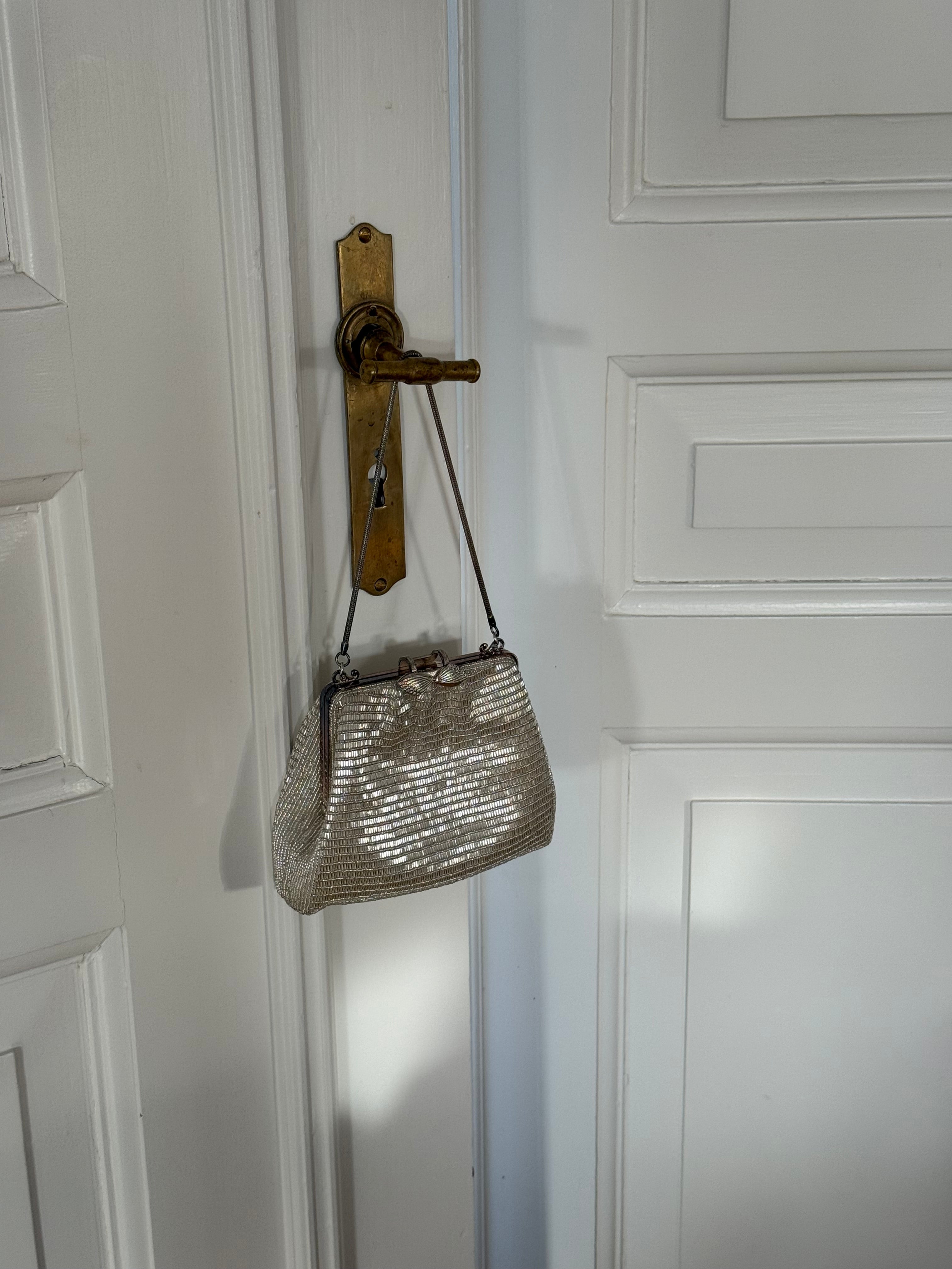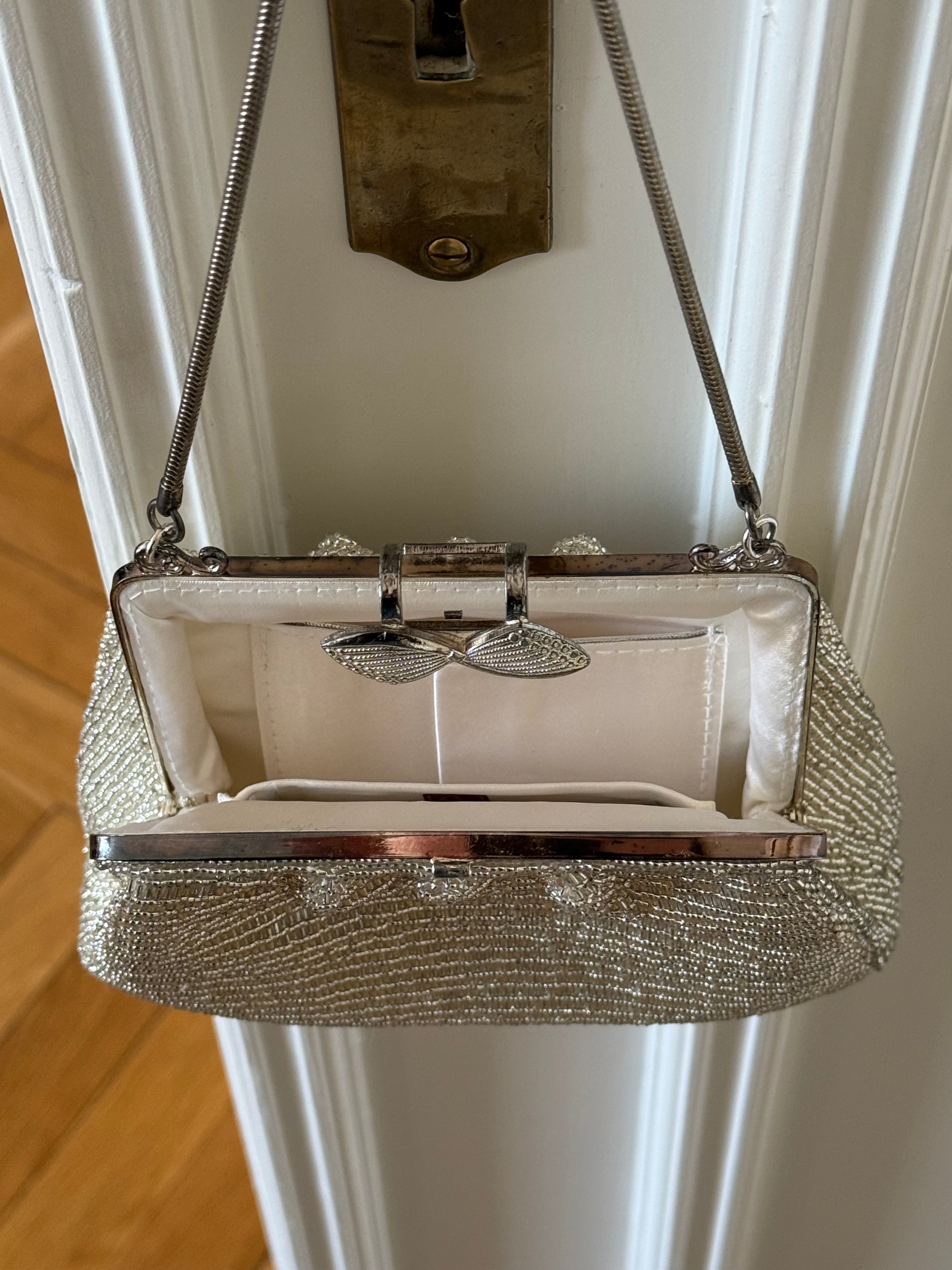Beautiful vintage evening bag with silver beading.