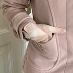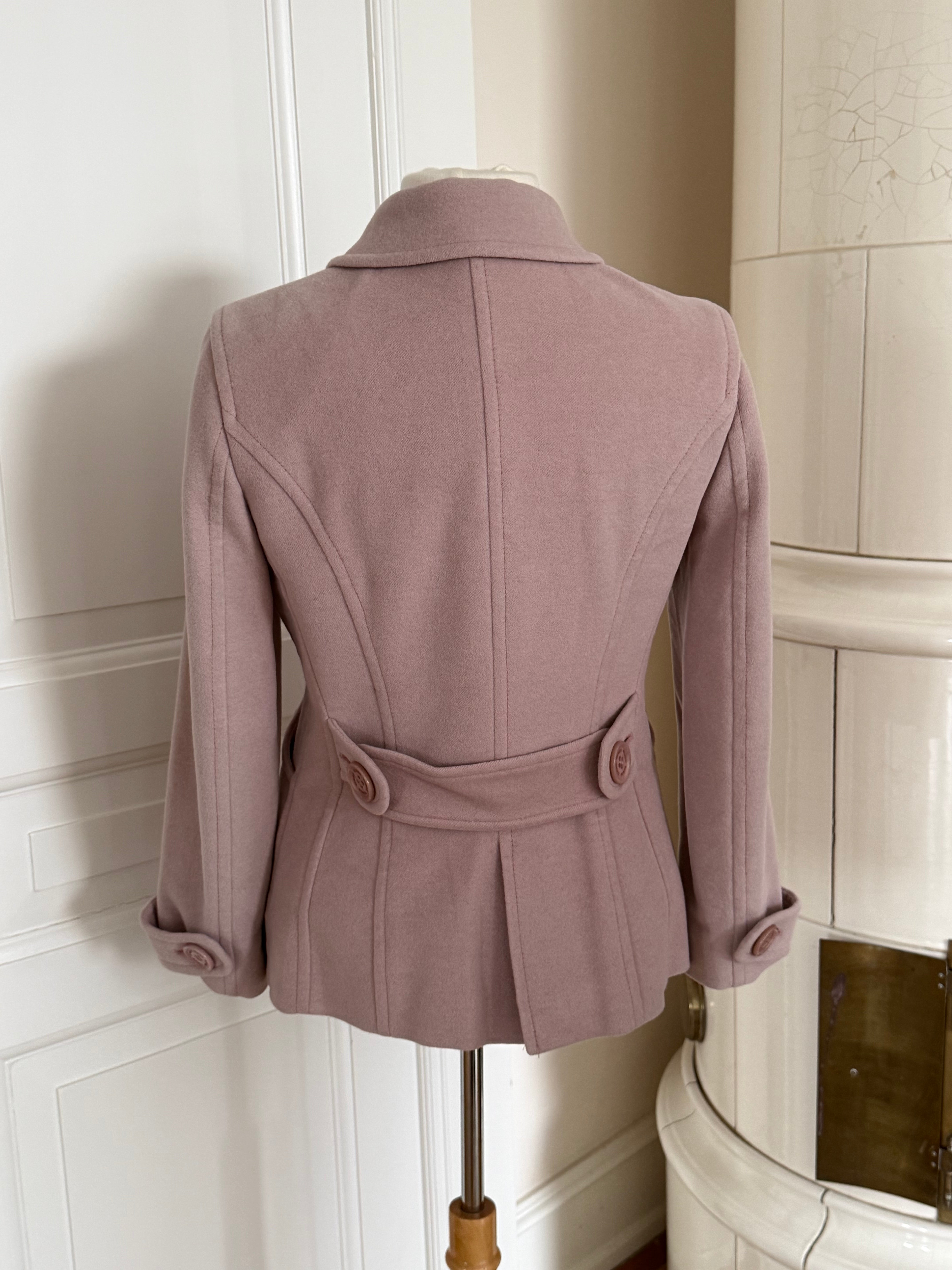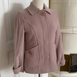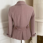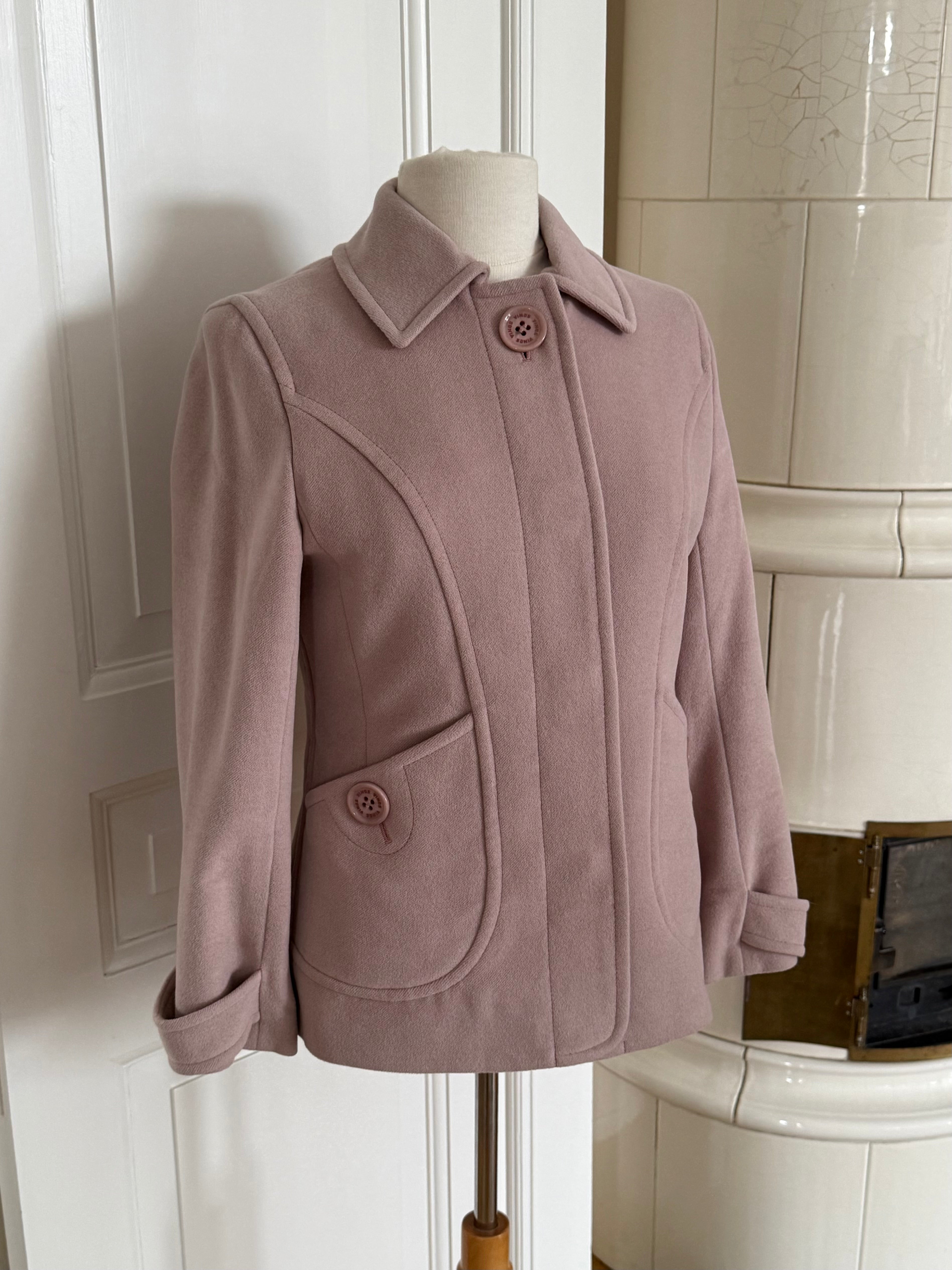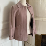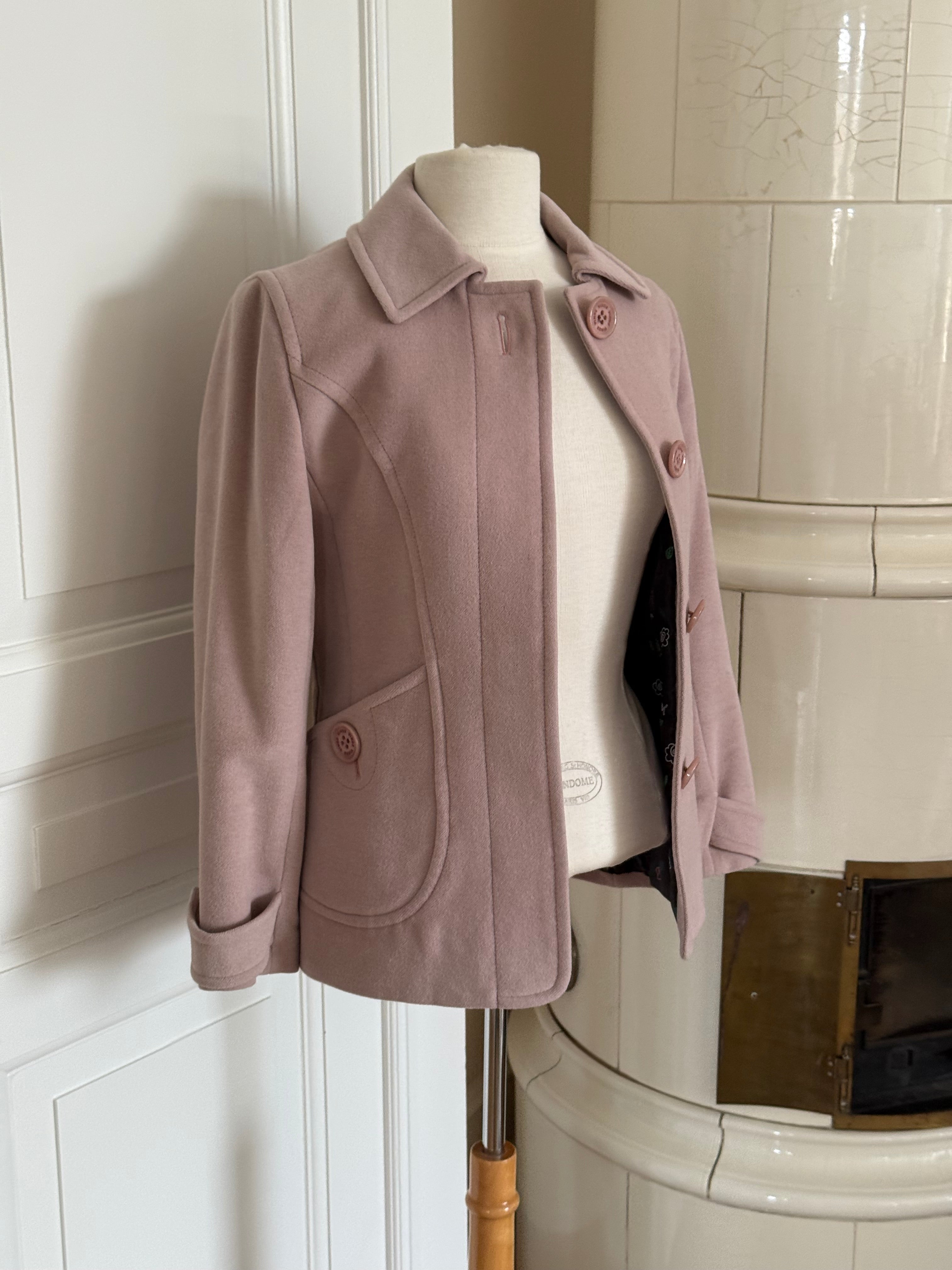 Vintage Sonia Rykiel jacket in soft blush pink wool with a clean, structured exterior. Designed with a fitted silhouette, classic collar and signature Sonia Rykiel buttons, with a floral lining inside.